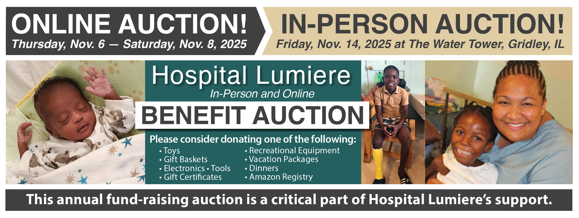 - All items are welcome! With both an online auction and in-person event, Auction organizers will determine which auction your donation will be best suited for.