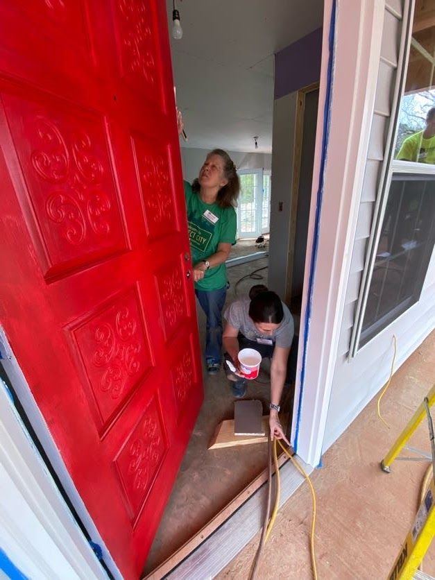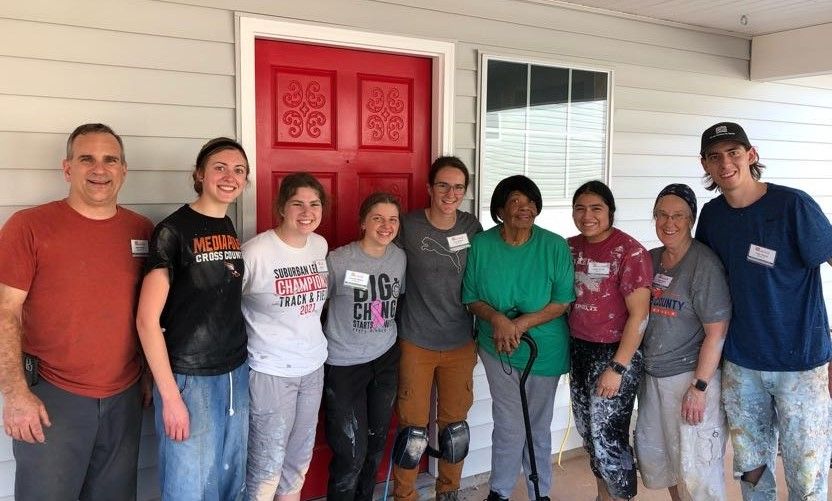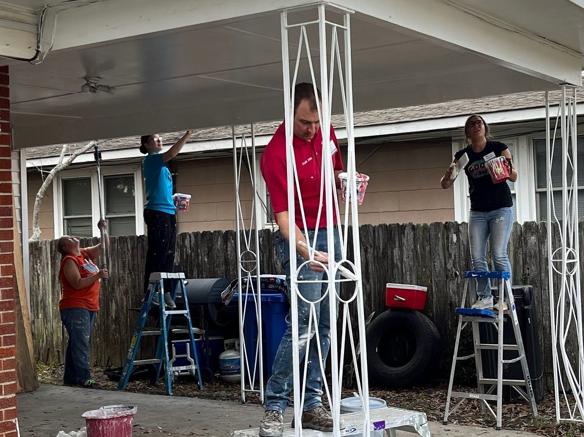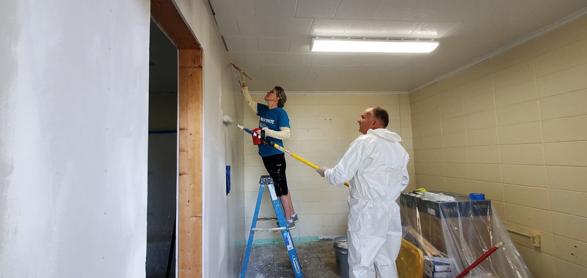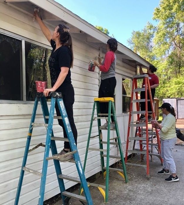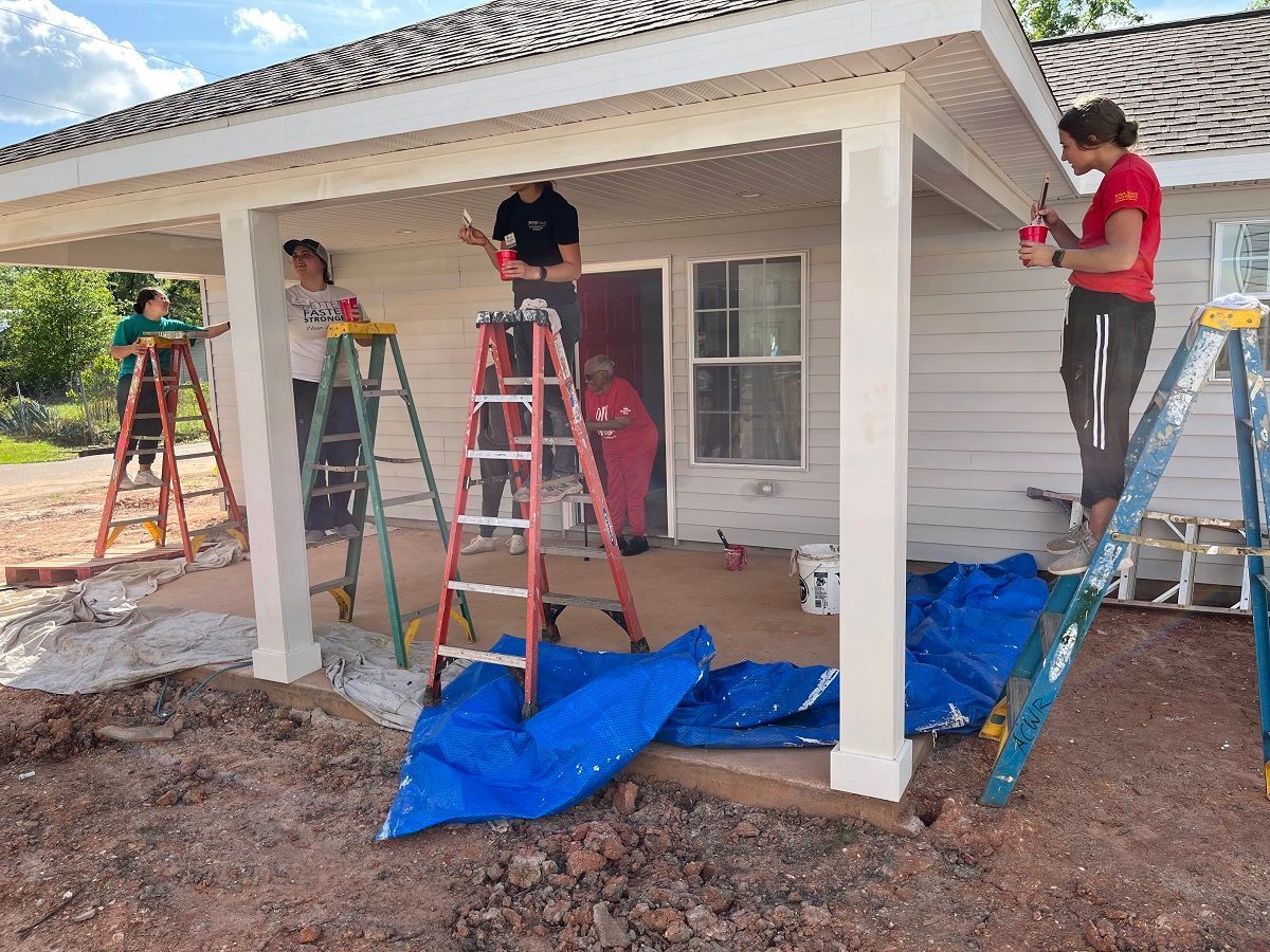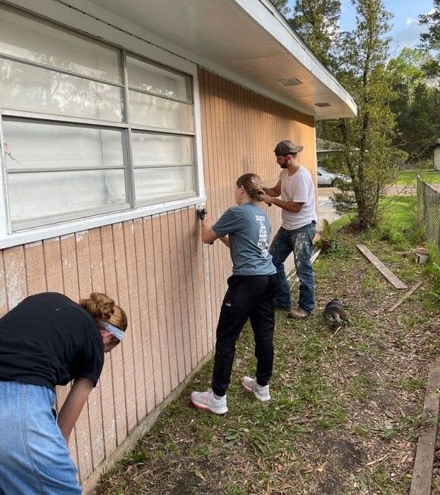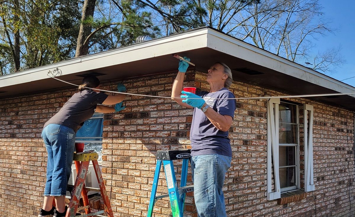 Painting a message on the outside of Keosha’s home before painting the exterior