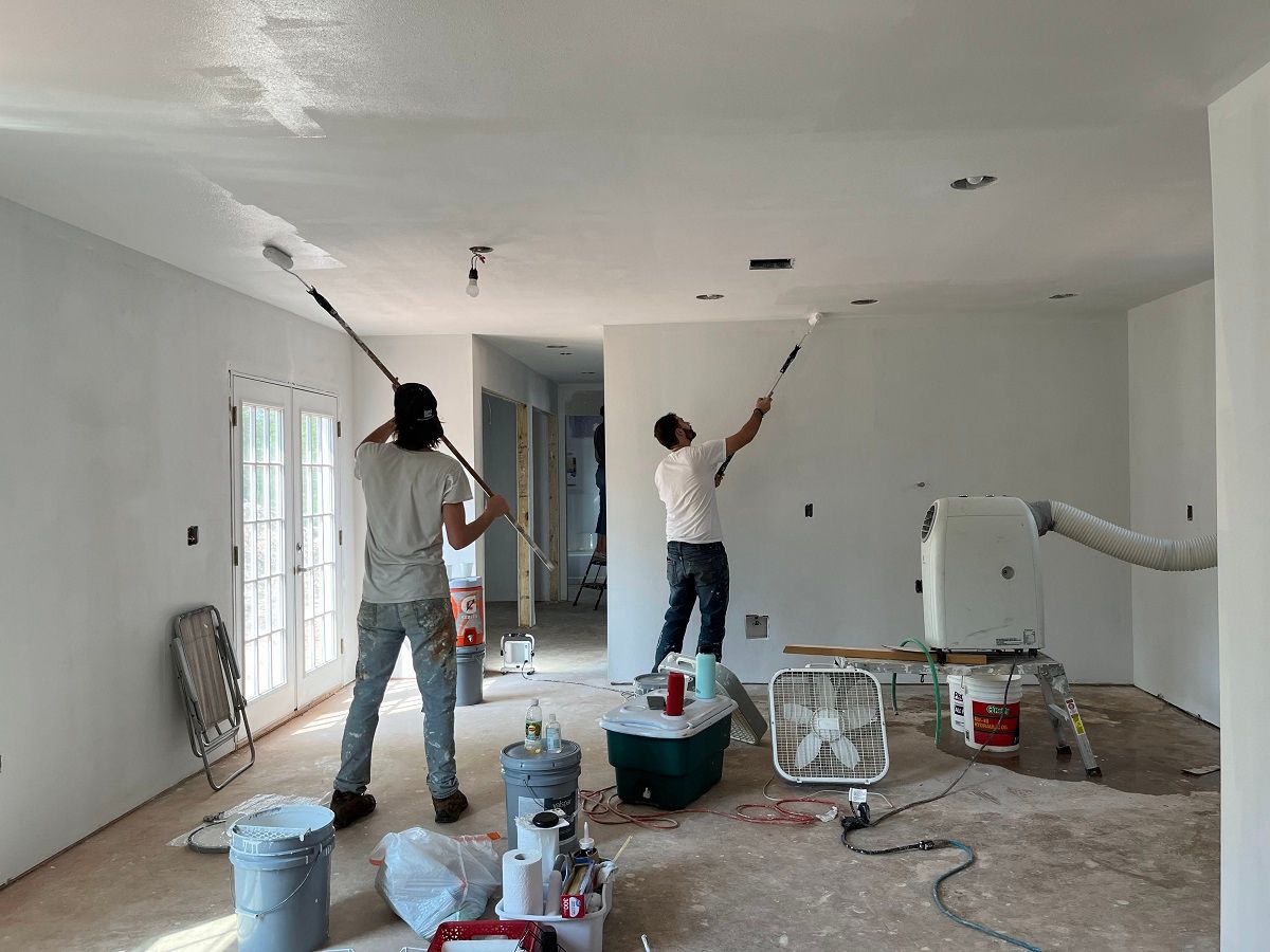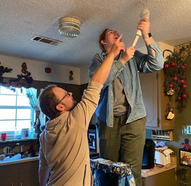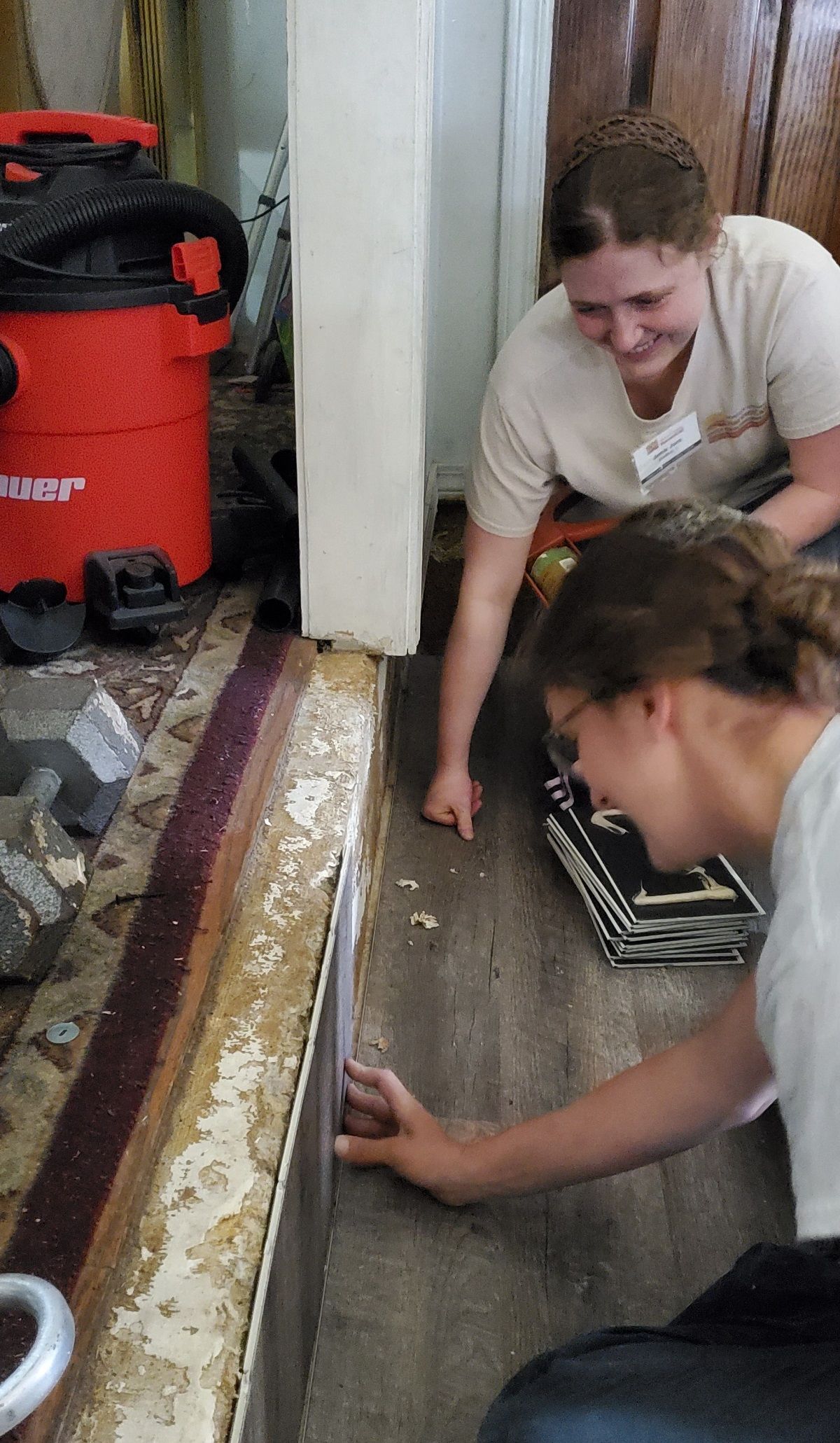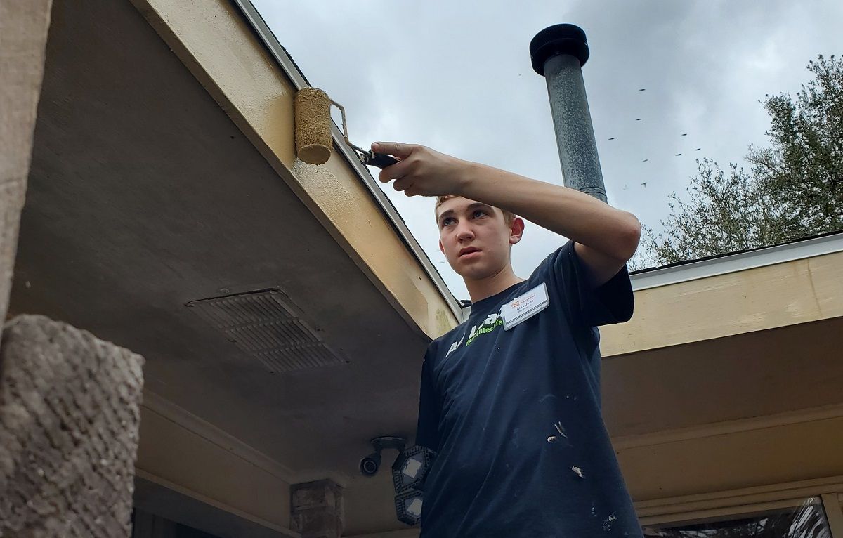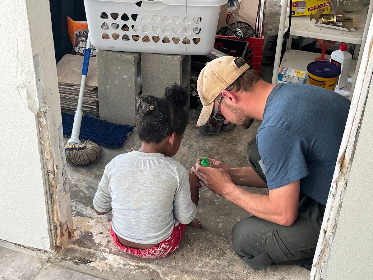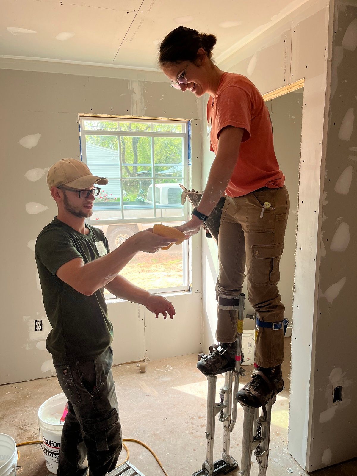 Painting a message on the outside of Keosha’s home before painting the exterior
