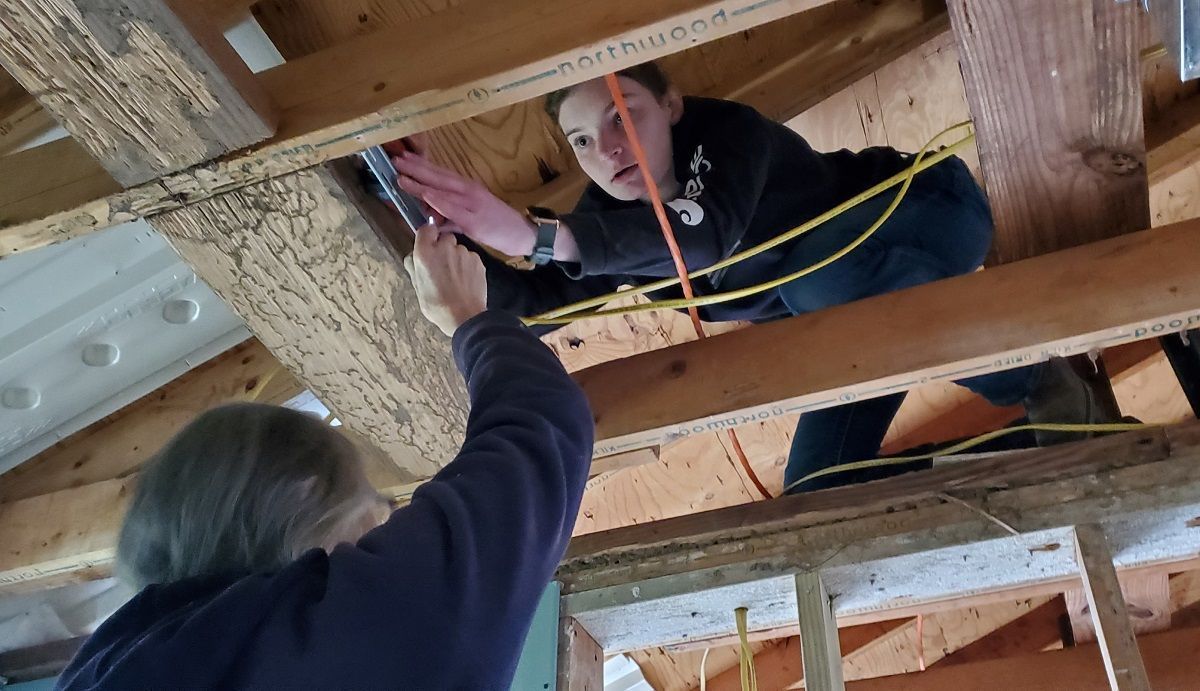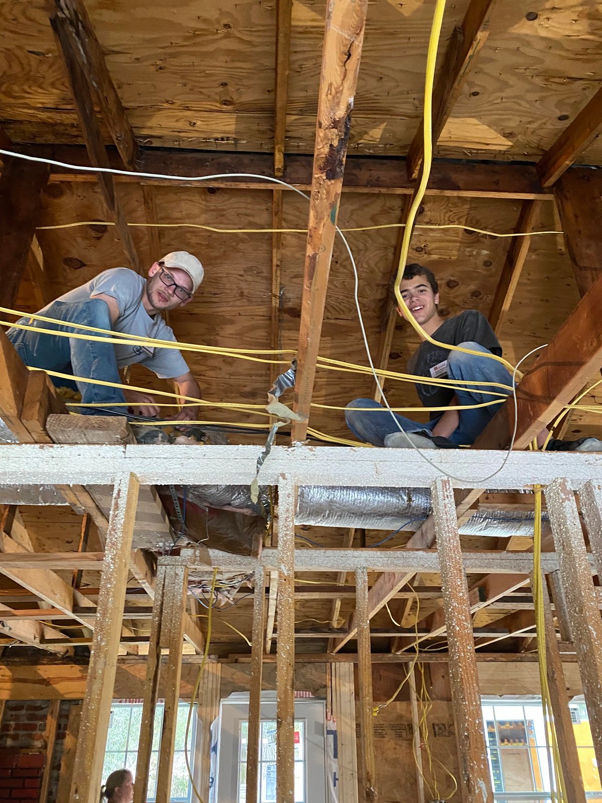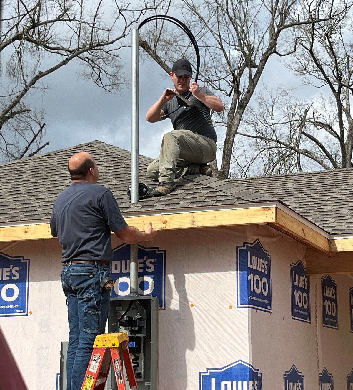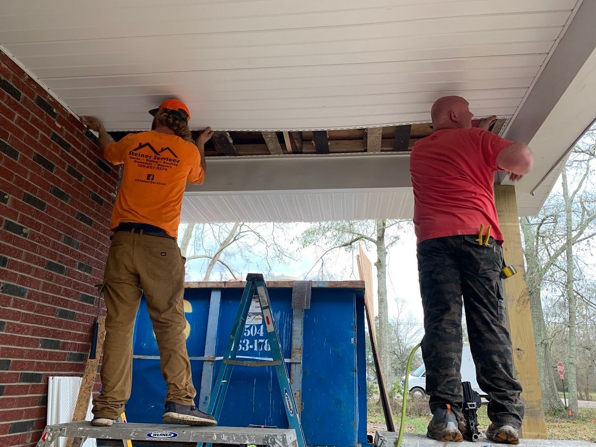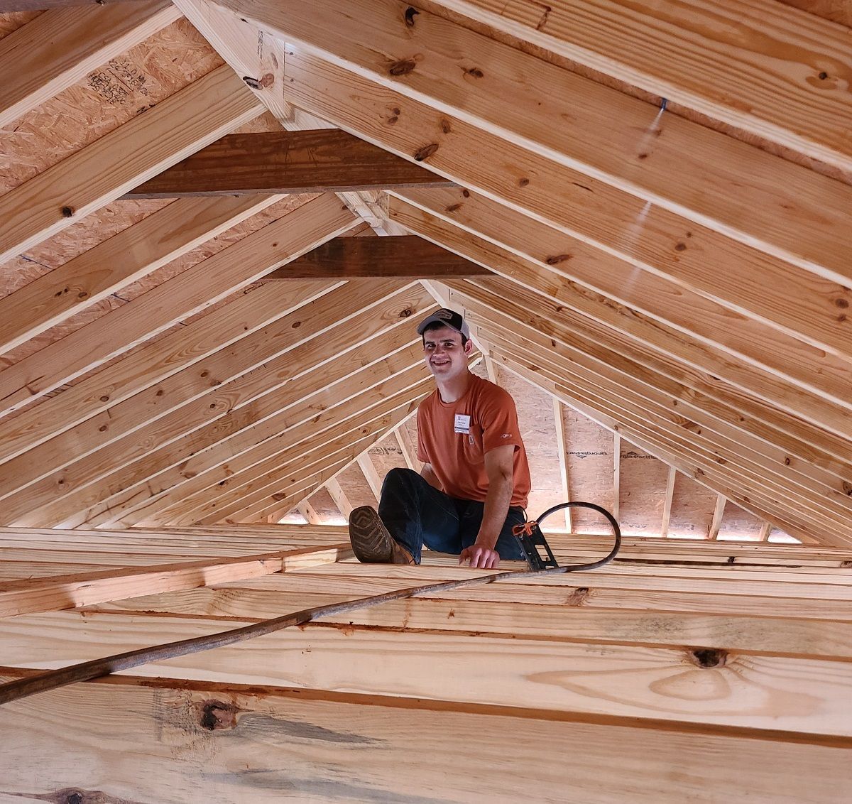 Repairing holes in Vanessa’s roof caused by a tree falling on it