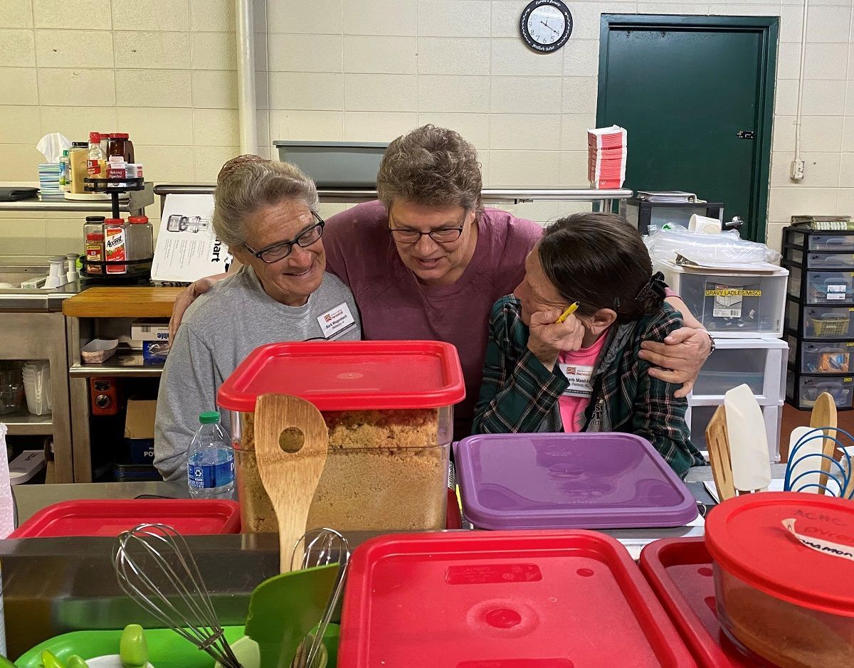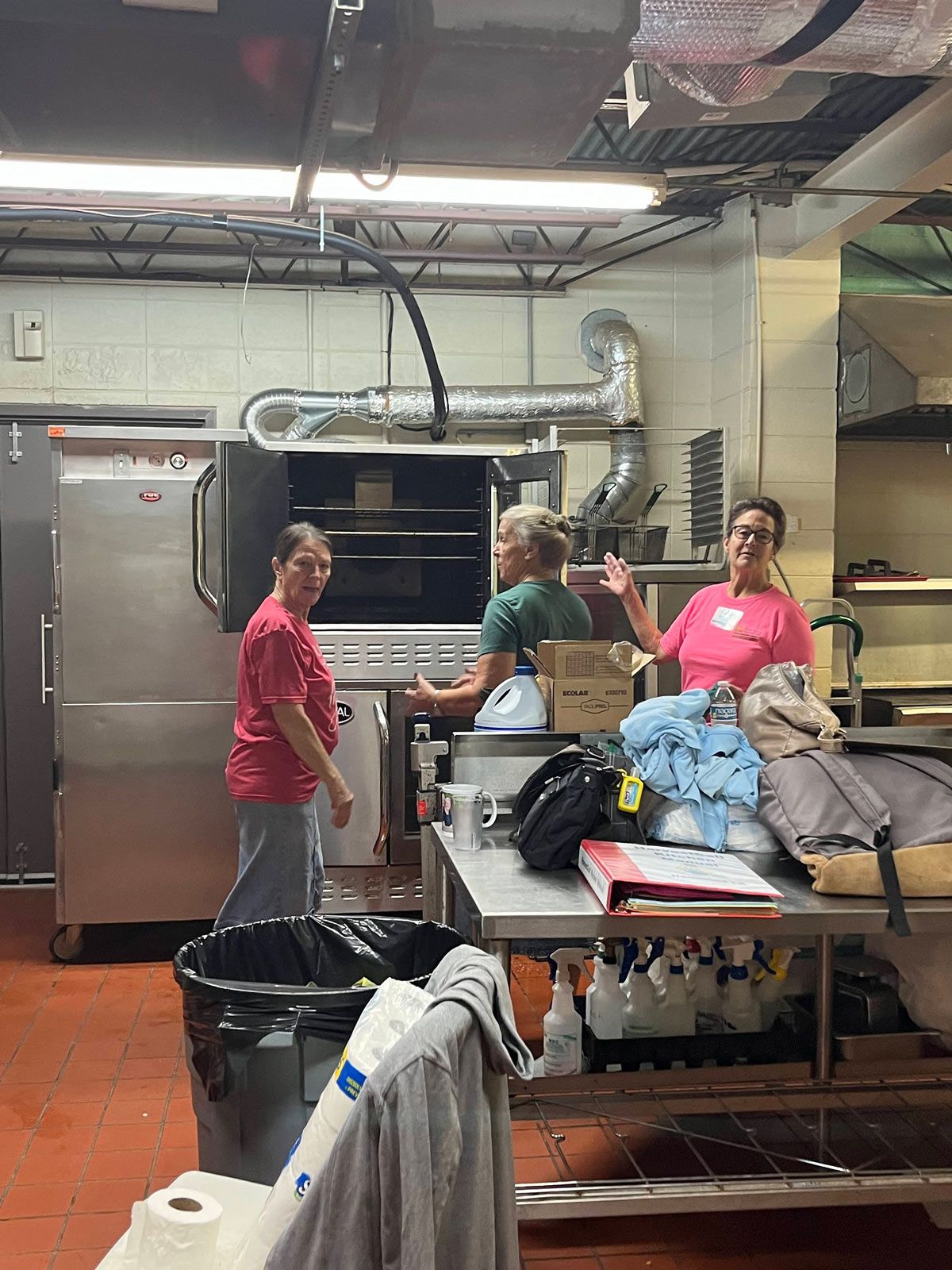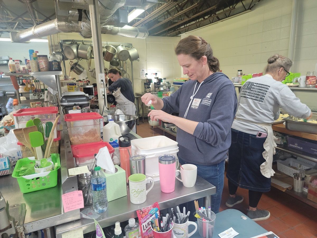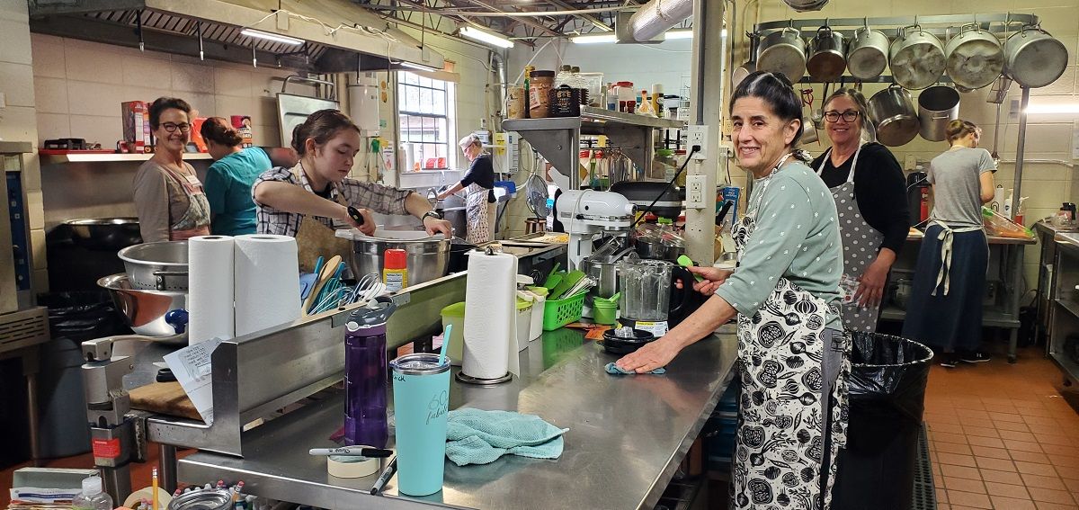 Ladies in the kitchen making lots of delicious food for the volunteers