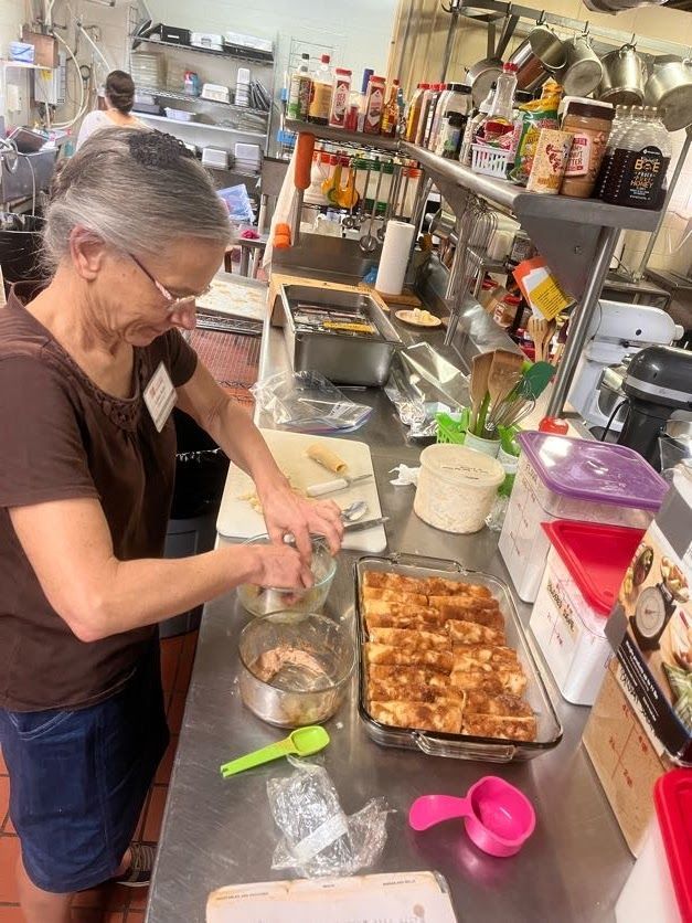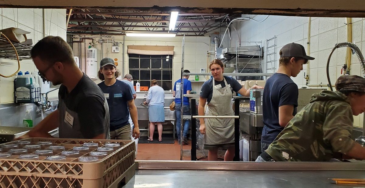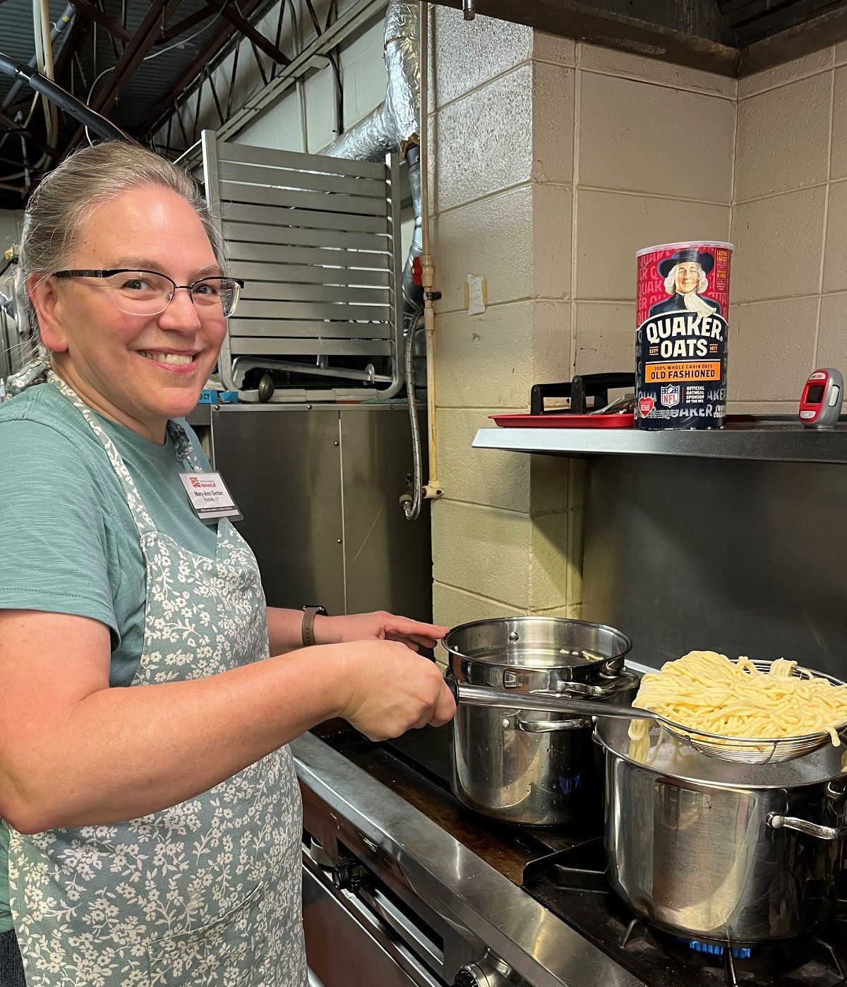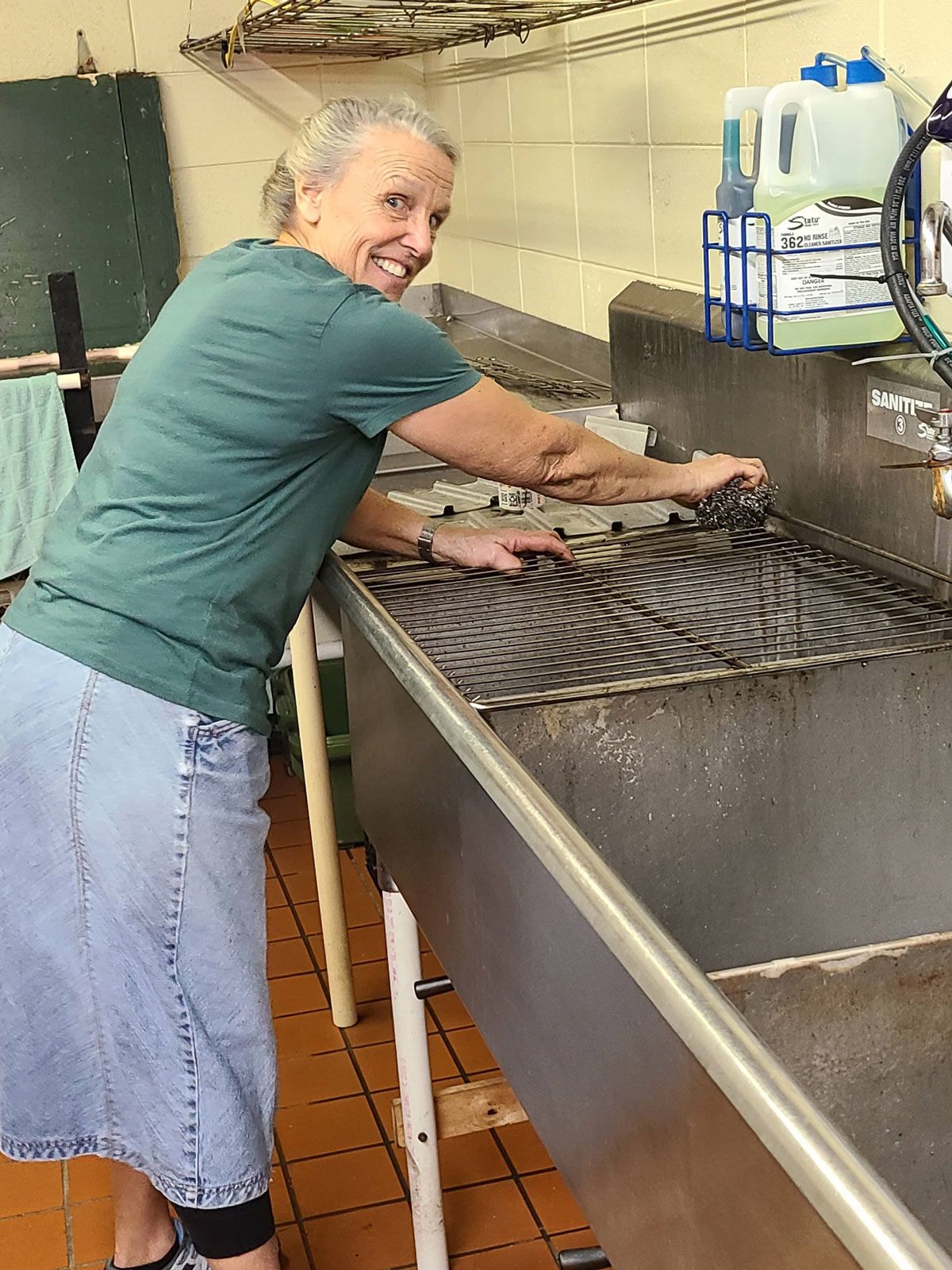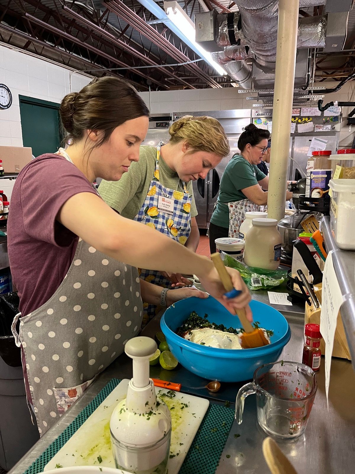 Ladies in the kitchen making lots of delicious food for the volunteers