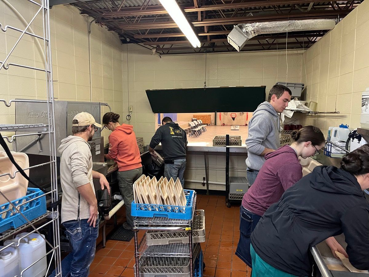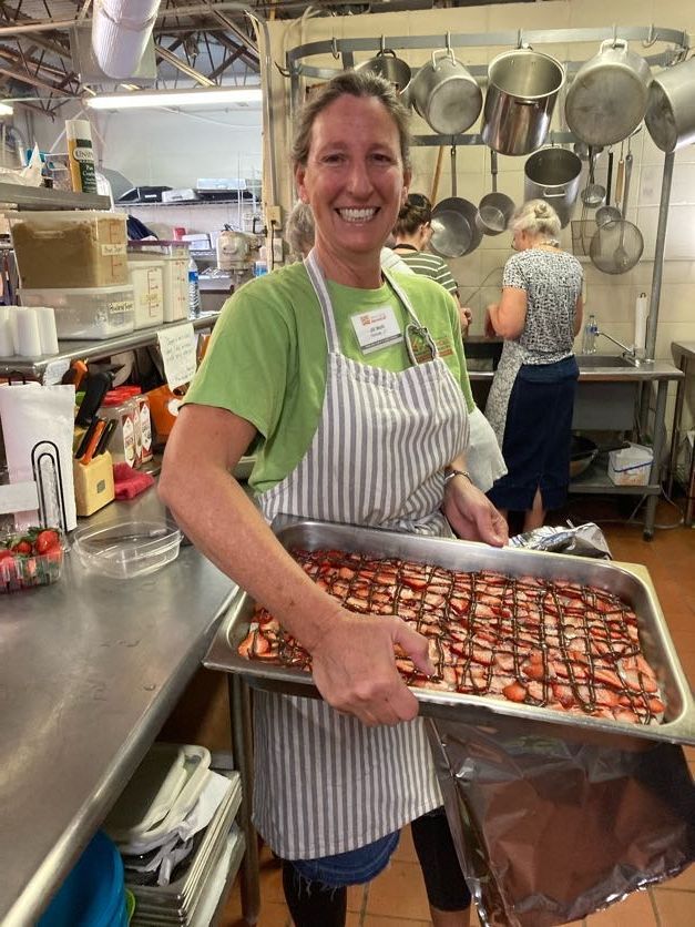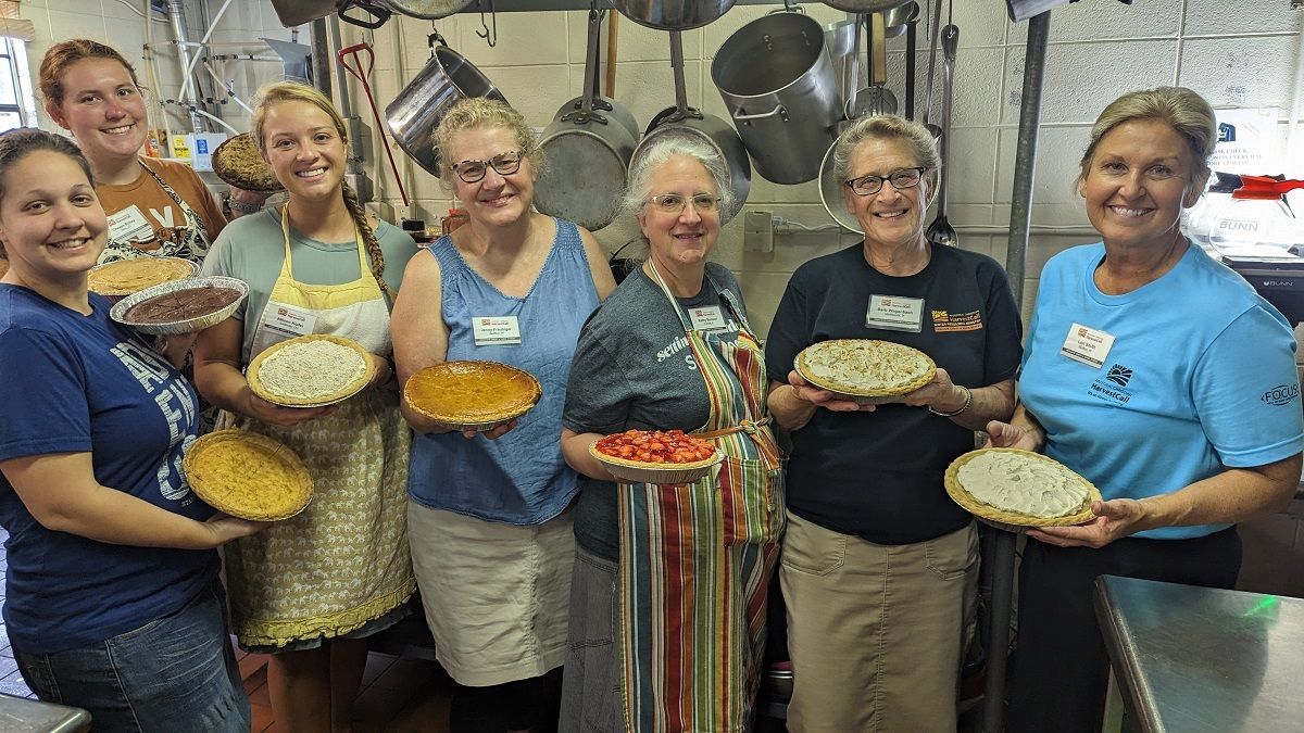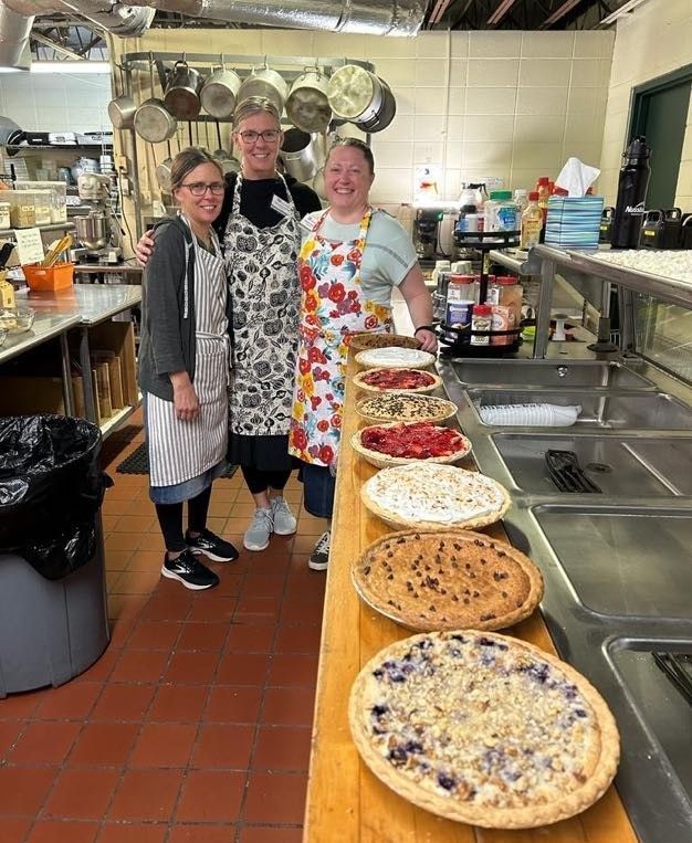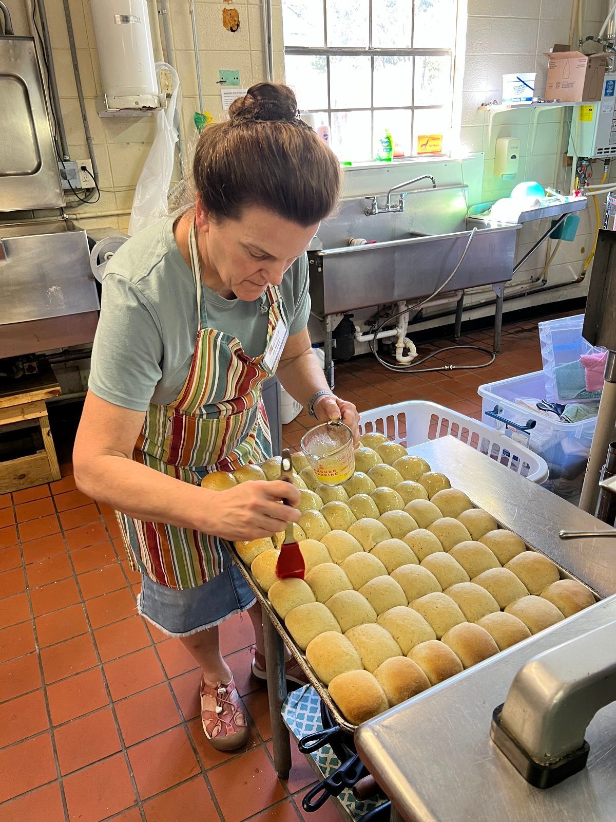 Ladies in the kitchen making lots of delicious food for the volunteers