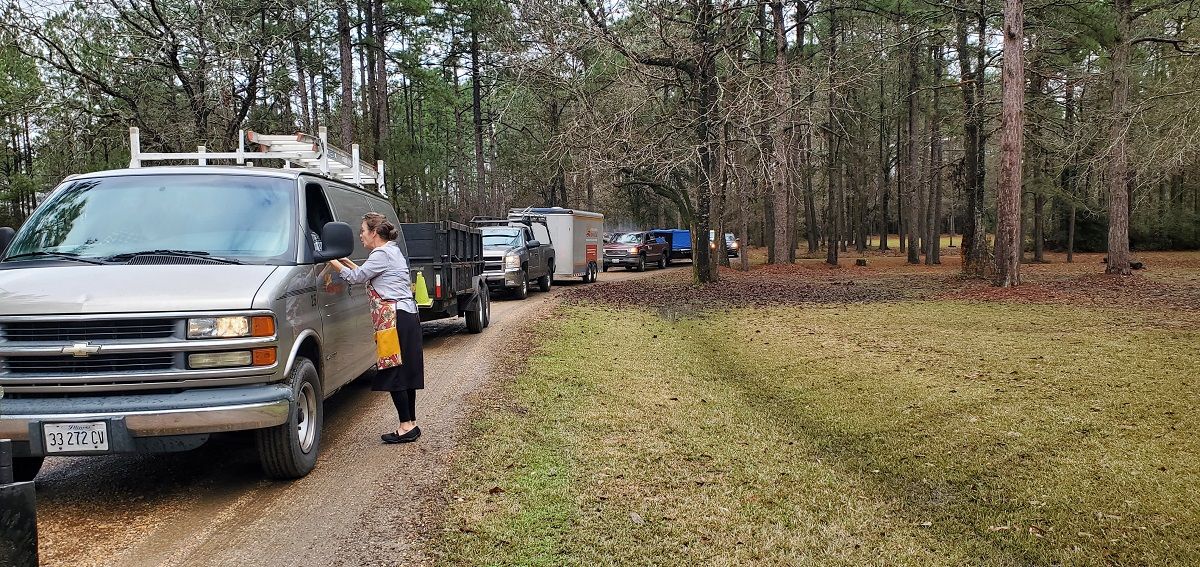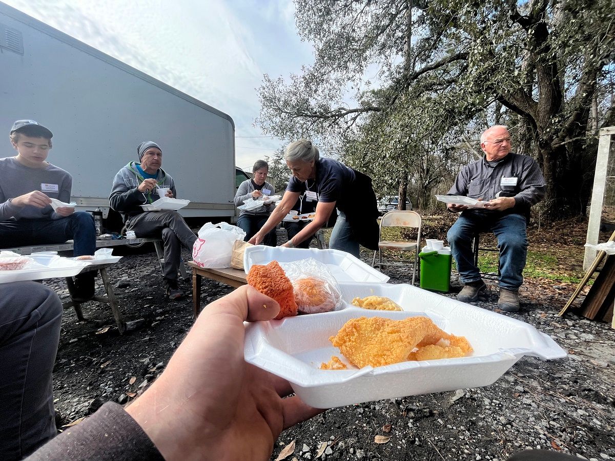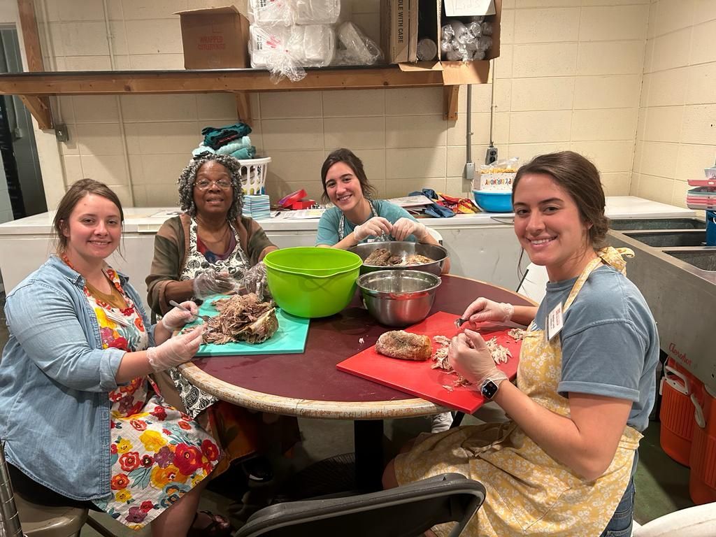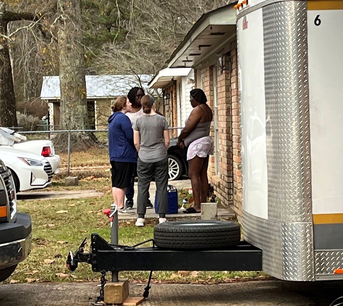 Ladies from the kitchen taking volunteers treats at Willis’s house
