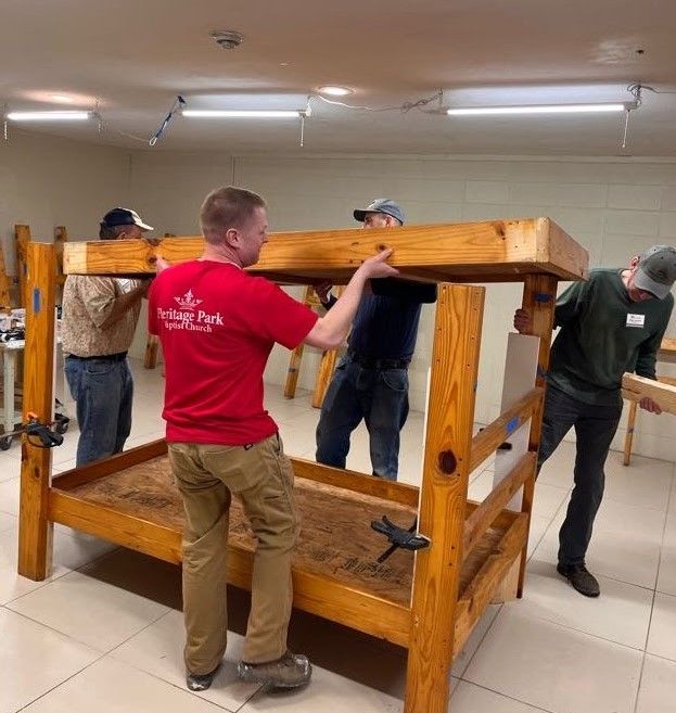 Reassembling bunk beds for a large function at Camp Living Waters this weekend