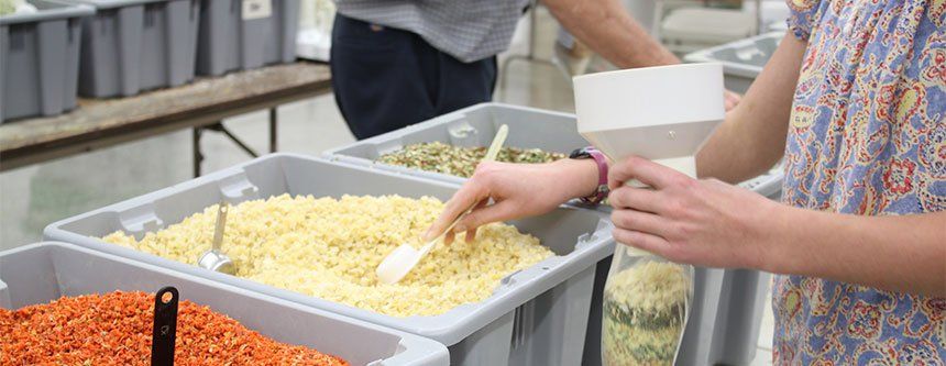 Soup packing is a project at several of the Distribution Centers. In addition, many churches within several hours of a Distribution Center request soup packing ingredients and supplies. Then, they assemble soup at their own location and return the finished product to the Distribution Center or distribute the soup locally.