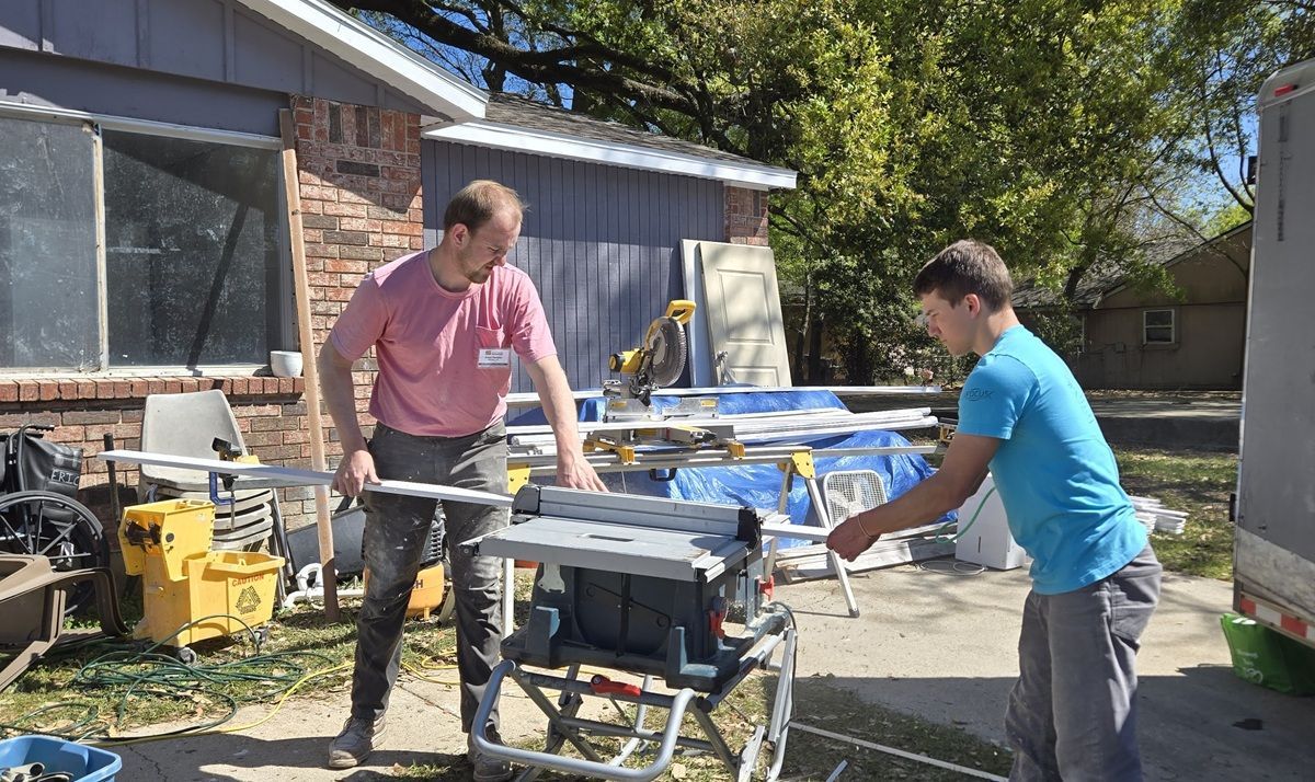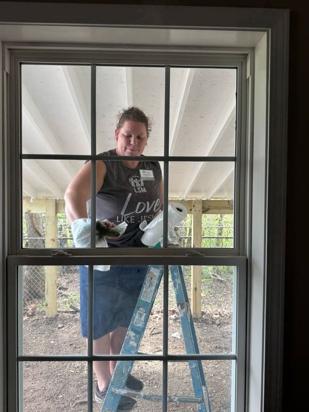 Installing new windows on the porch at Miss LaVera’s house