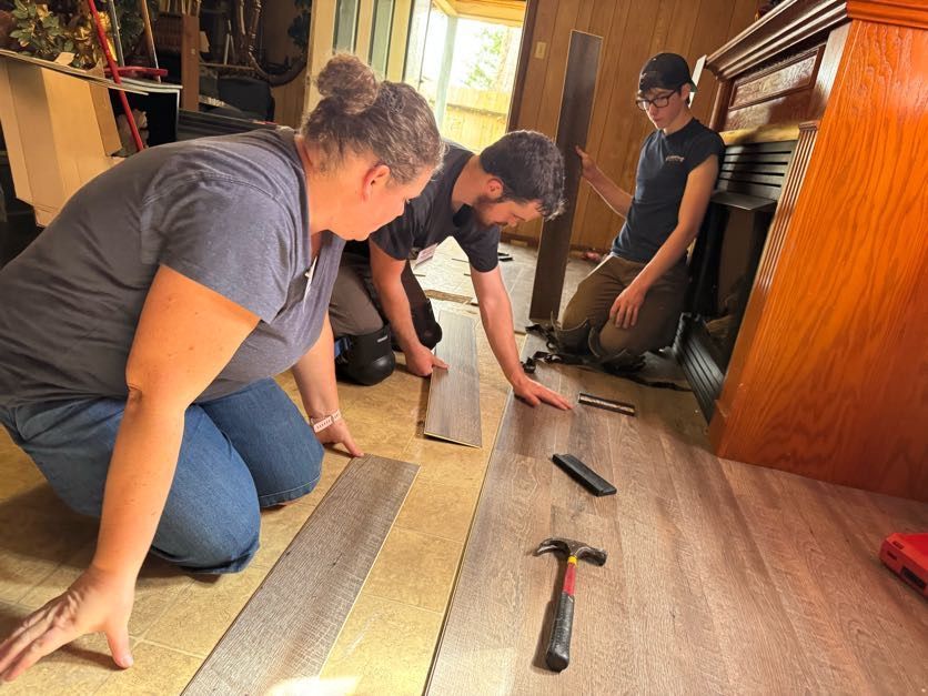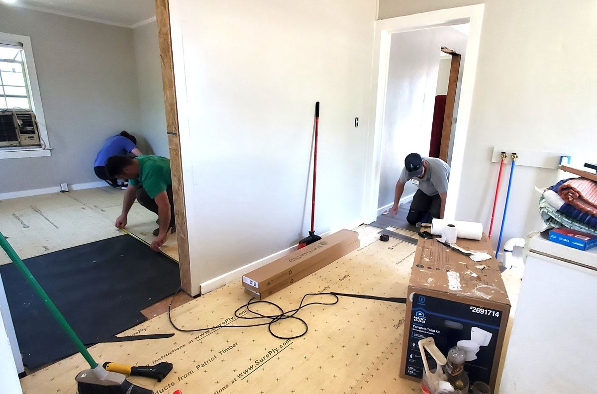 Laying flooring at Miss Bonita’s new house