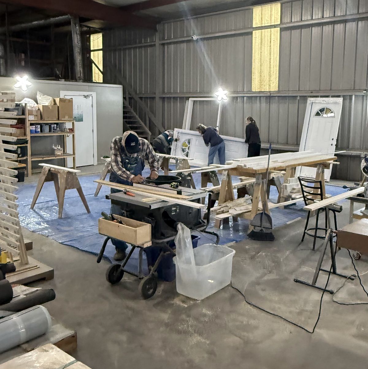 Preparing doors and frames in the Trim Shop