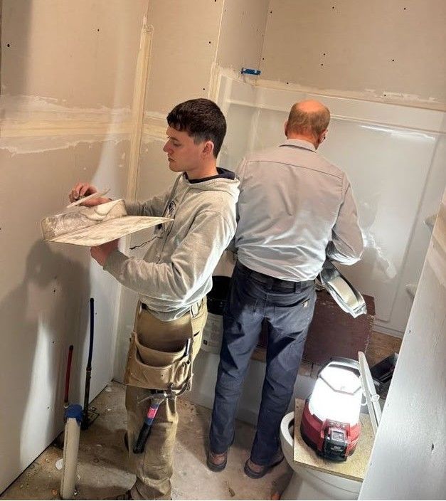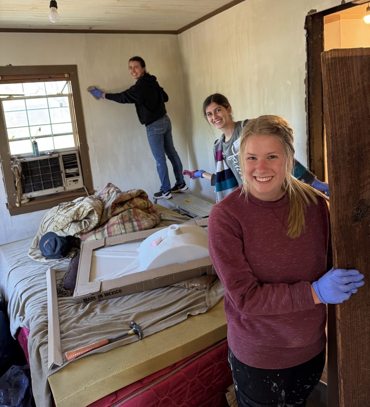 Finishing drywall in the bathroom of Miss Mable’s house