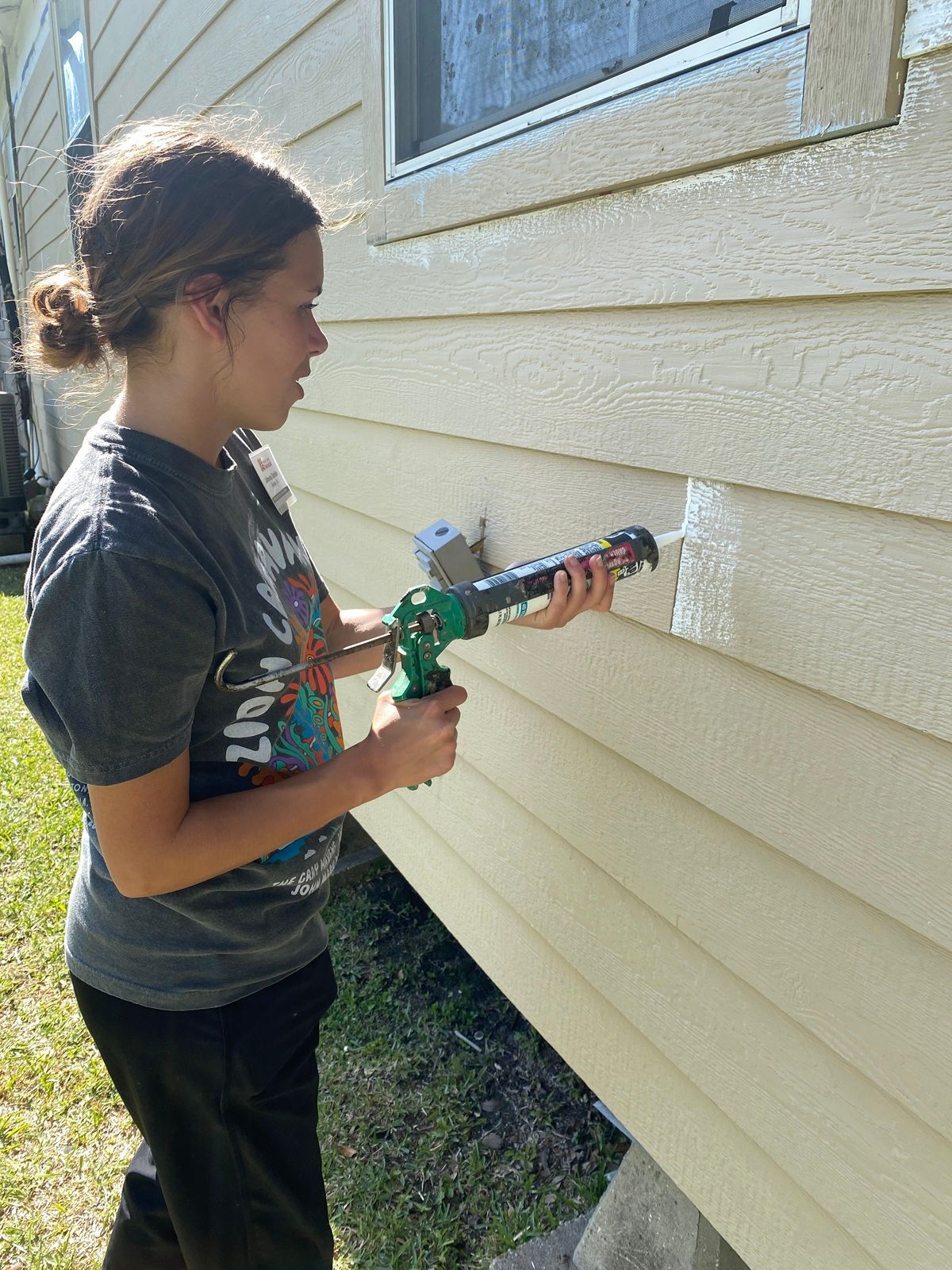 Caulking trim at Mr. Lawrence’s house