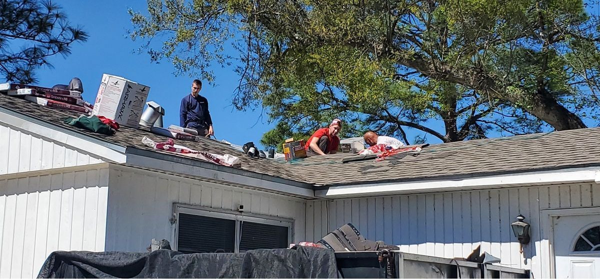 Volunteers roofing at Miss Felicia’s house