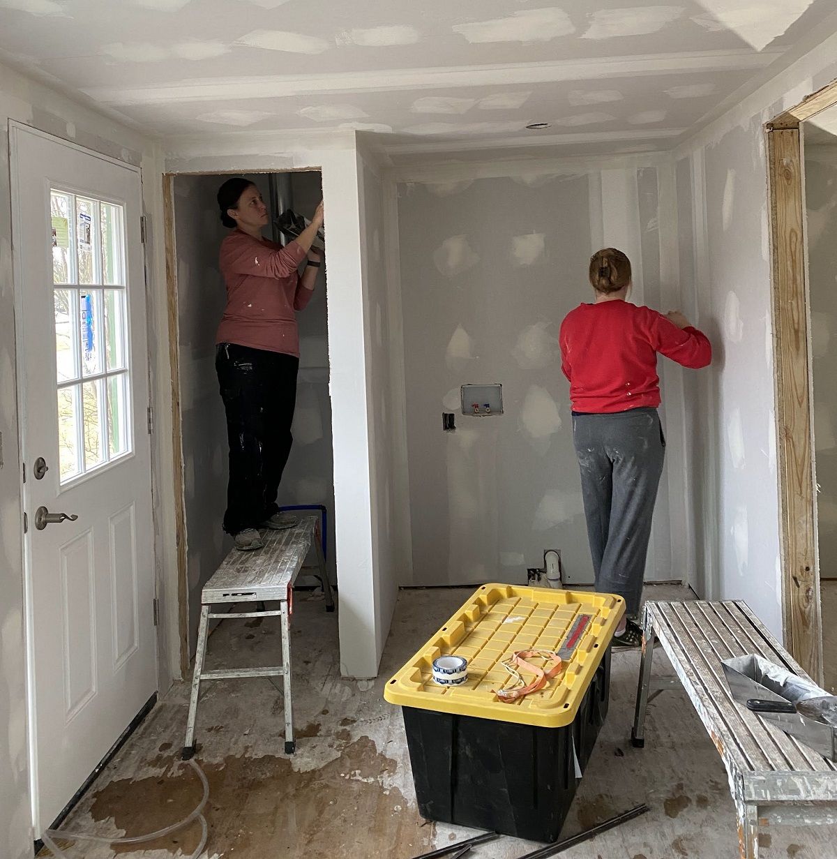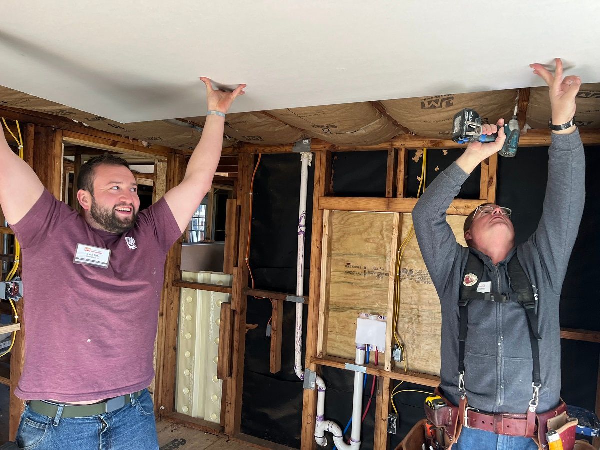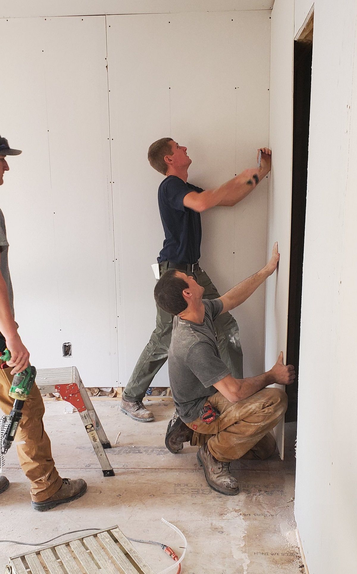 Drywall sheets going on the ceiling at Quinten and Carolyn’s house