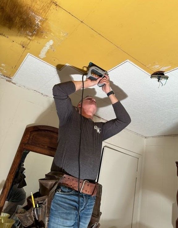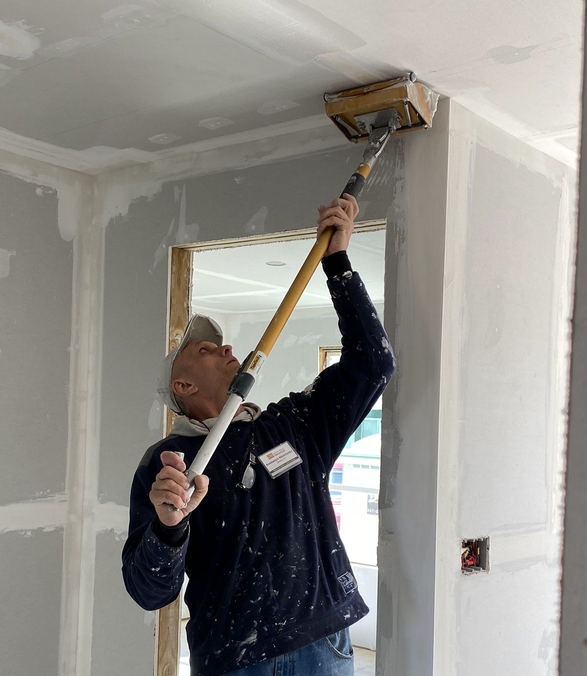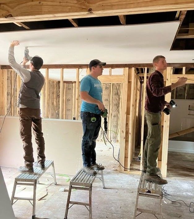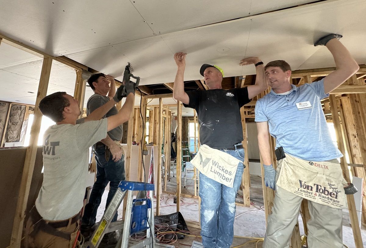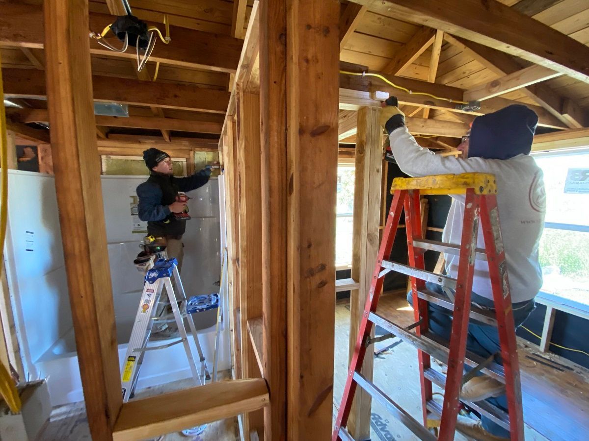 Drywall sheets going on the ceiling at Quinten and Carolyn’s house