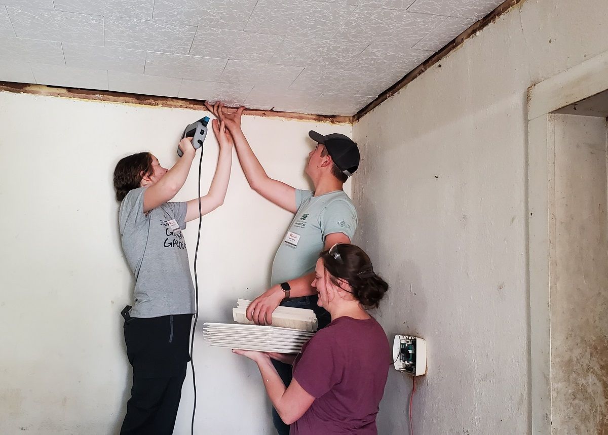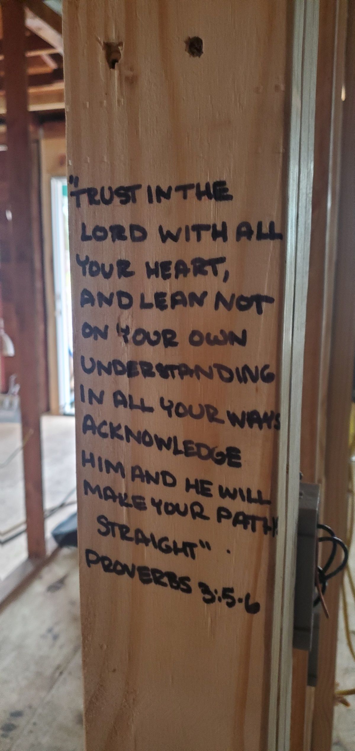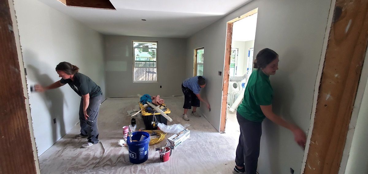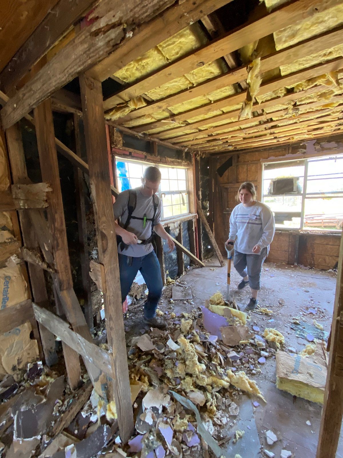 Volunteers writing scripture on the open walls in Kathleen’s house