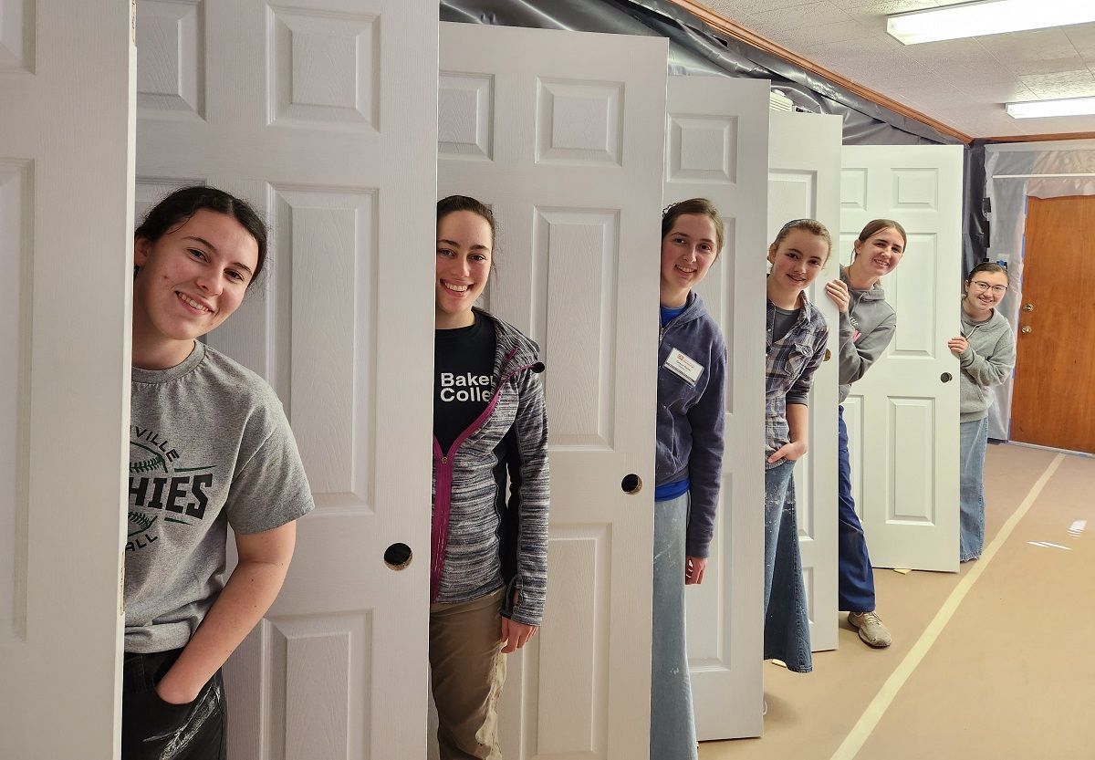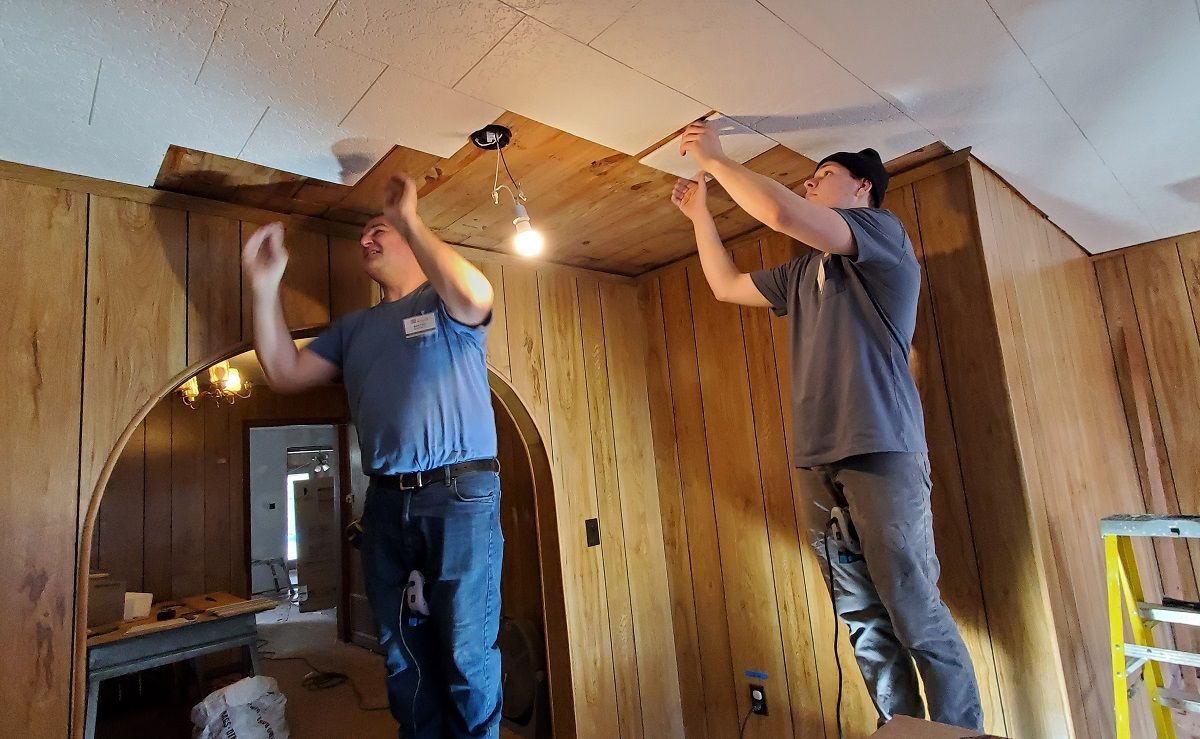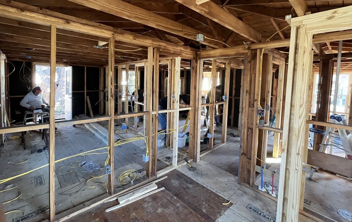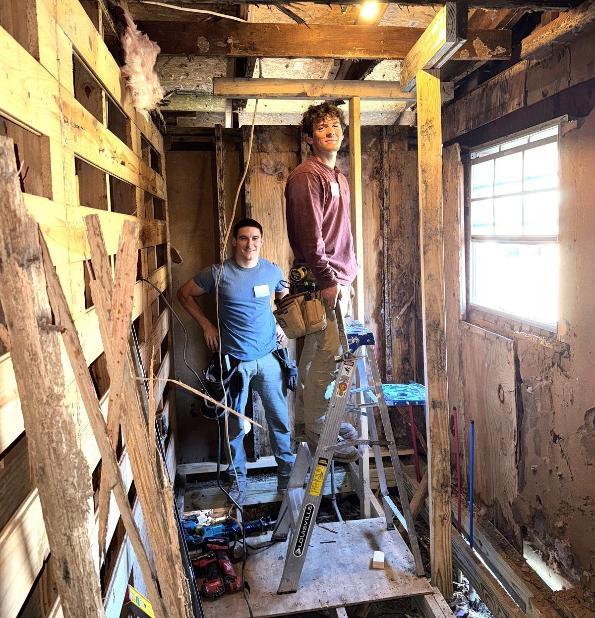 Volunteers writing scripture on the open walls in Kathleen’s house