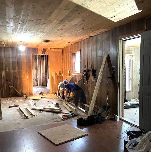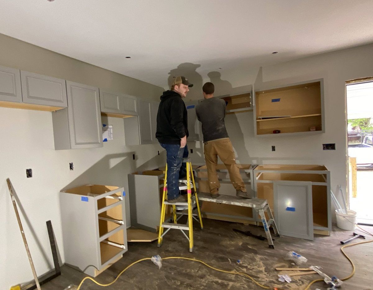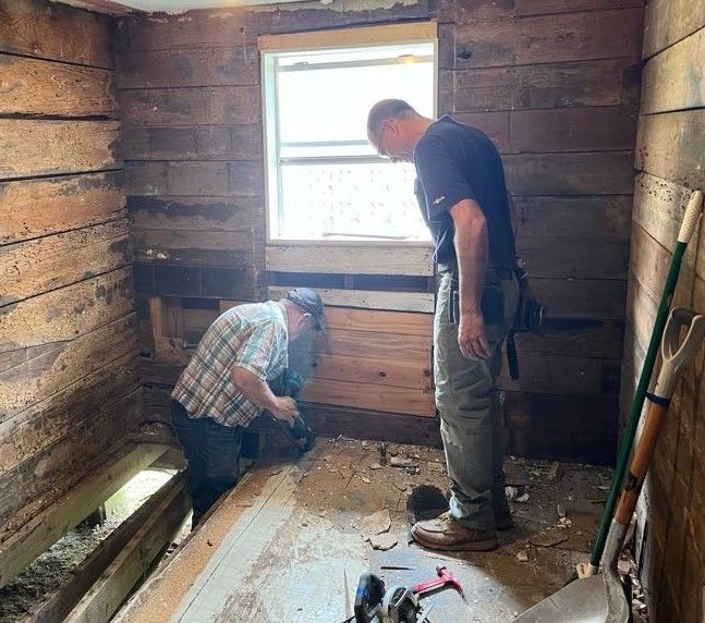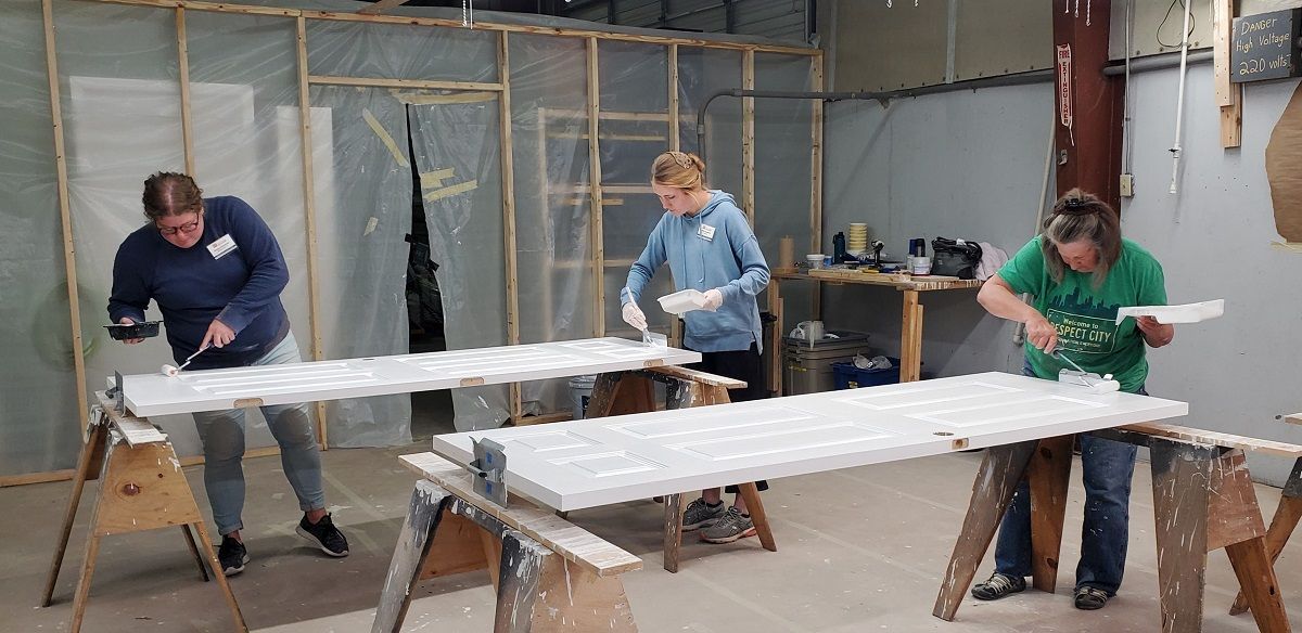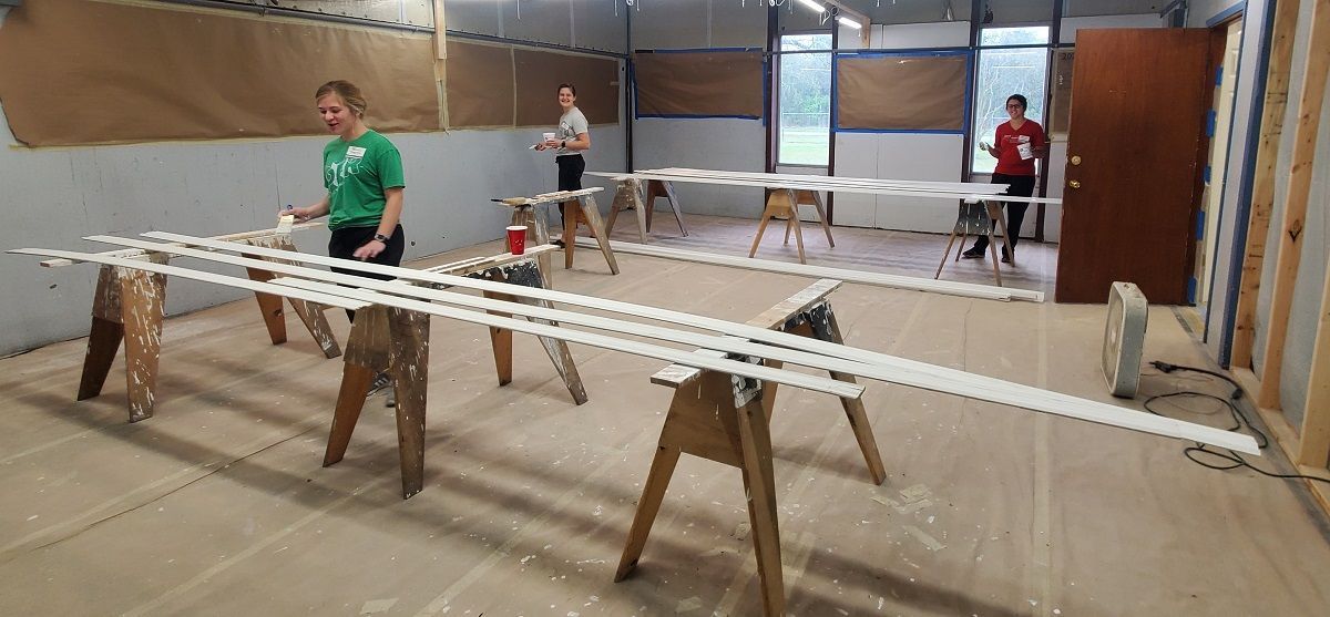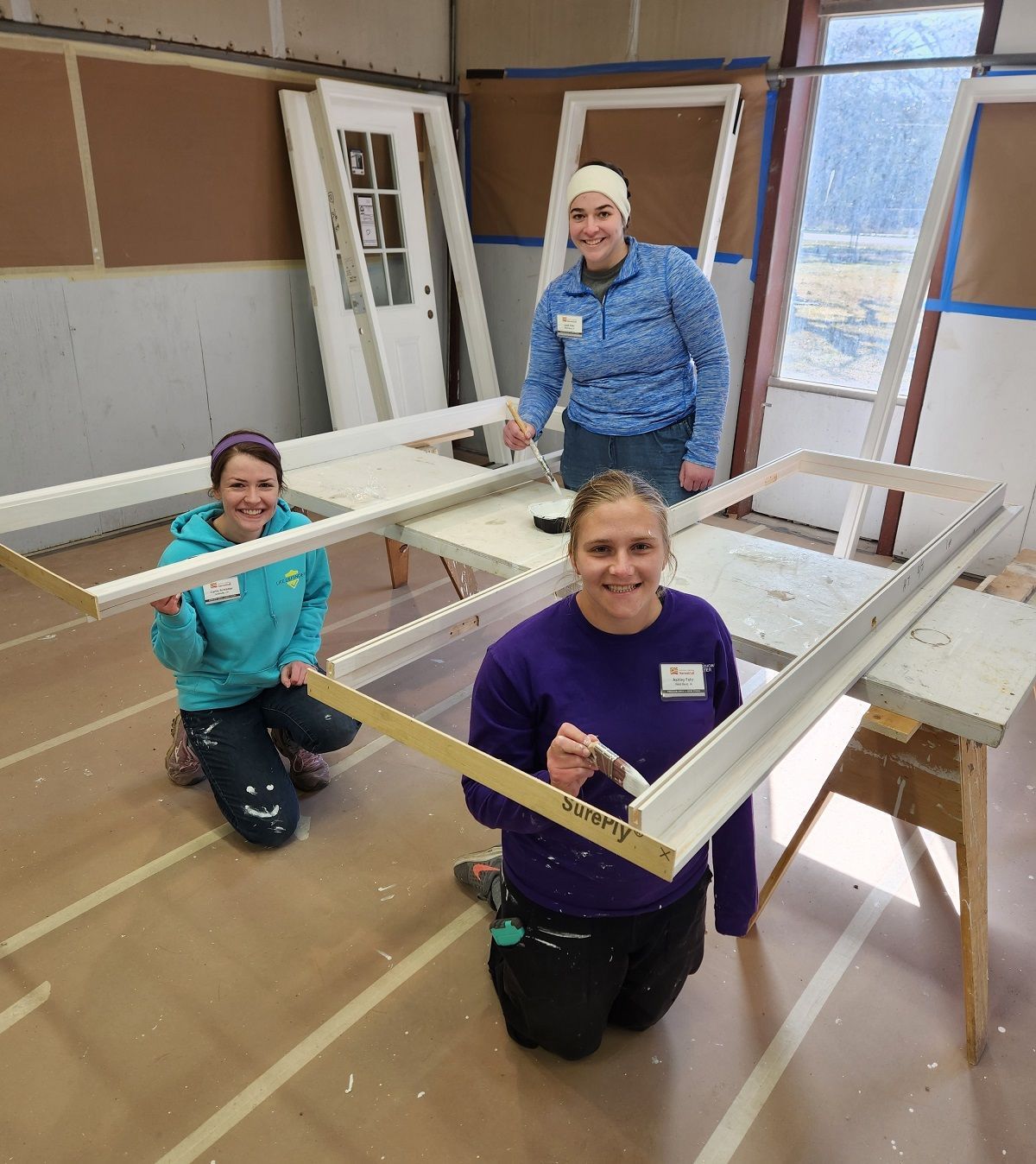Volunteers writing scripture on the open walls in Kathleen’s house