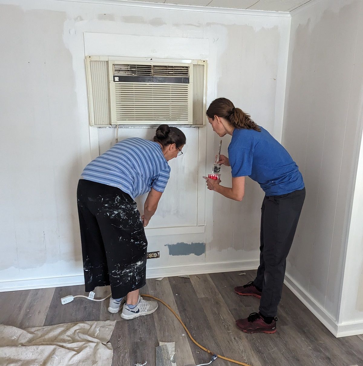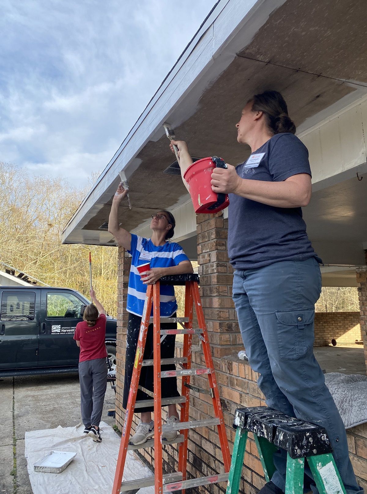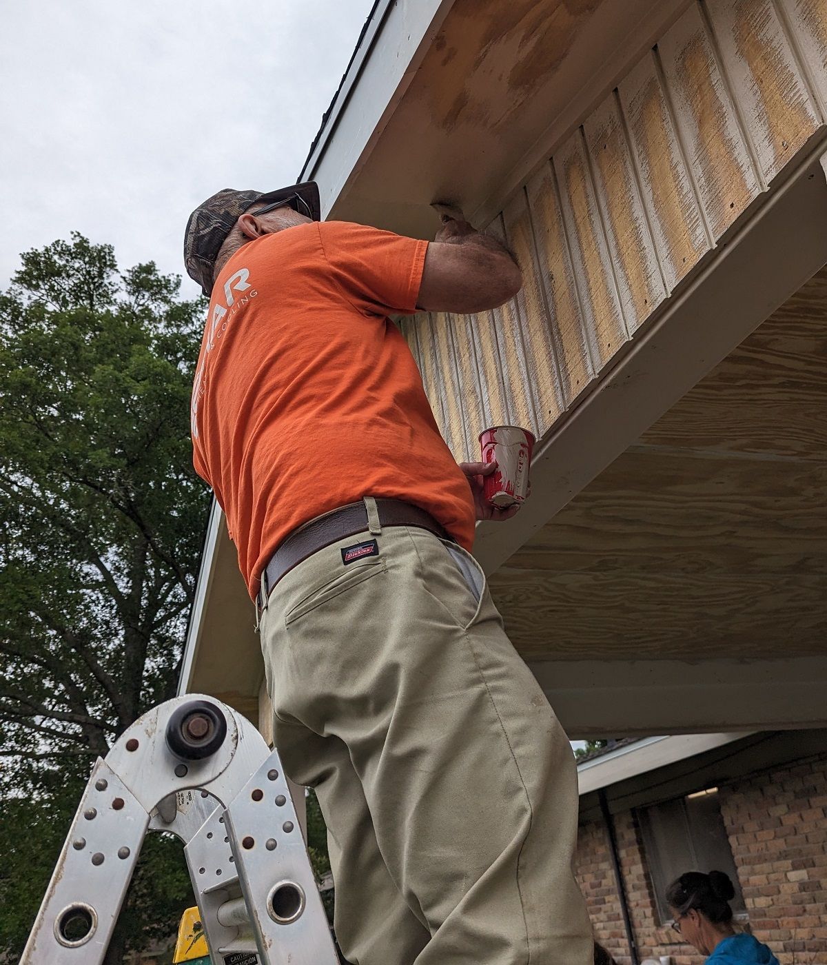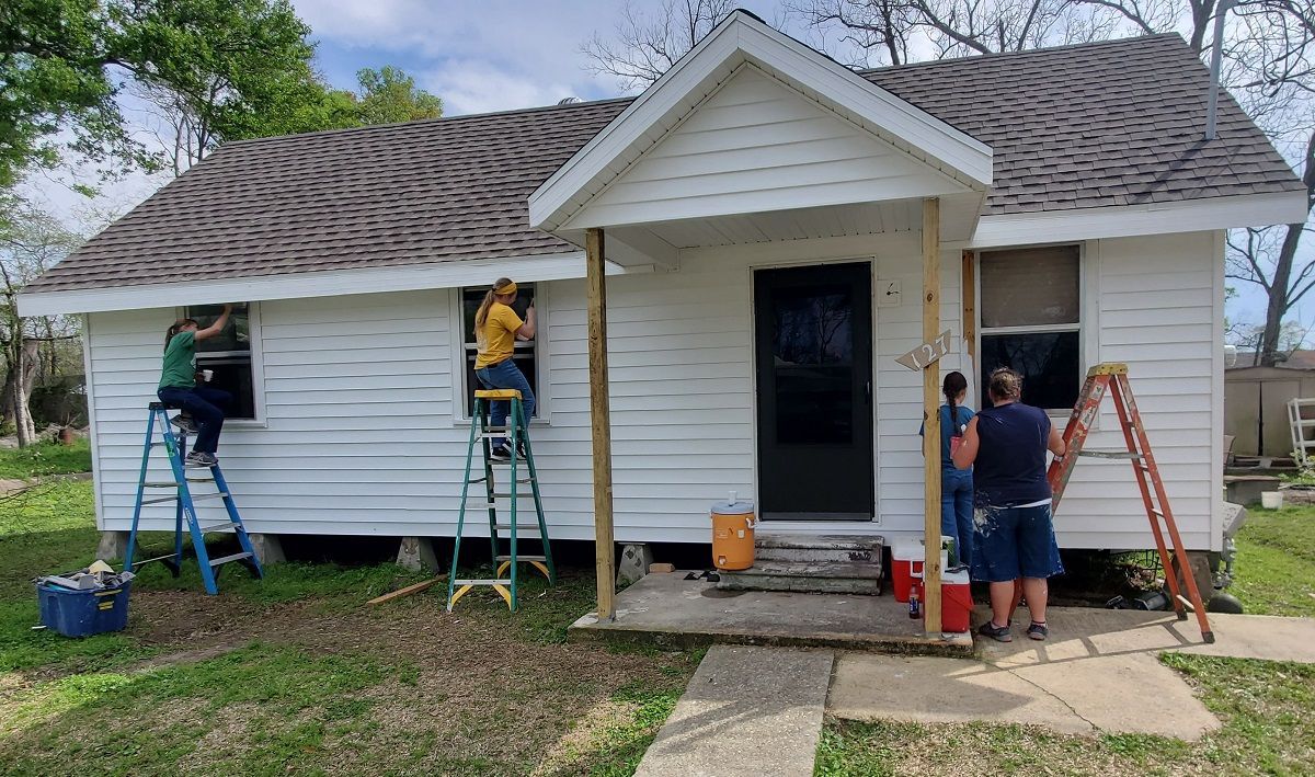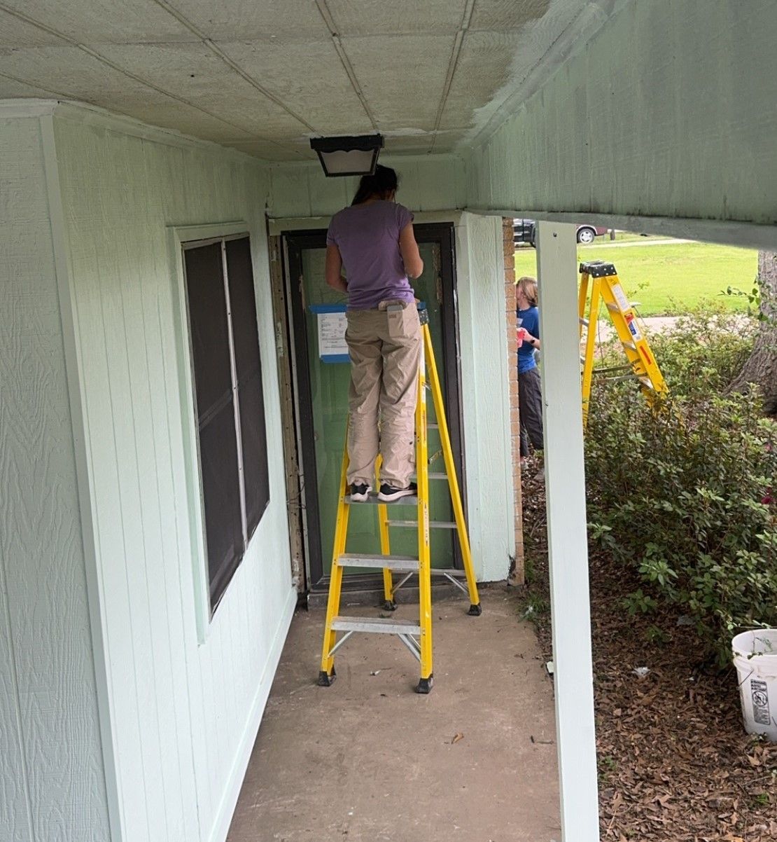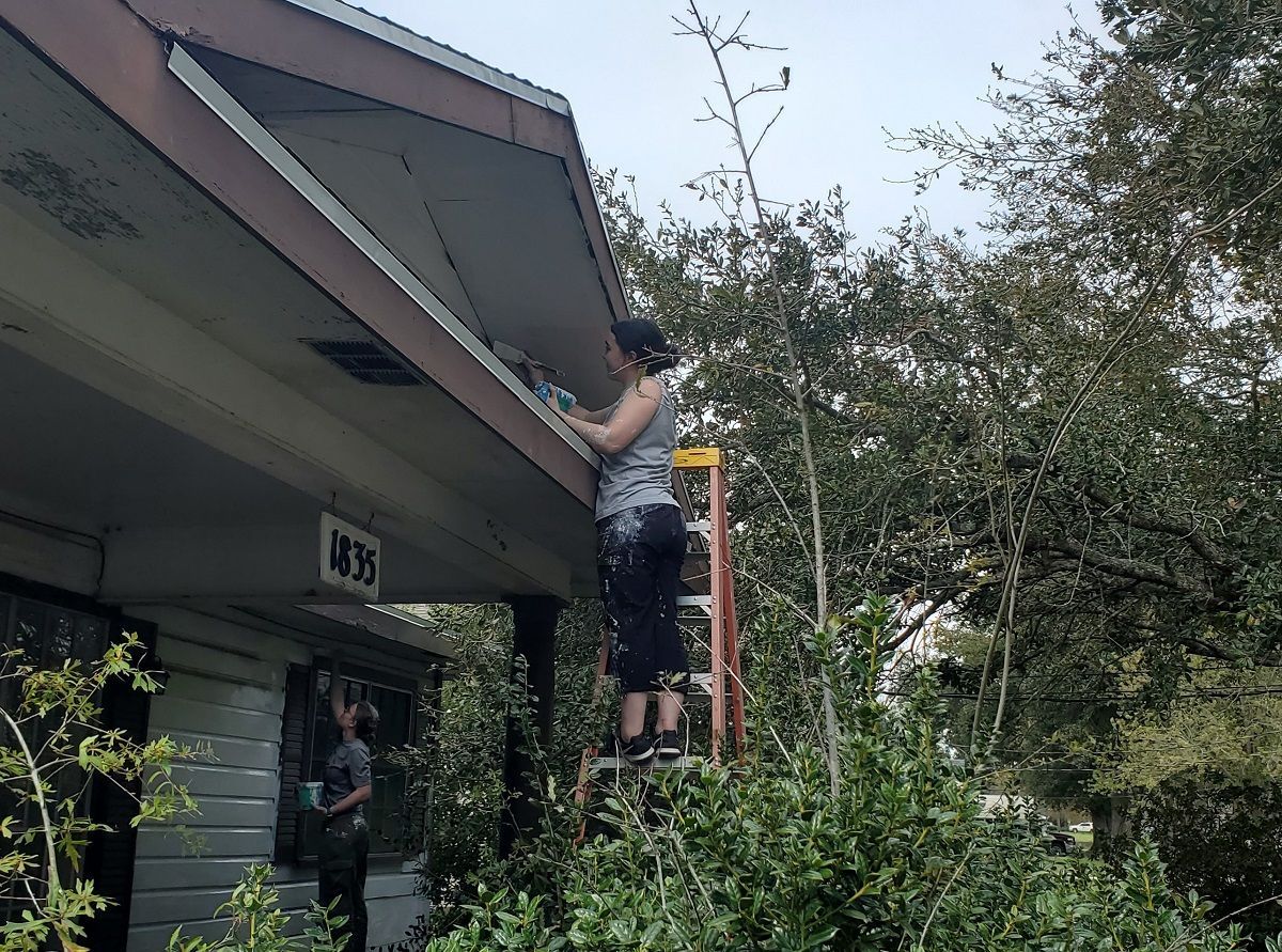 Scraping and getting ready to pain the exterior of Alton and Shiela’s house