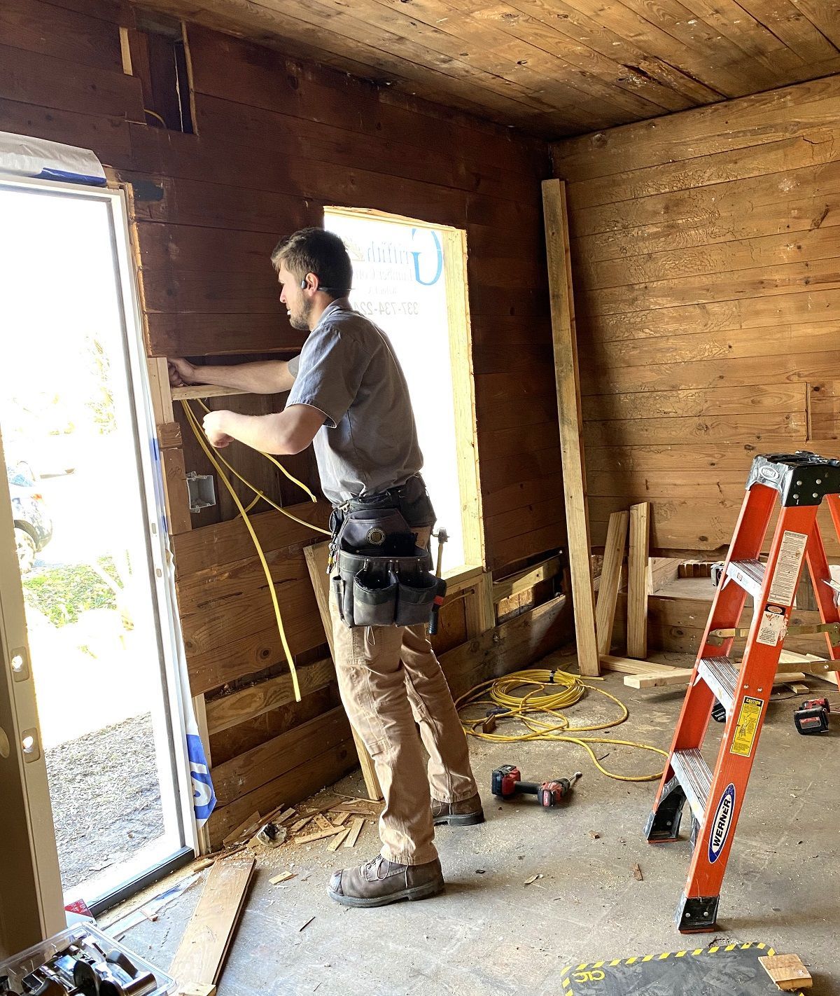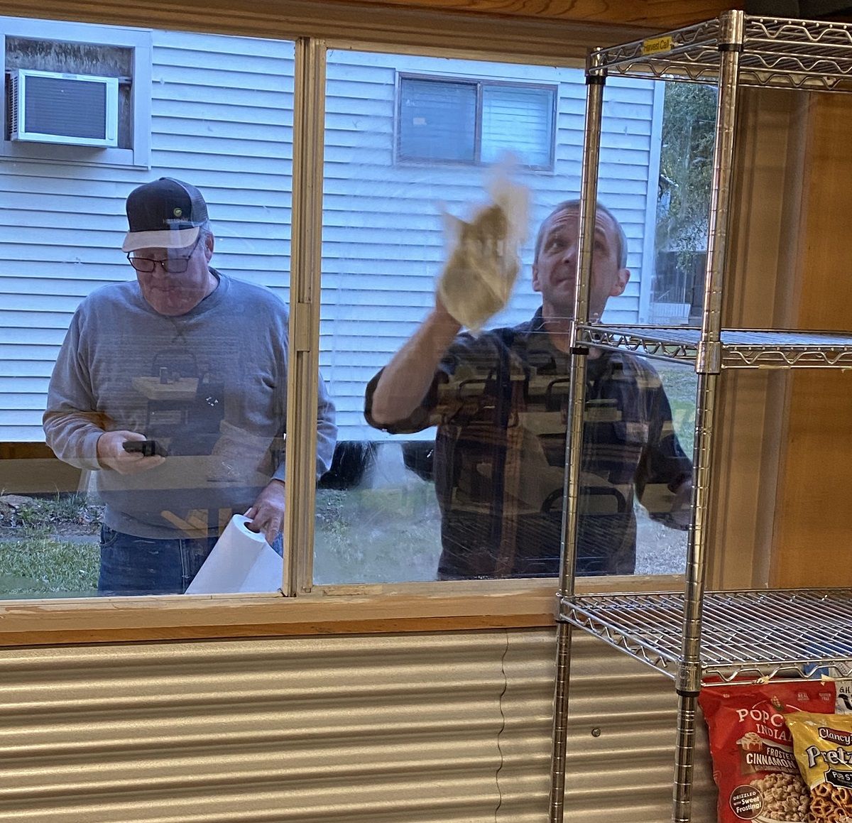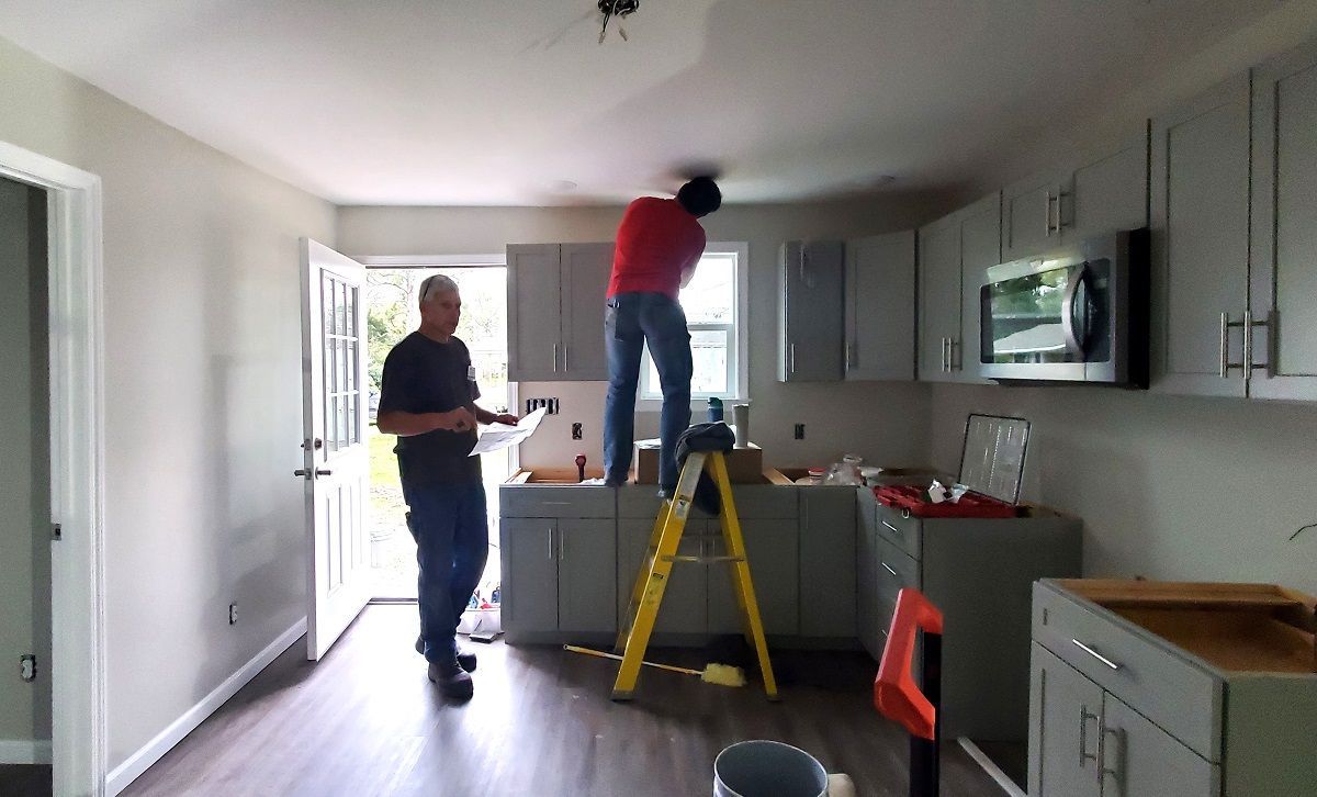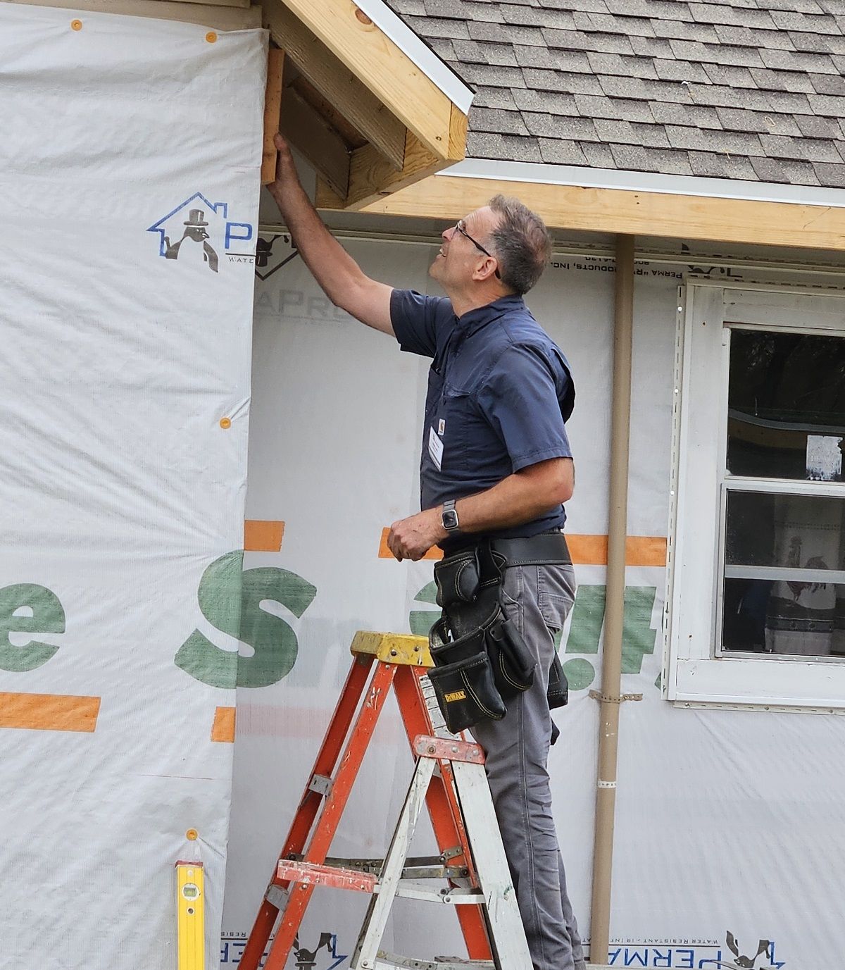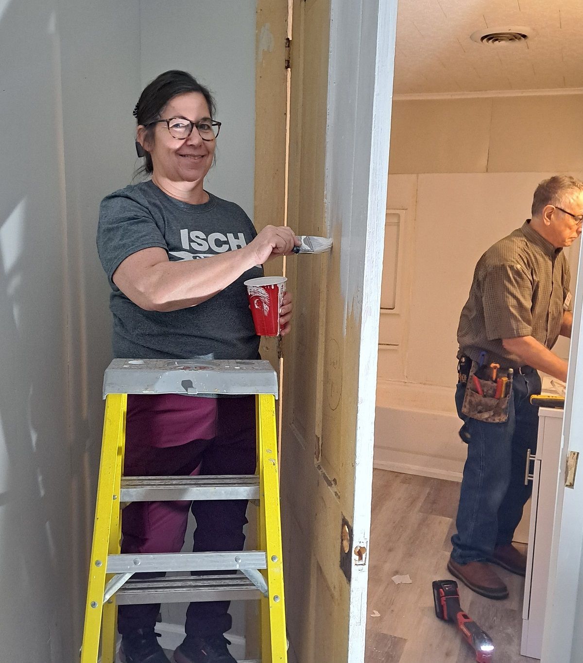 Scraping and getting ready to pain the exterior of Alton and Shiela’s house