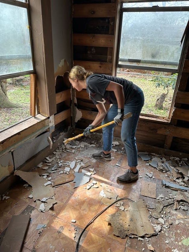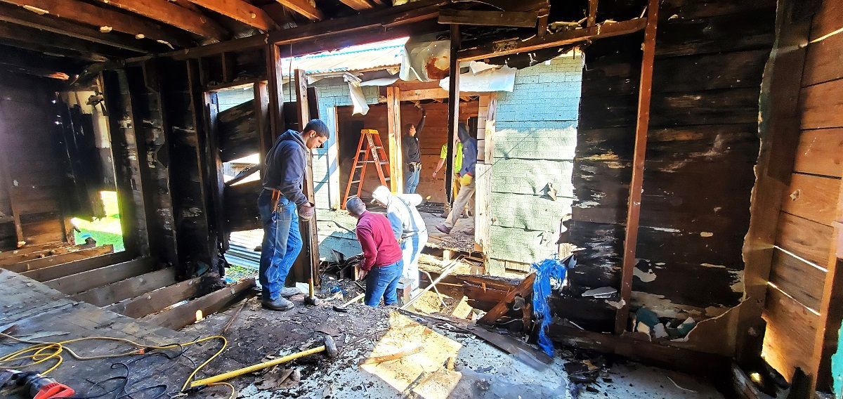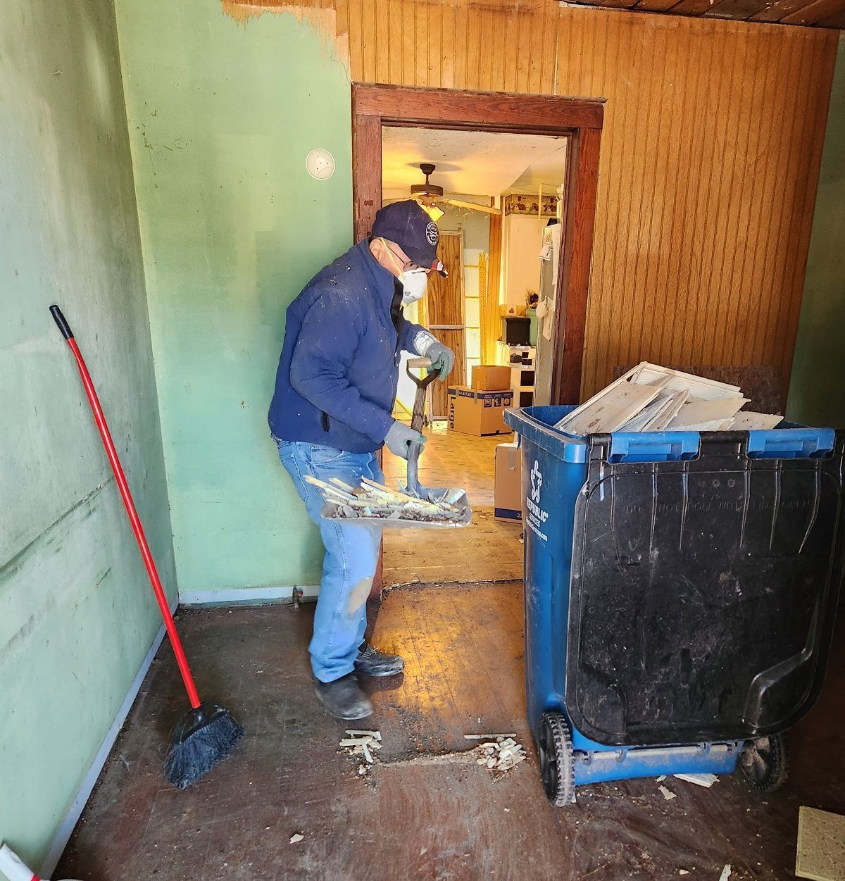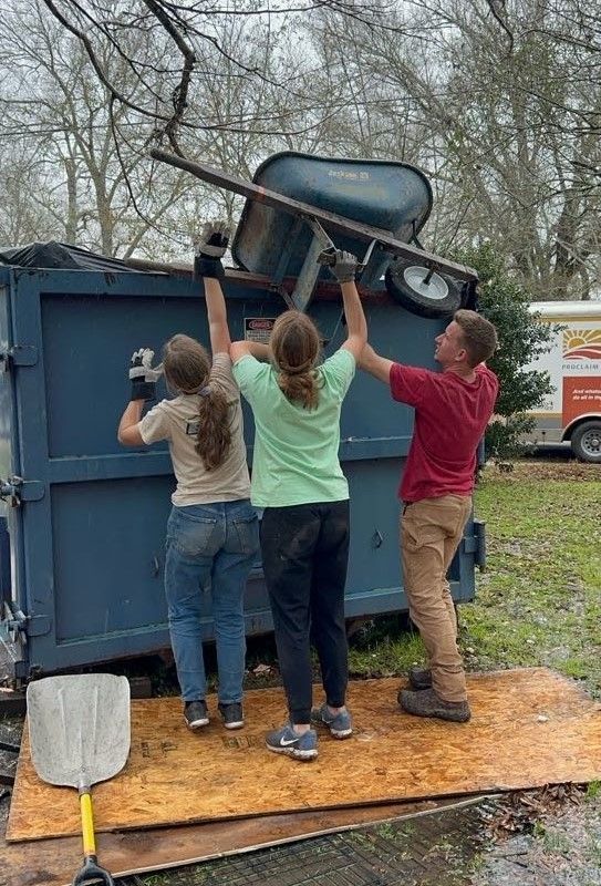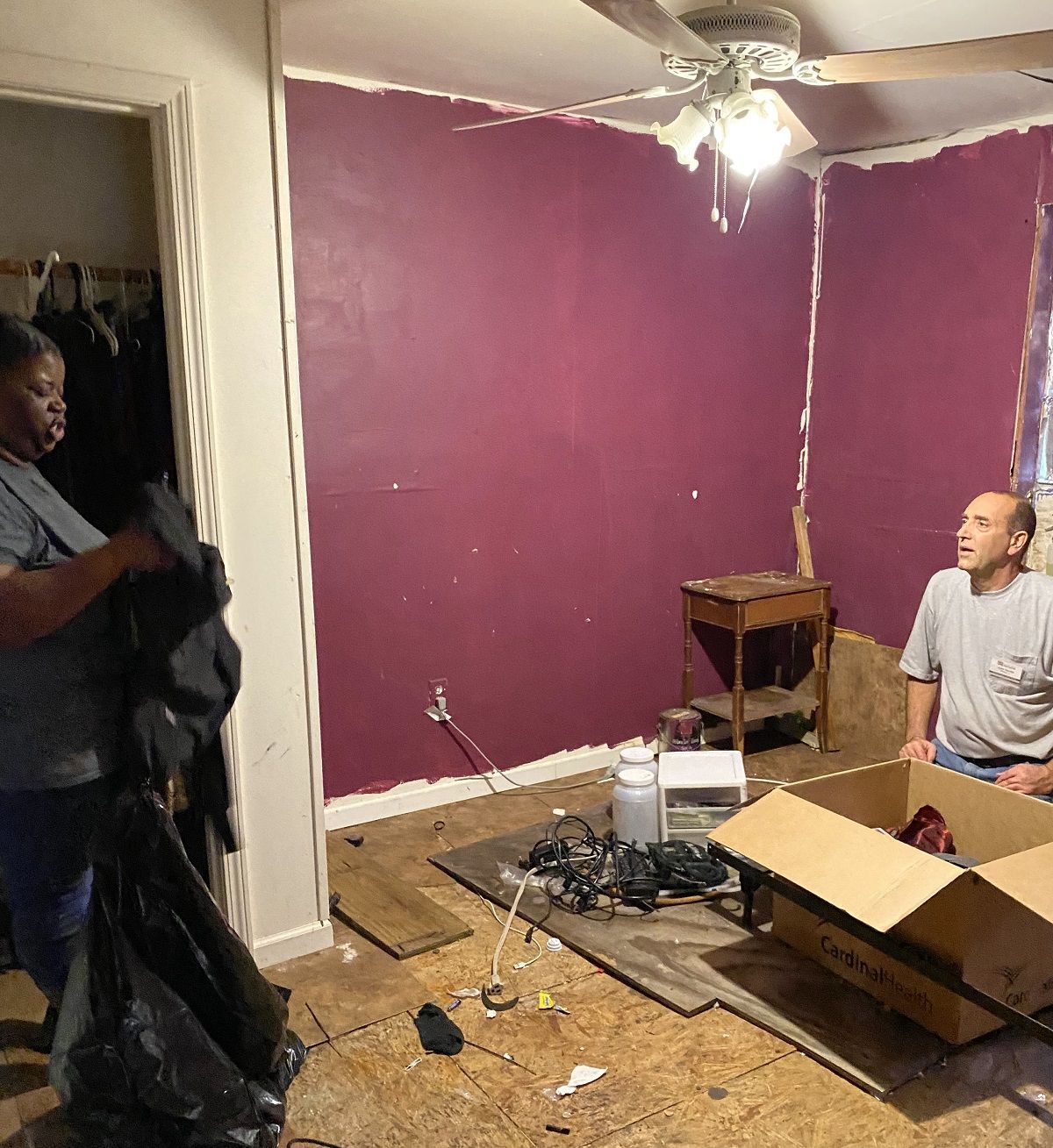 Volunteers removing material from Rosa’s house and placing it in the dumpster