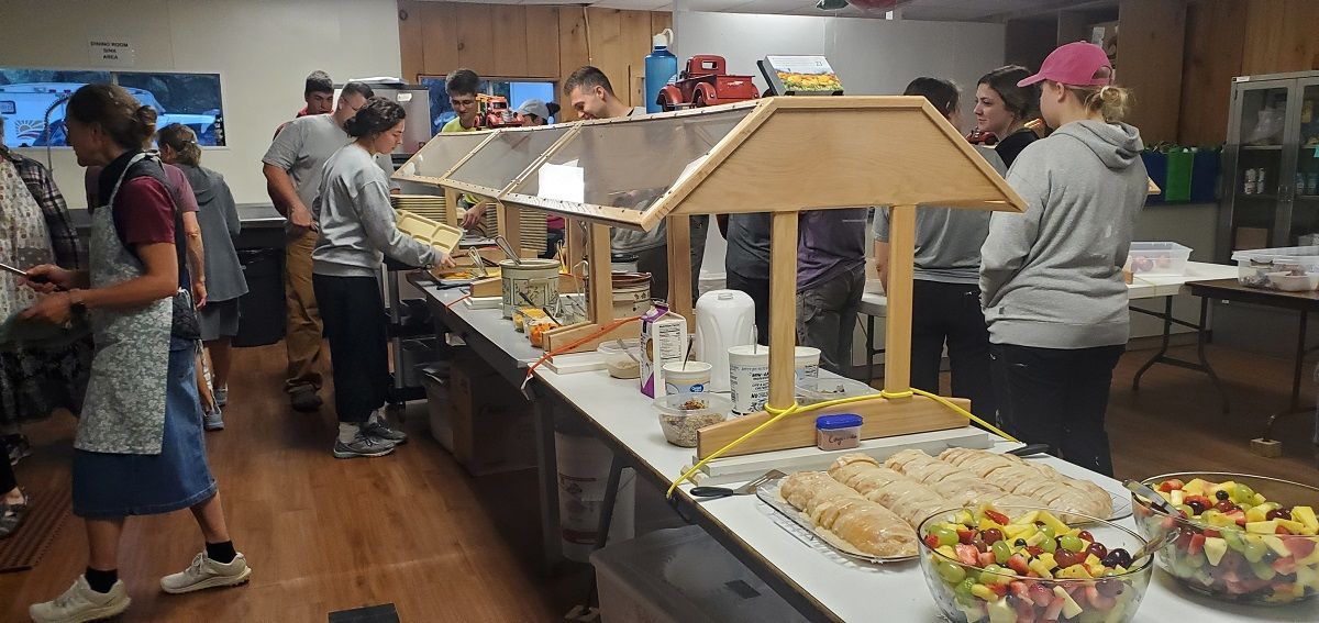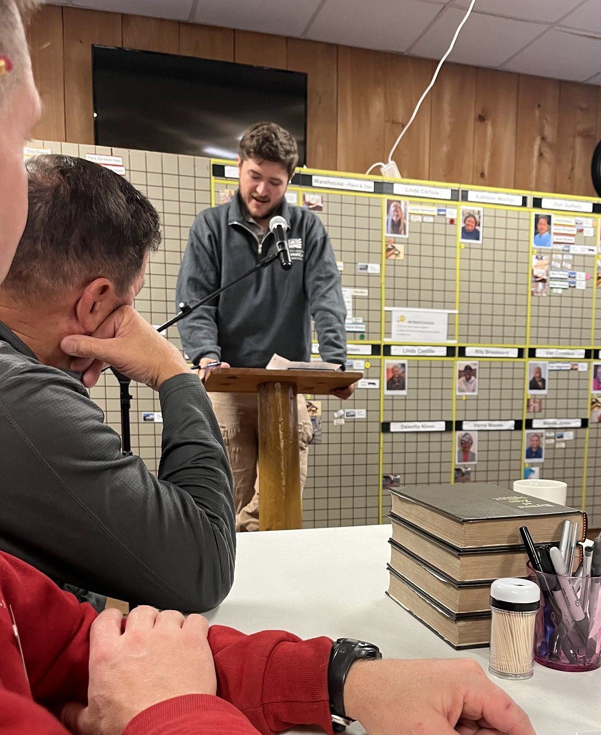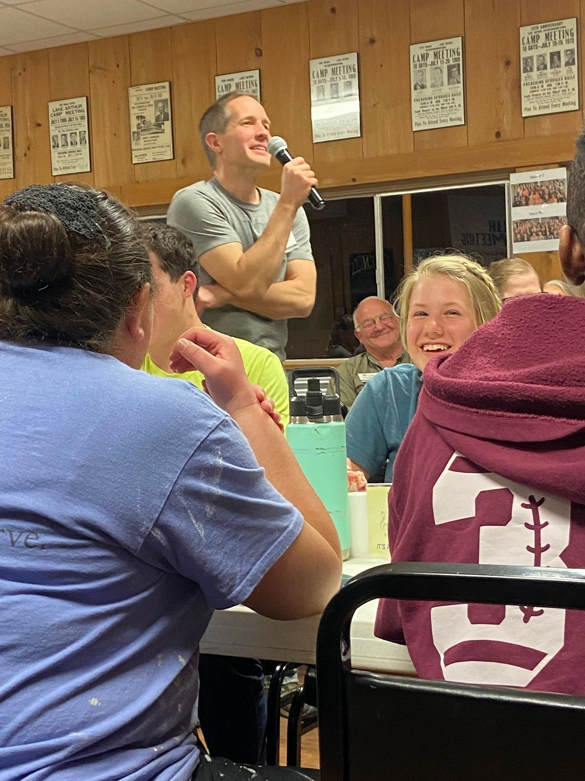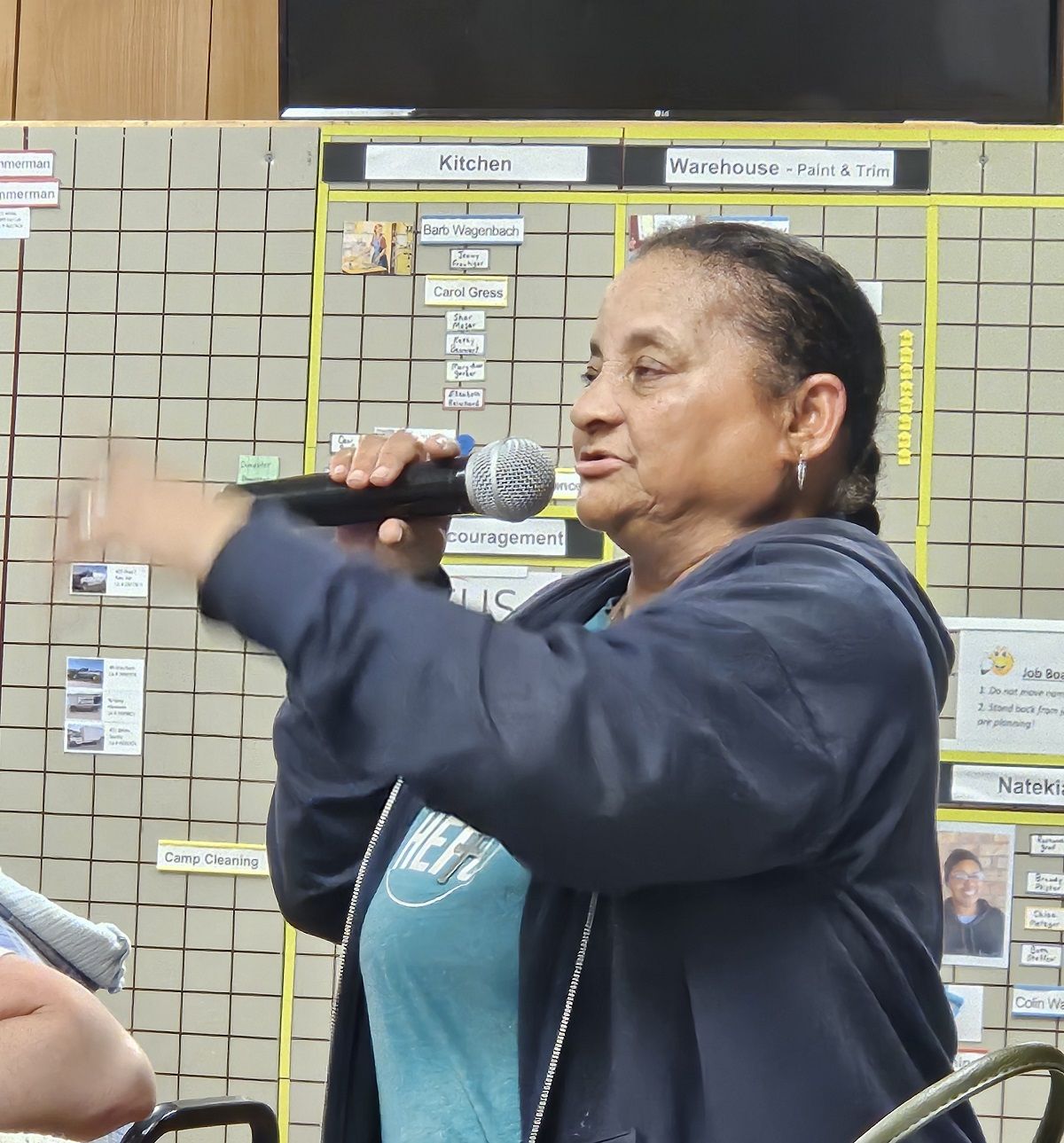 Miss Wanda expressing her thoughts to the volunteers after supper