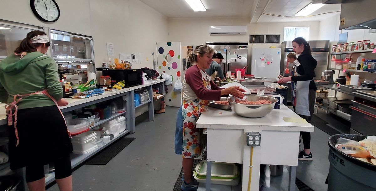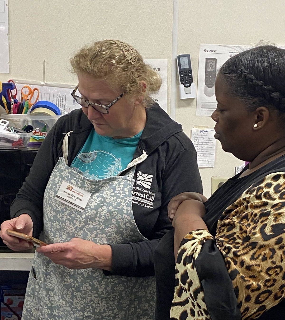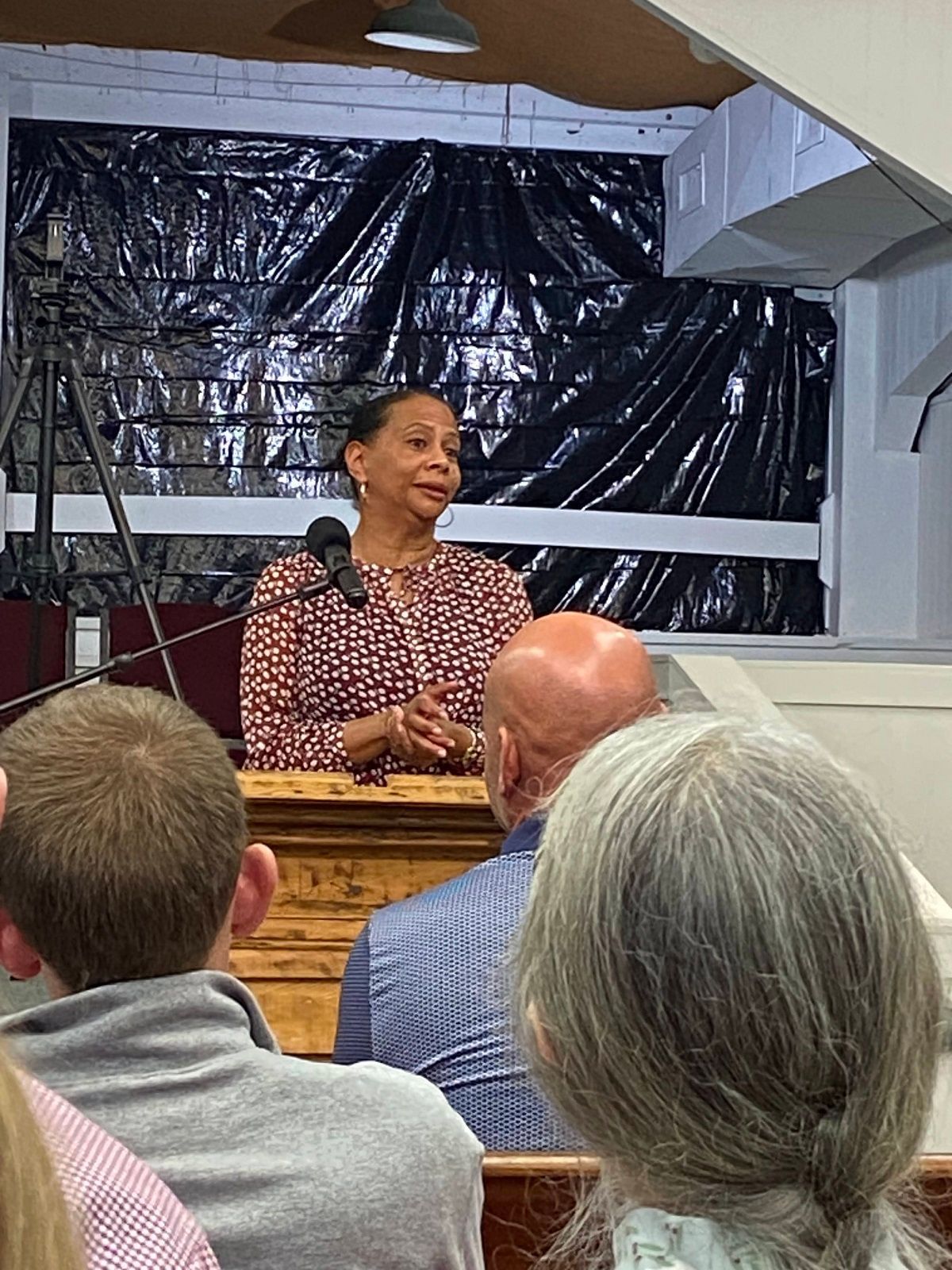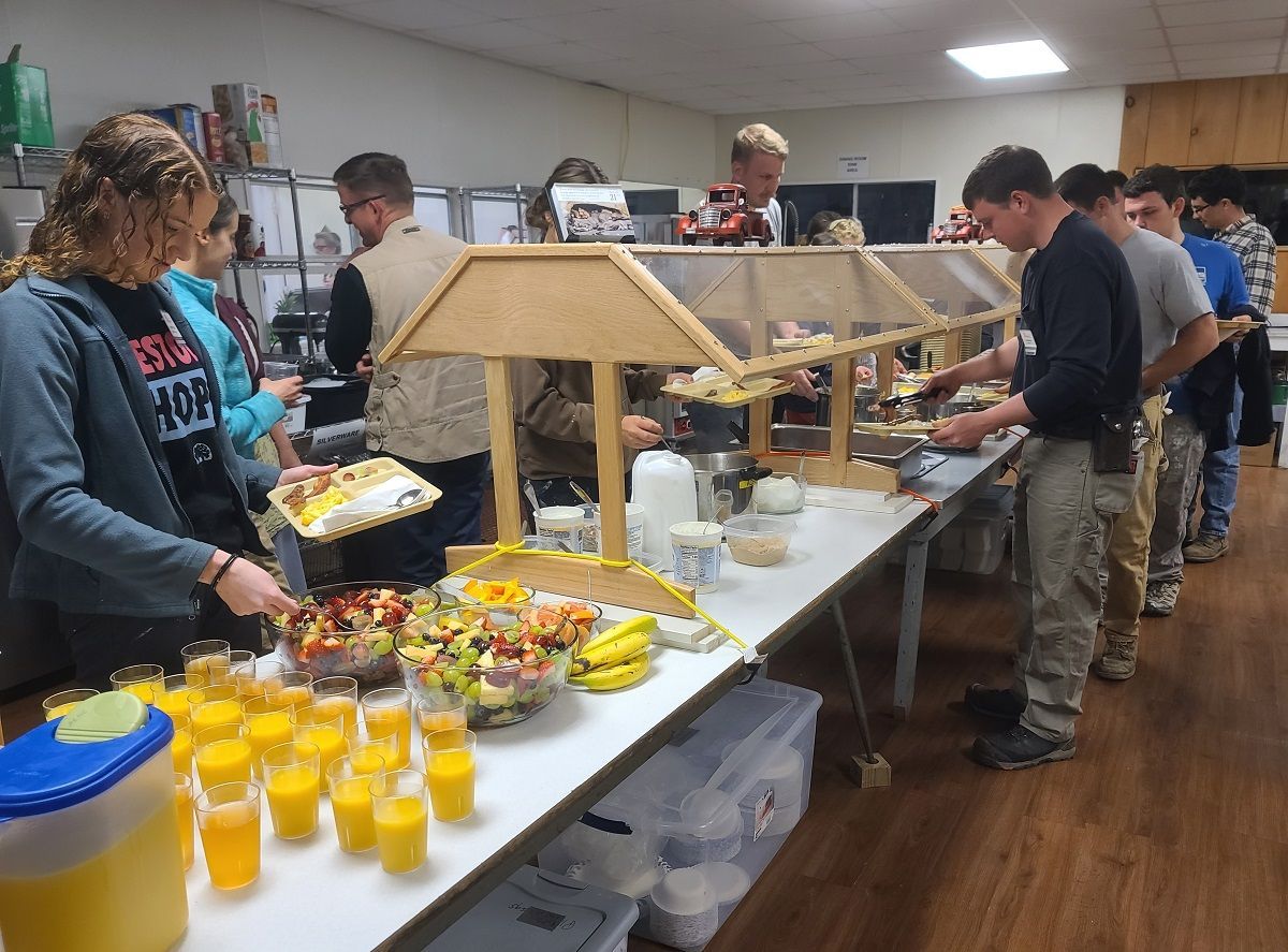 Miss Wanda expressing her thoughts to the volunteers after supper