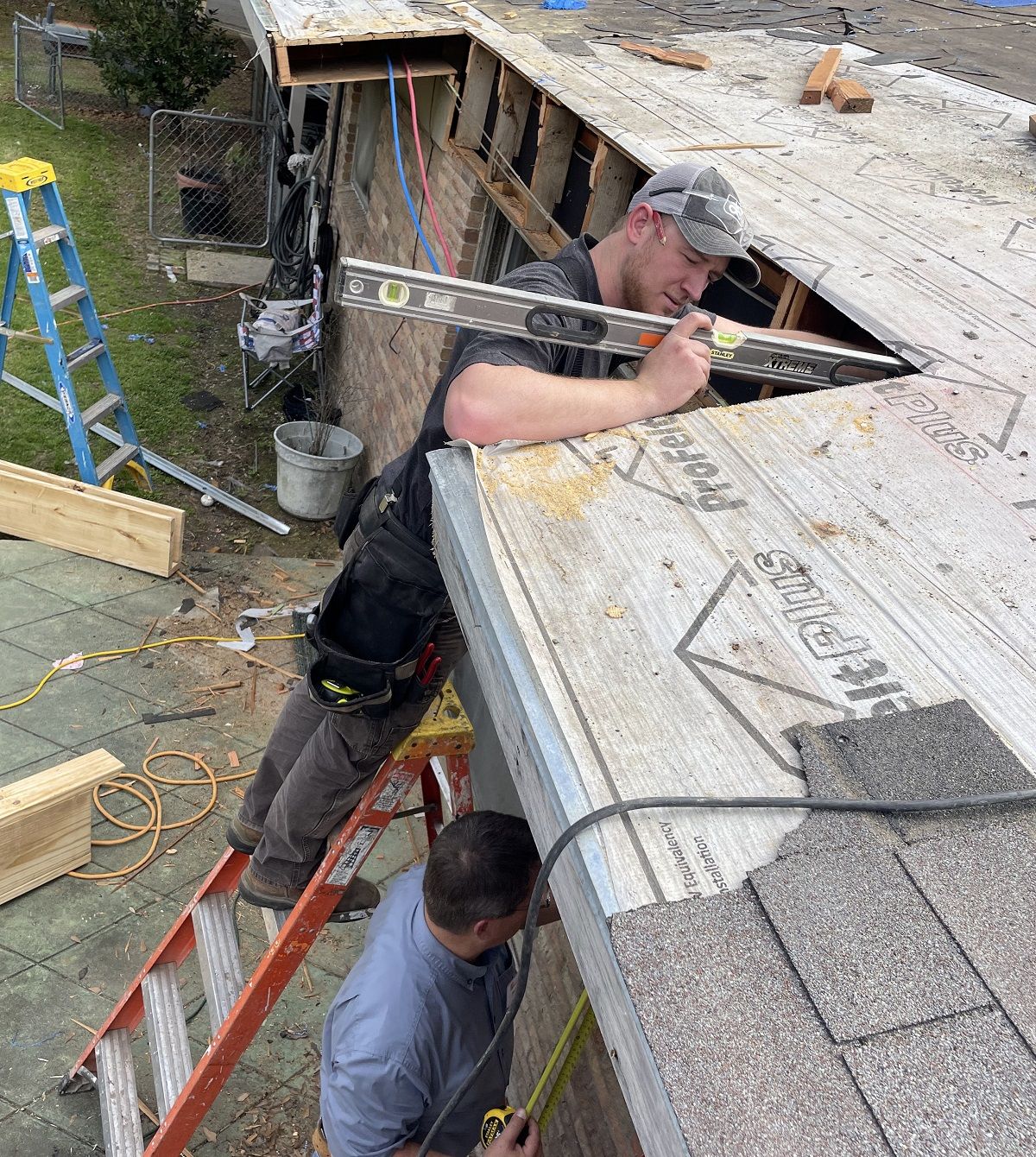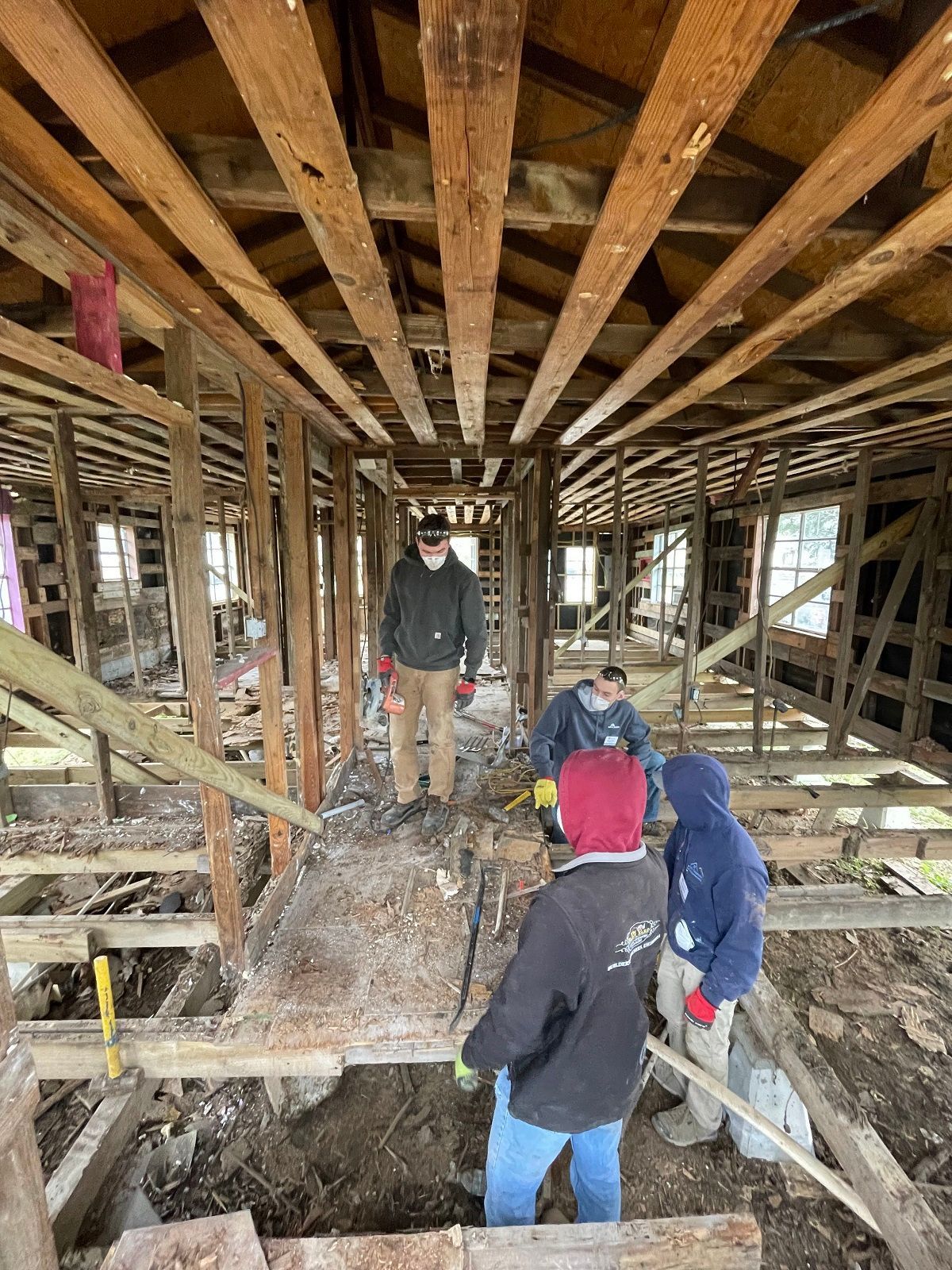 Volunteers trying to decide what the next steps are on Rosa’s roof