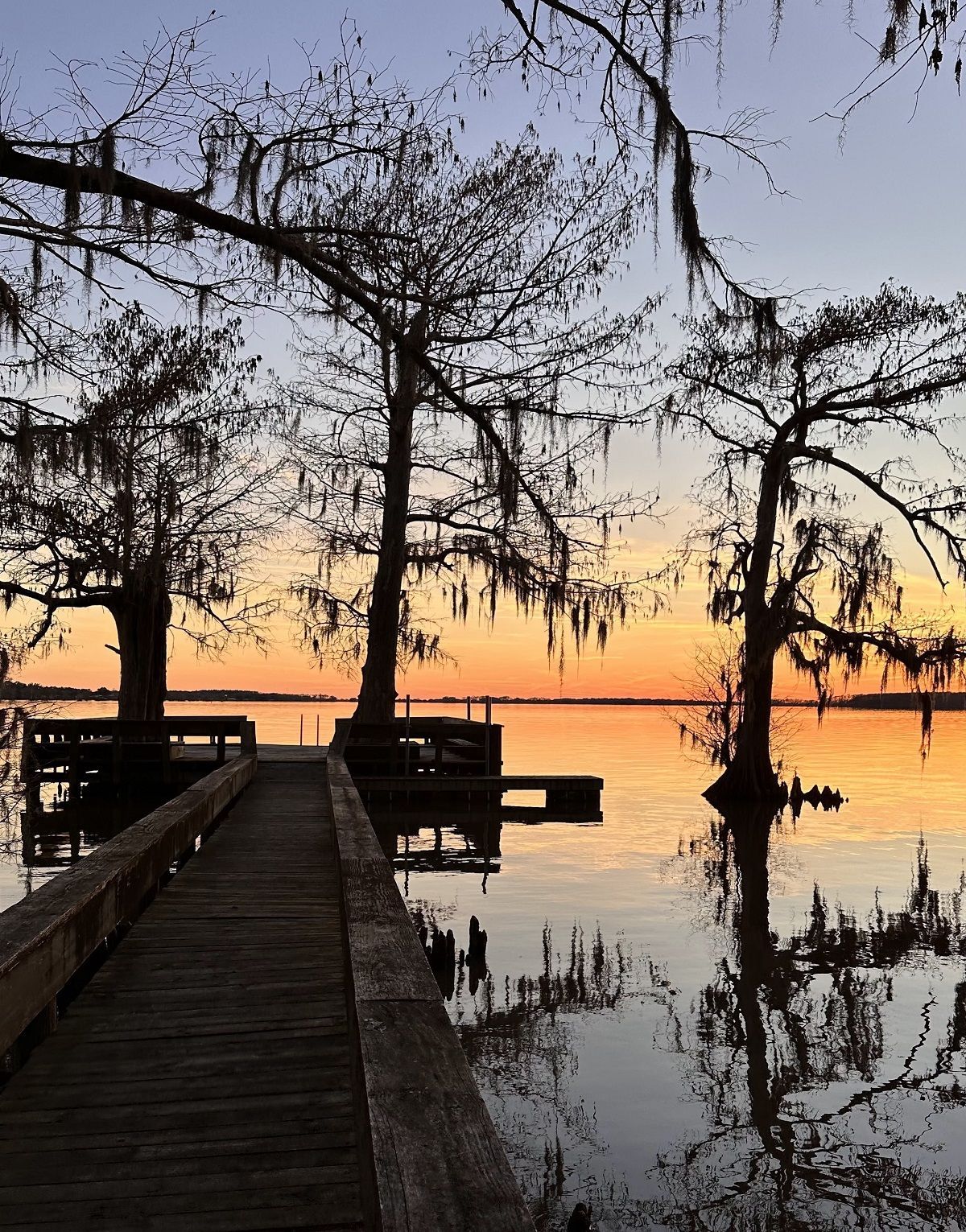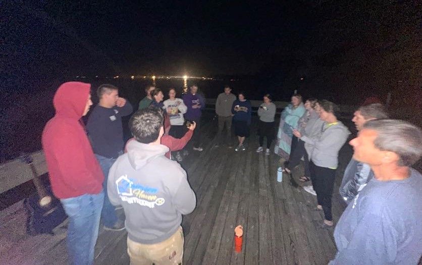 Volunteers enjoying the nice weather by singing on the dock in the evening