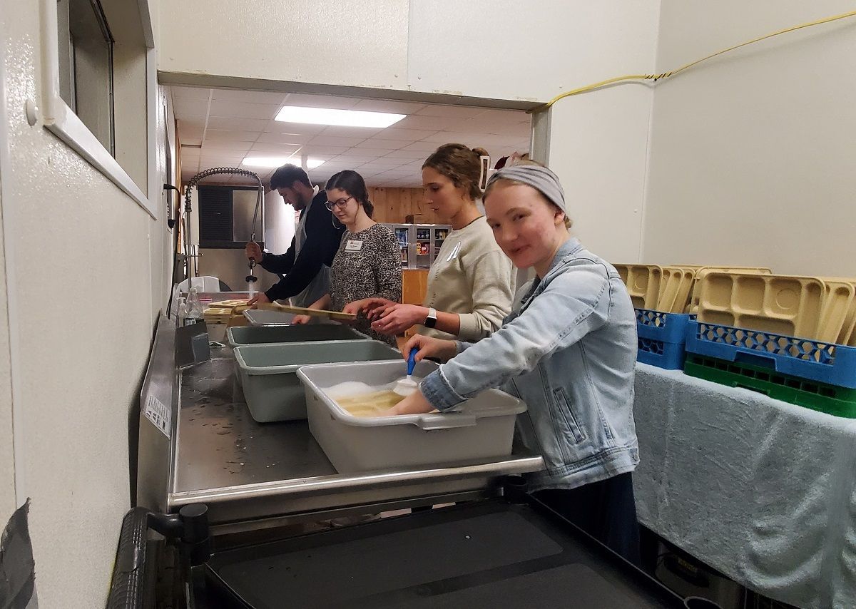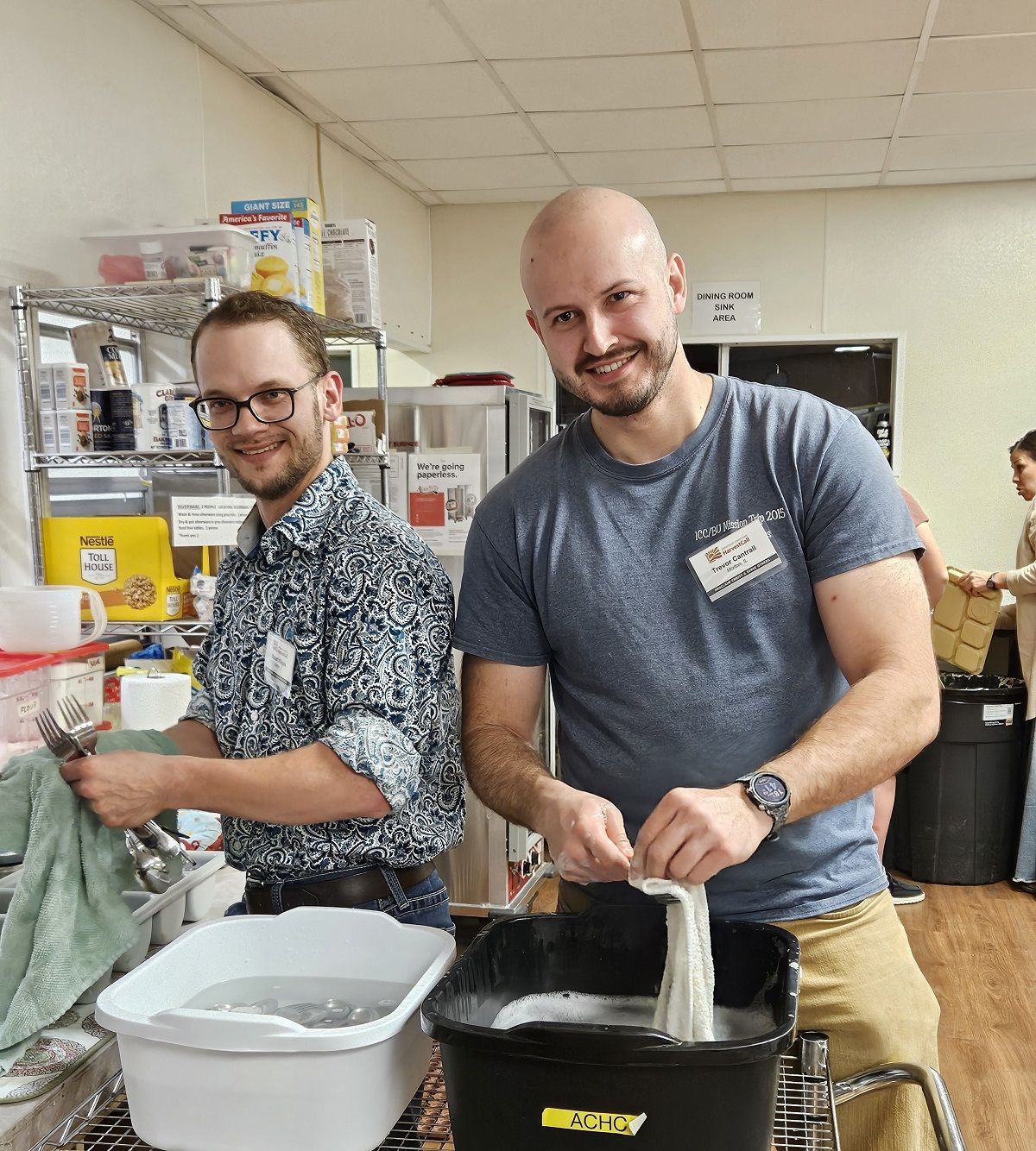 Kitchen ladies touring the homes and taking root beer floats to the volunteers