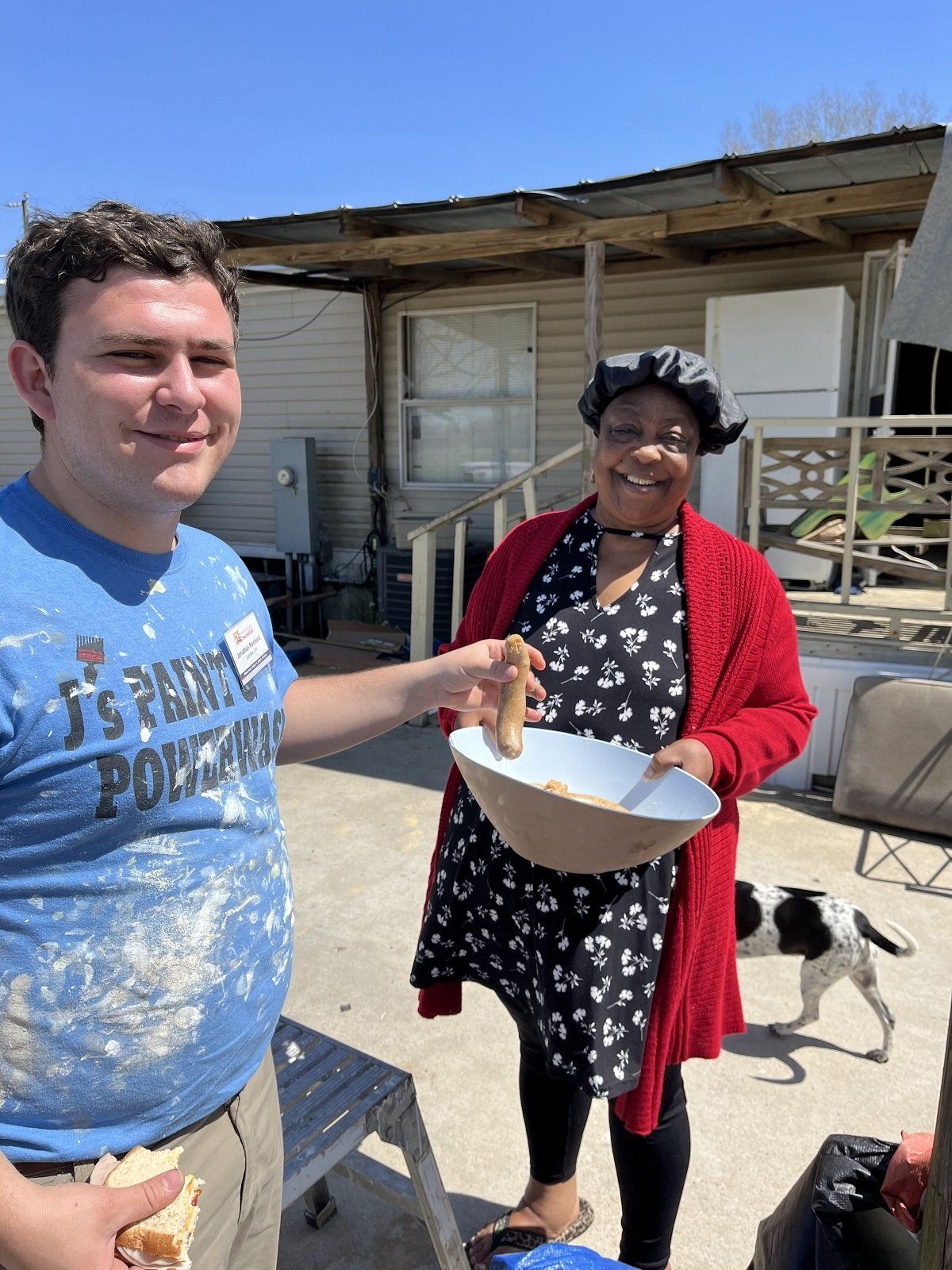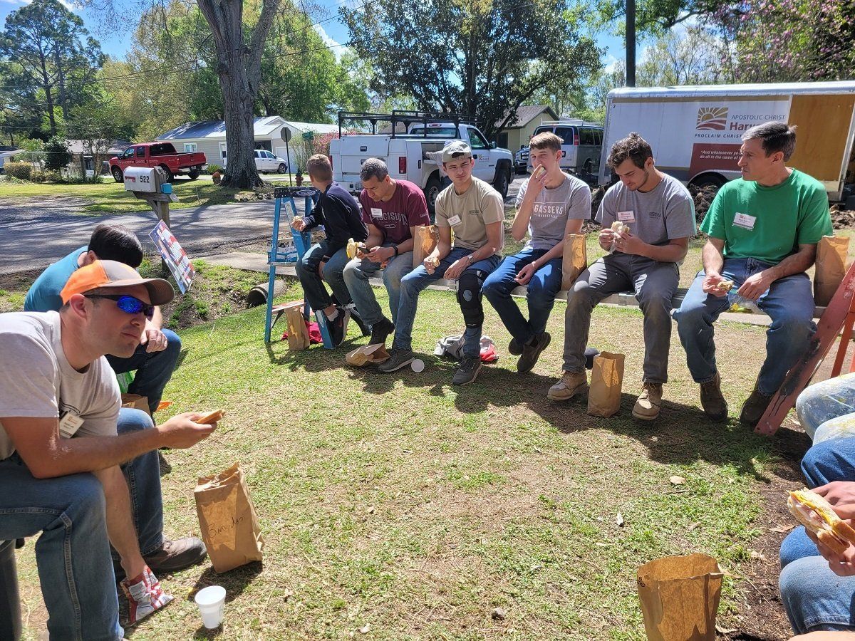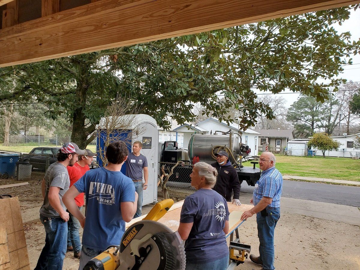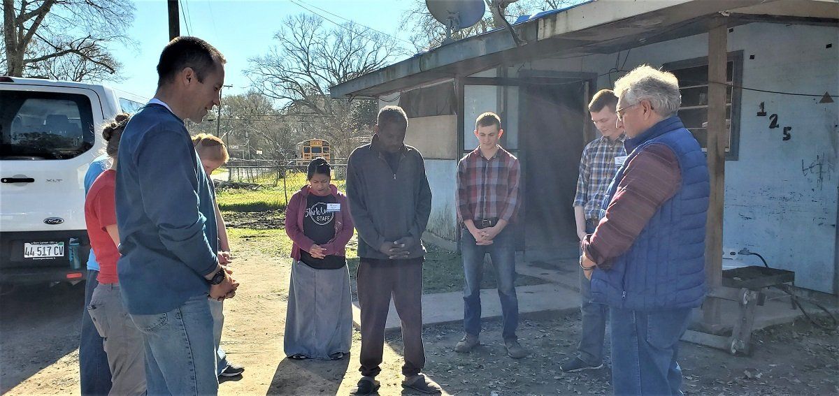 Port-a-potty worker sharing his testimony with the volunteers at Wanda’s house