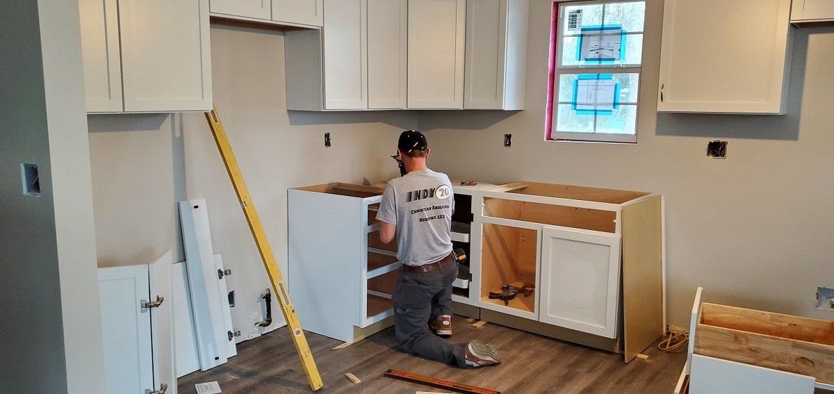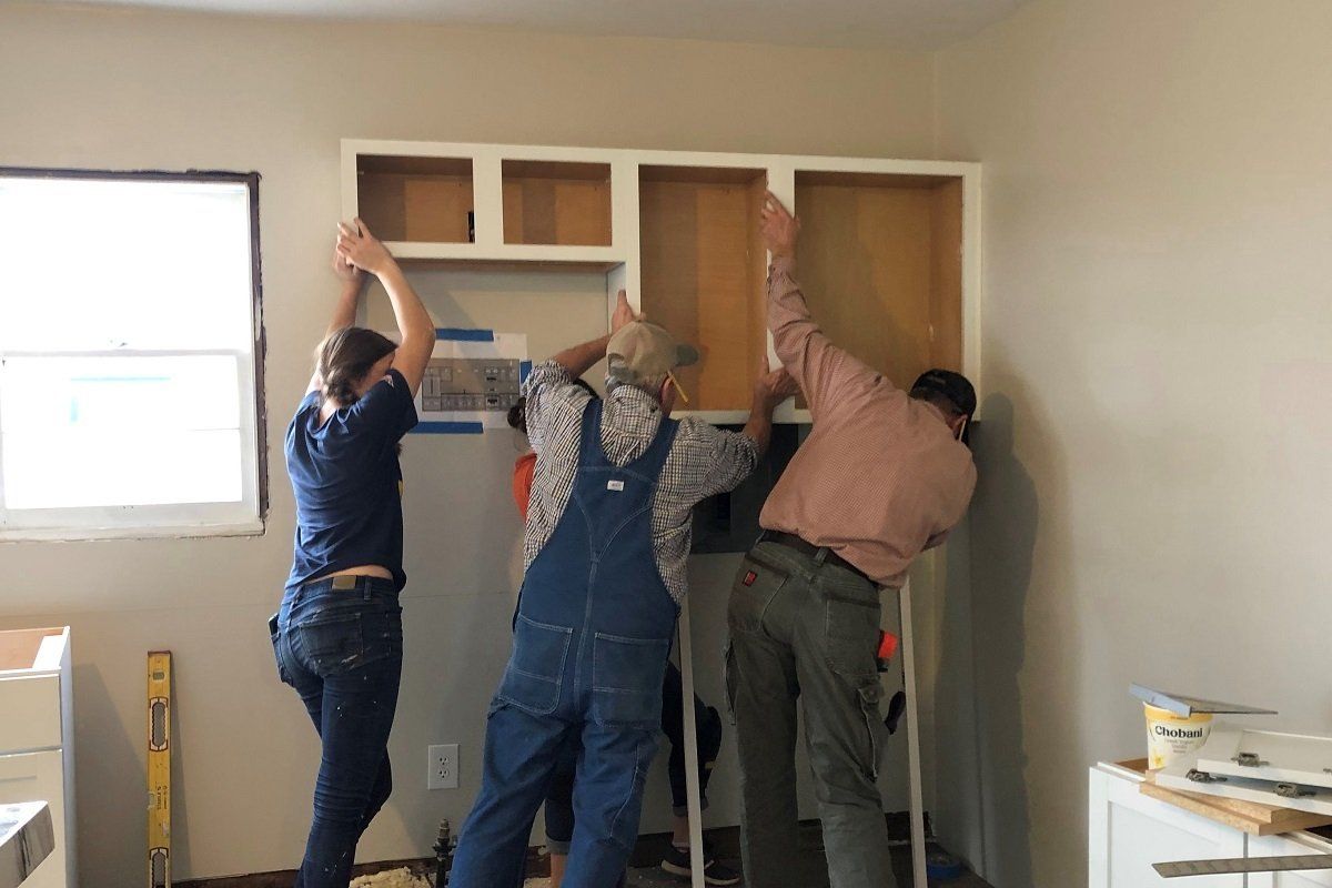 Kitchen cabinets being installed at Jacqueline’s house