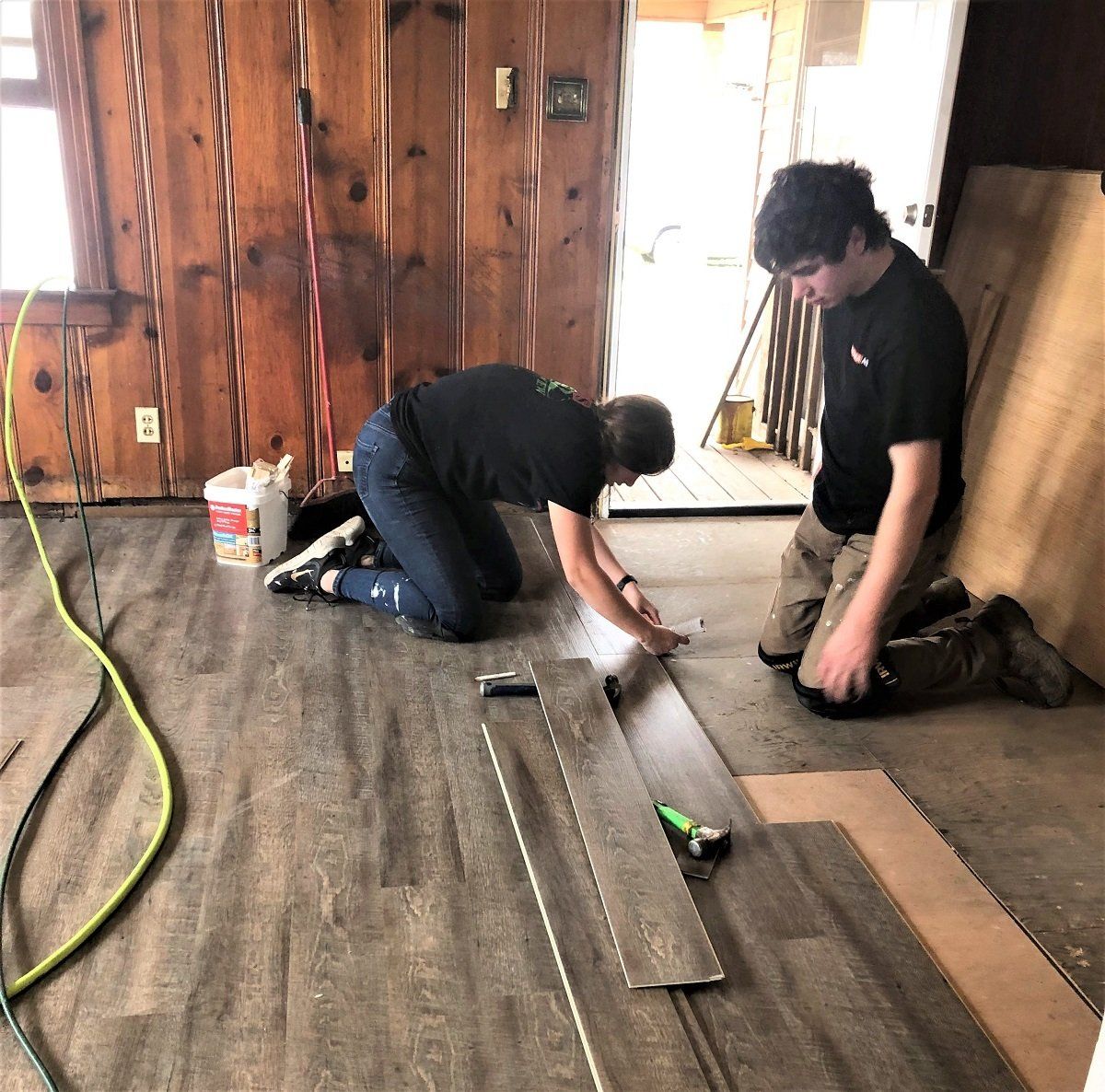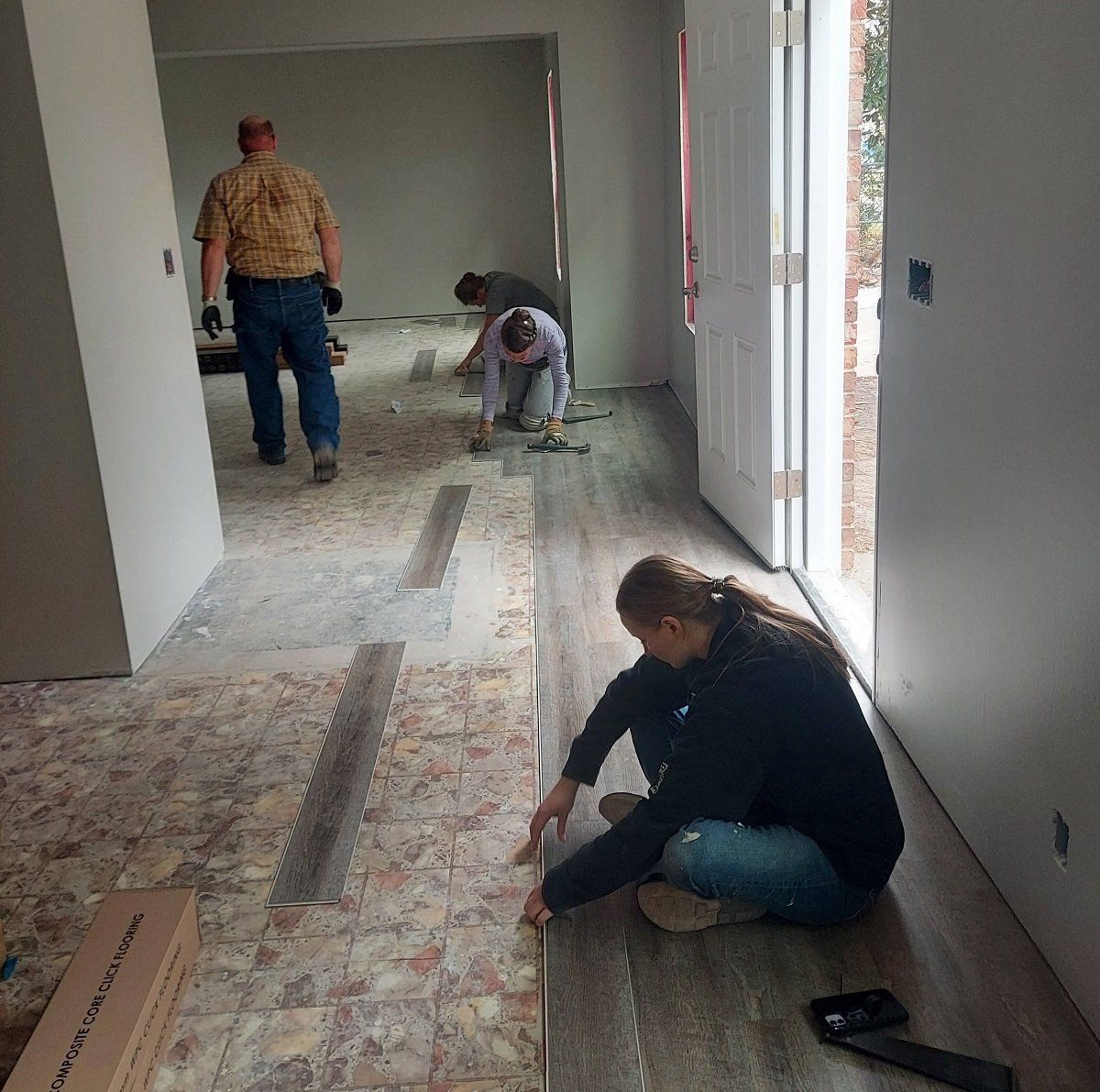 Flooring being installed a Gwen’s house