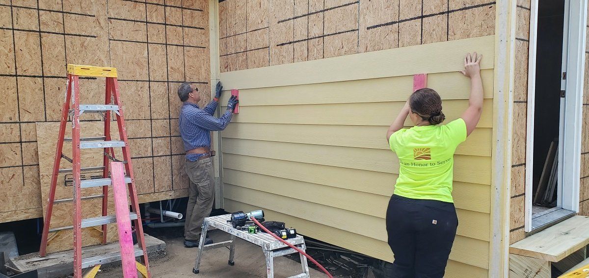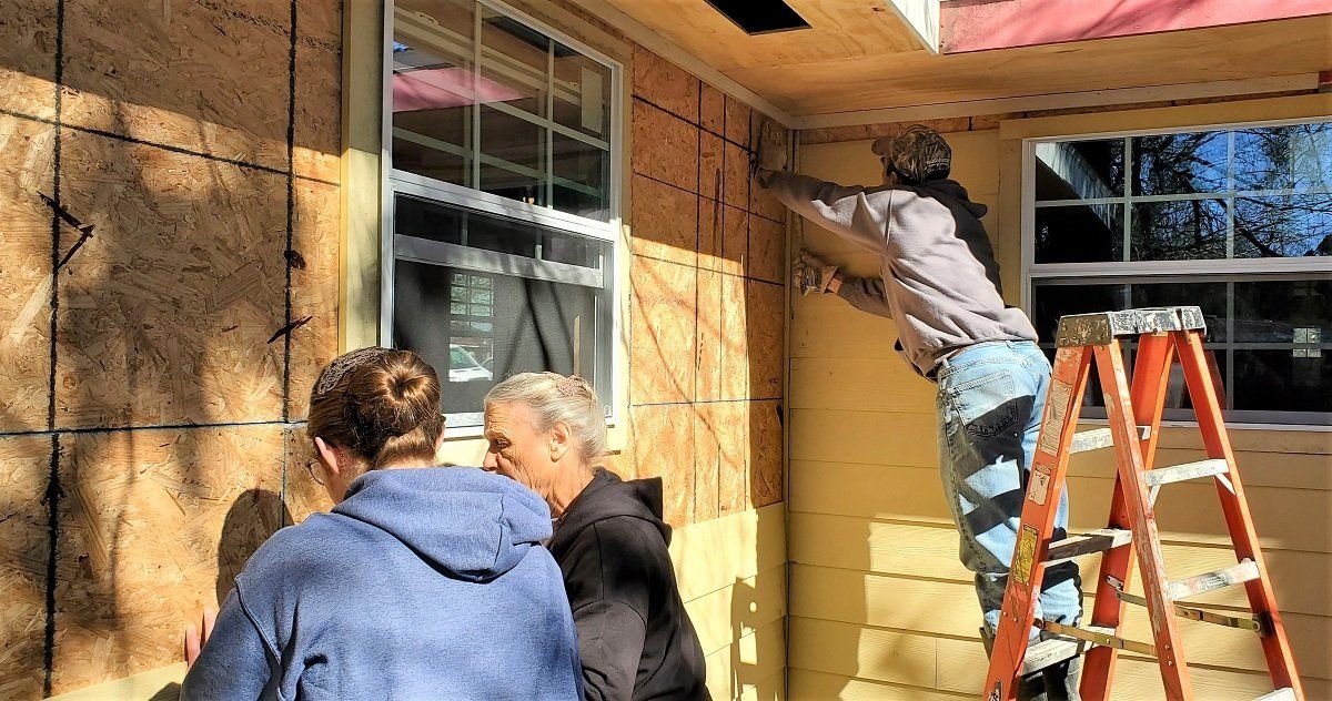 Exterior siding being installed at Betty’s house