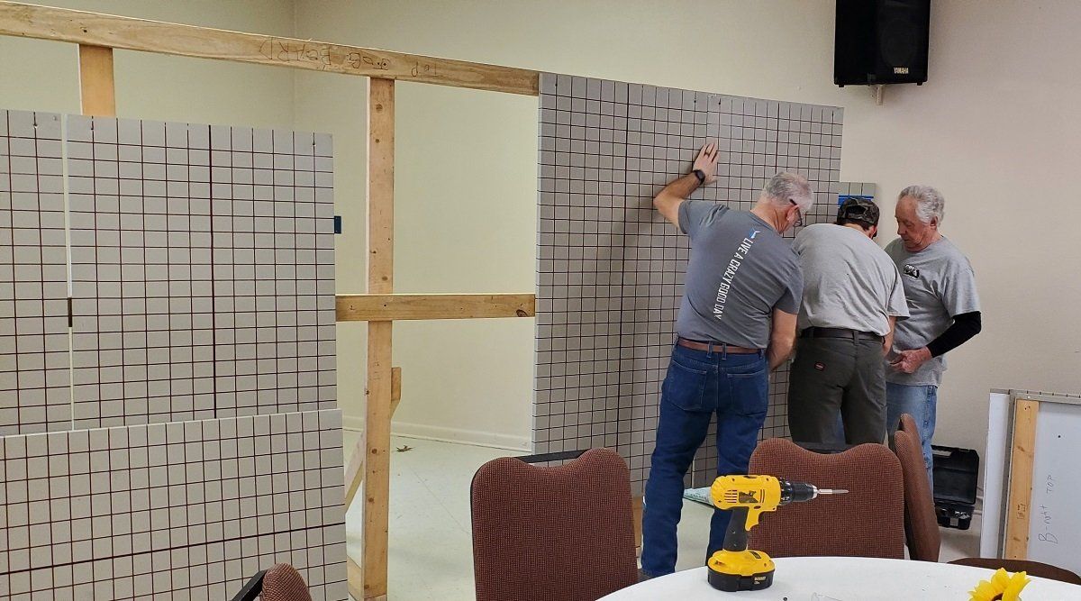 Assembling new grills donated for grilling meat