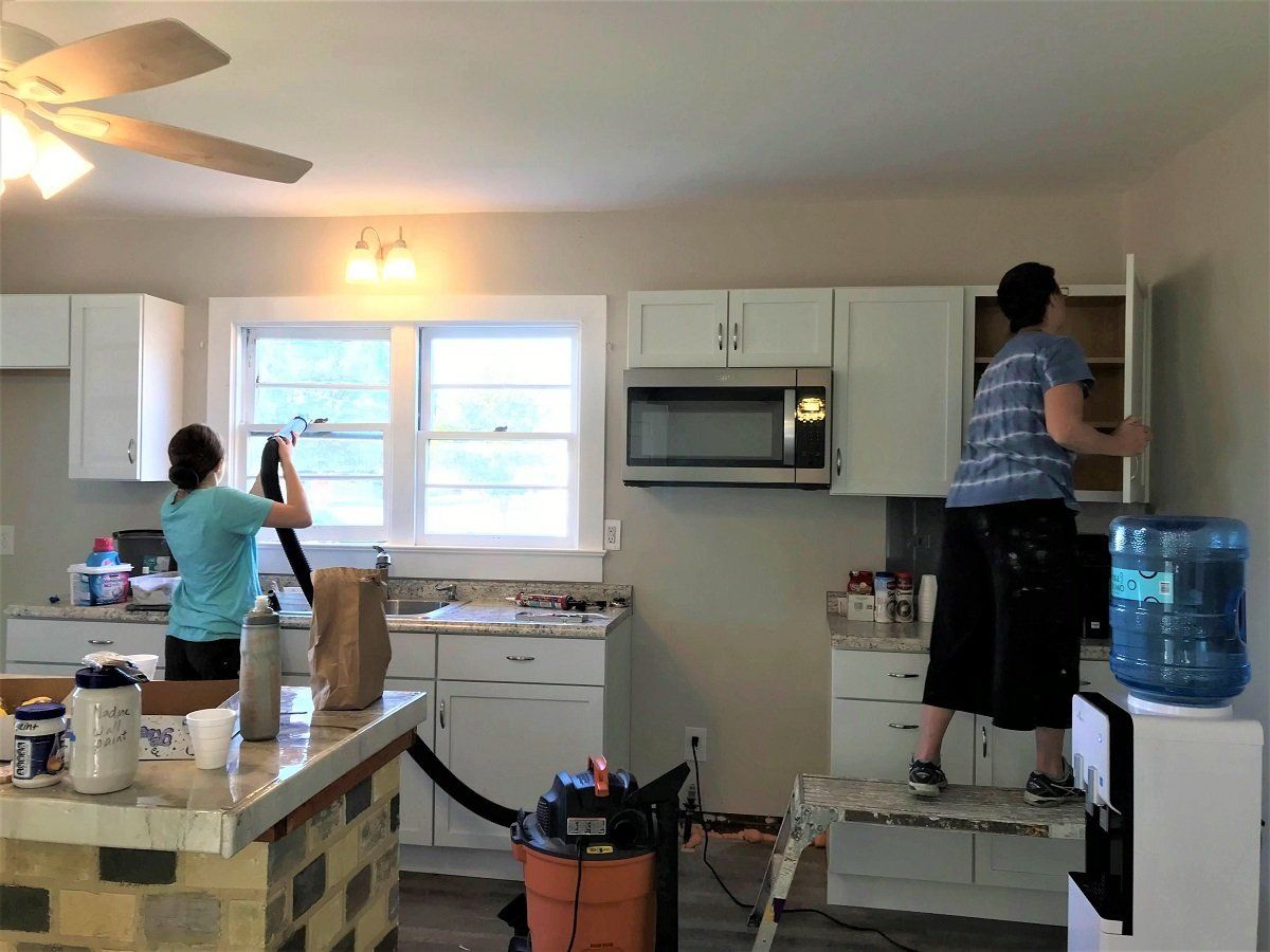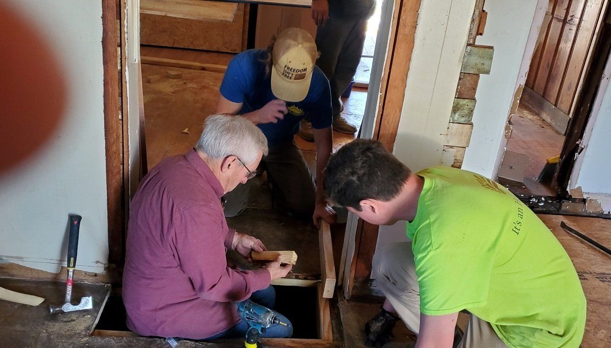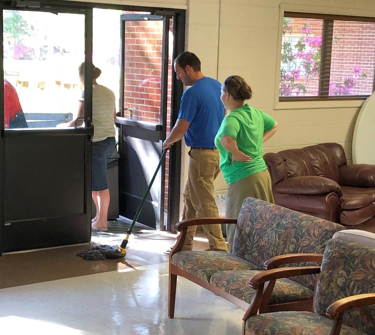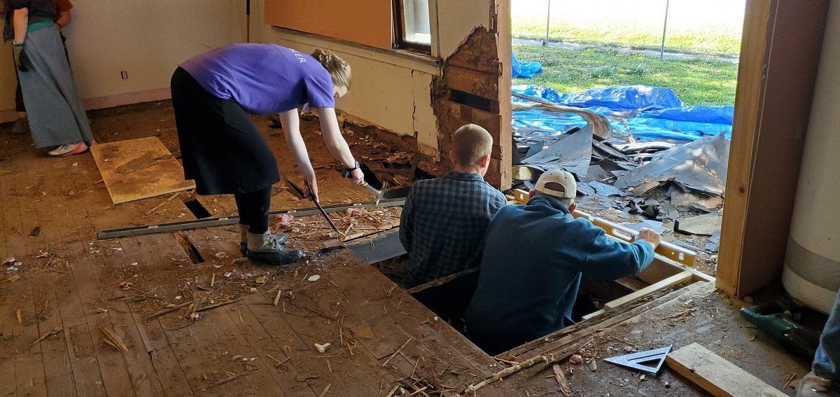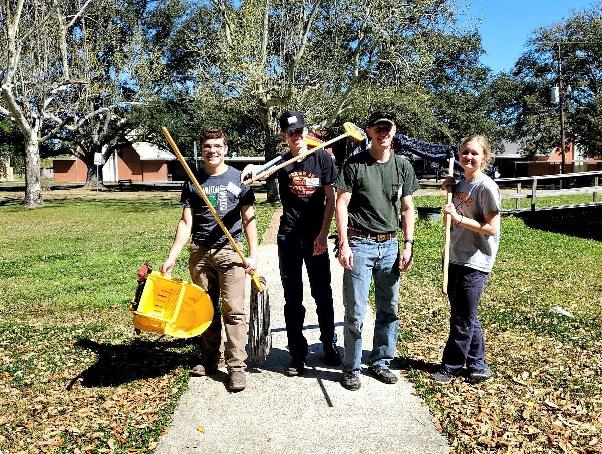 Clean up crew helping at Acadian Baptist Camp