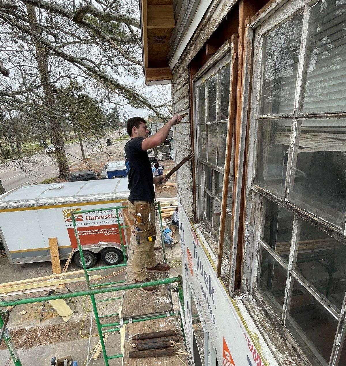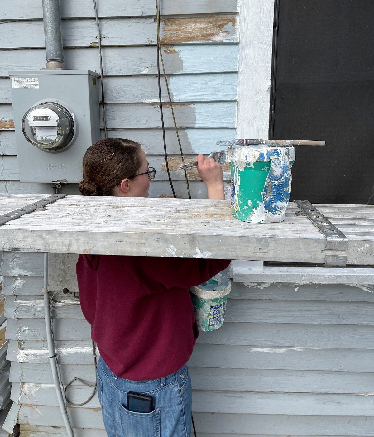 Scraping in preparation for outside painting at Nadine’s house