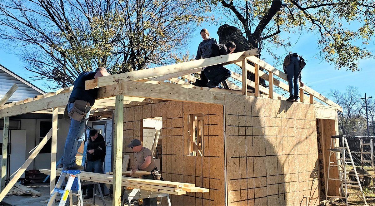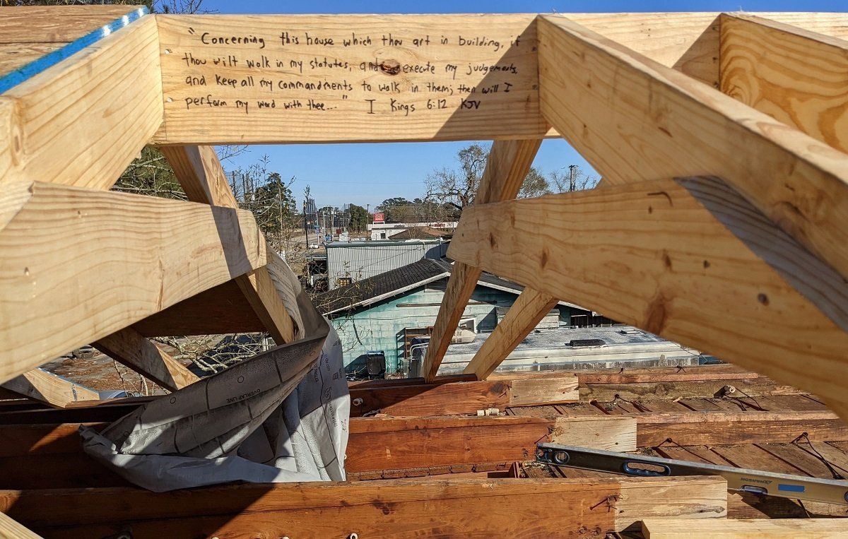 Beginning a new roof structure for Brett and Markisha