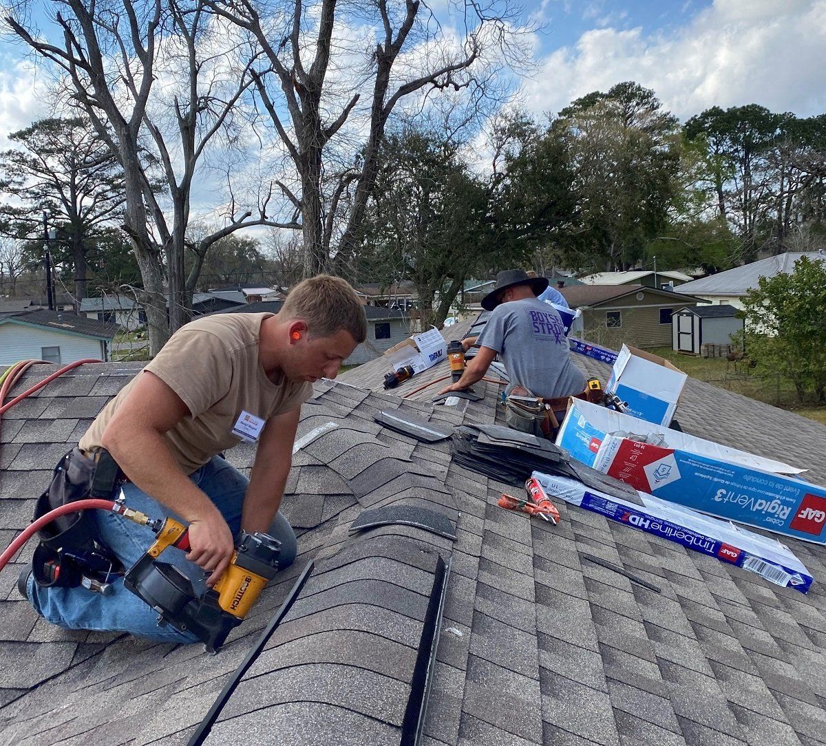 Getting shingles up on the roof at Wanda’s house
