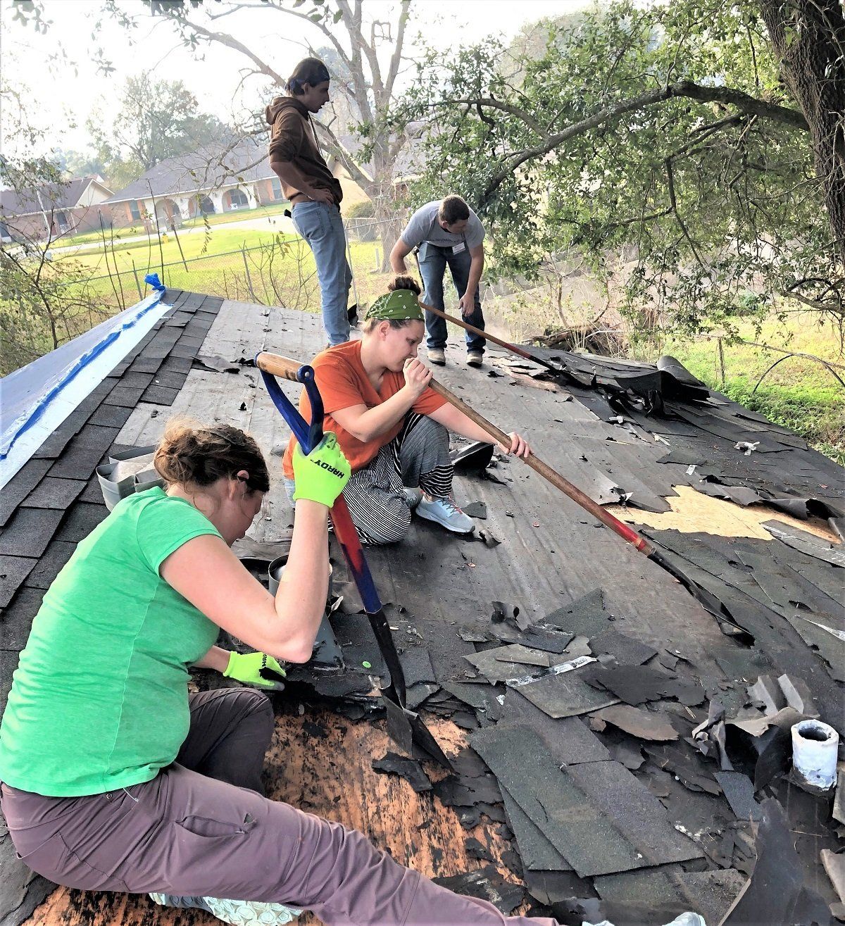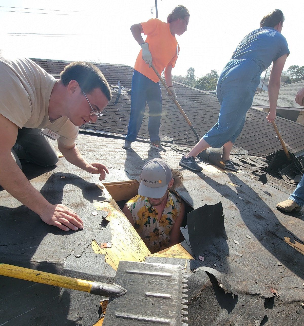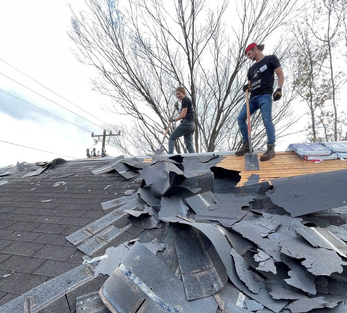 Tear off of the severely damaged roof of Trudy’s house