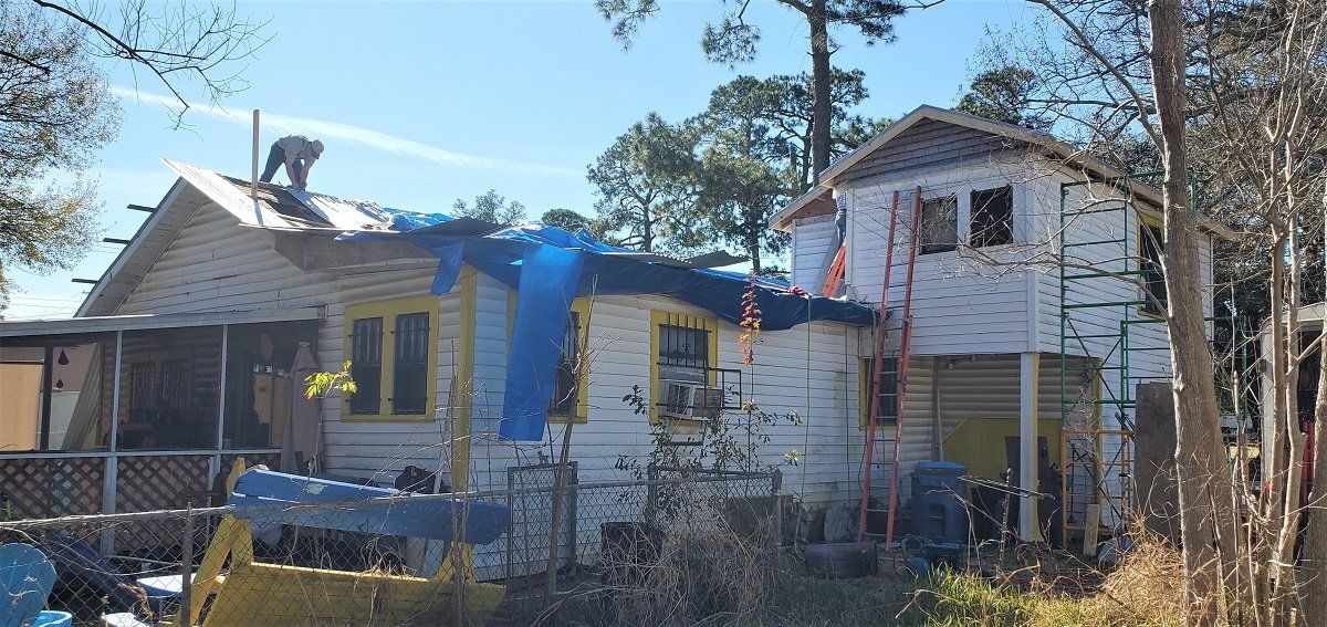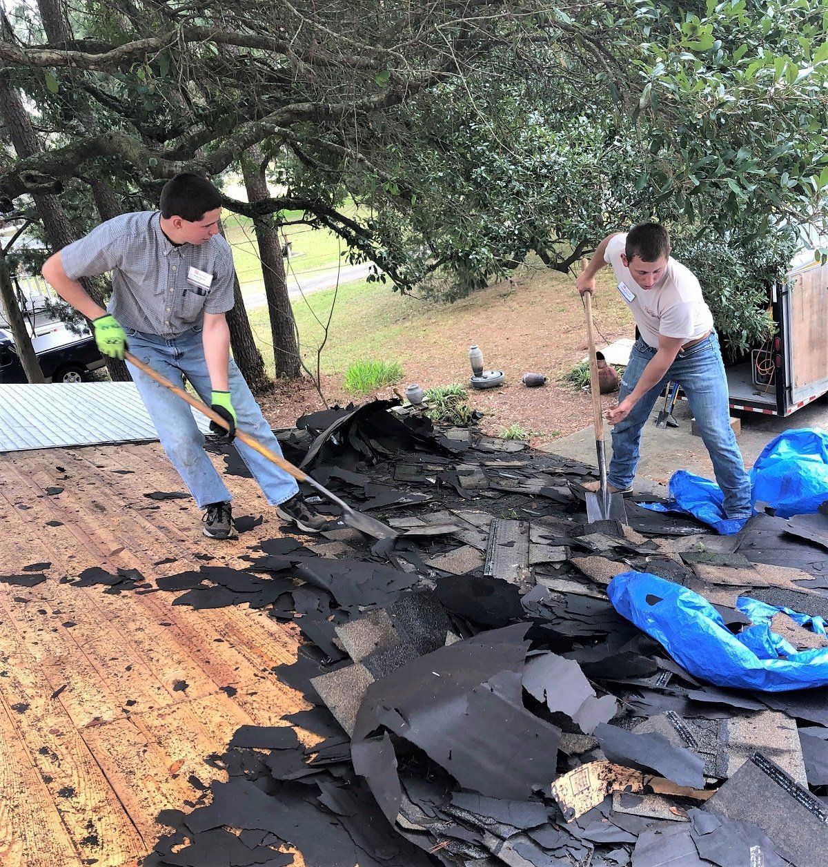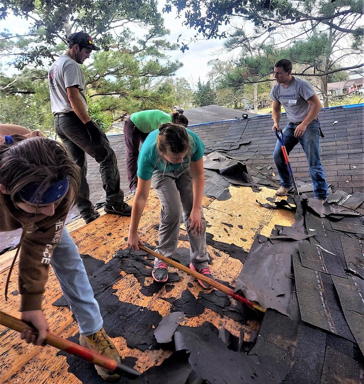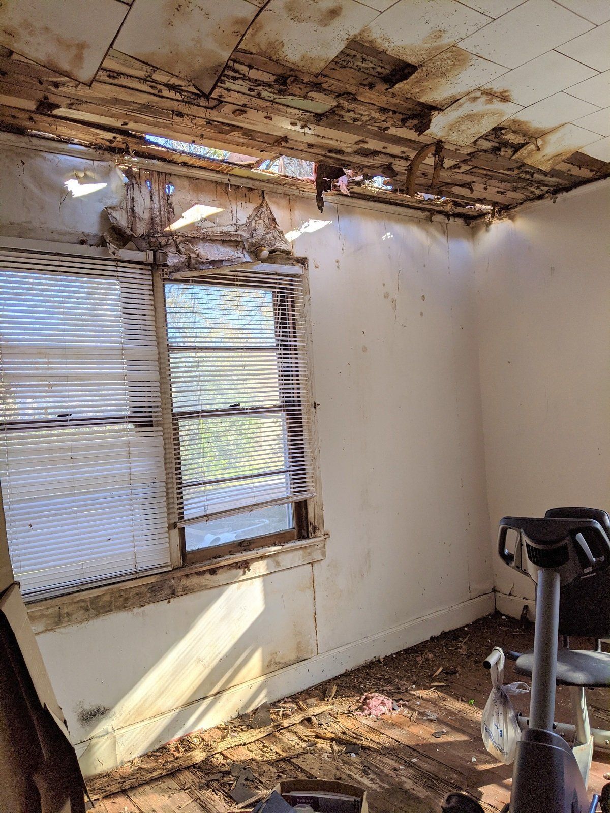 Tear off of the severely damaged roof of Trudy’s house