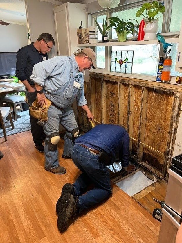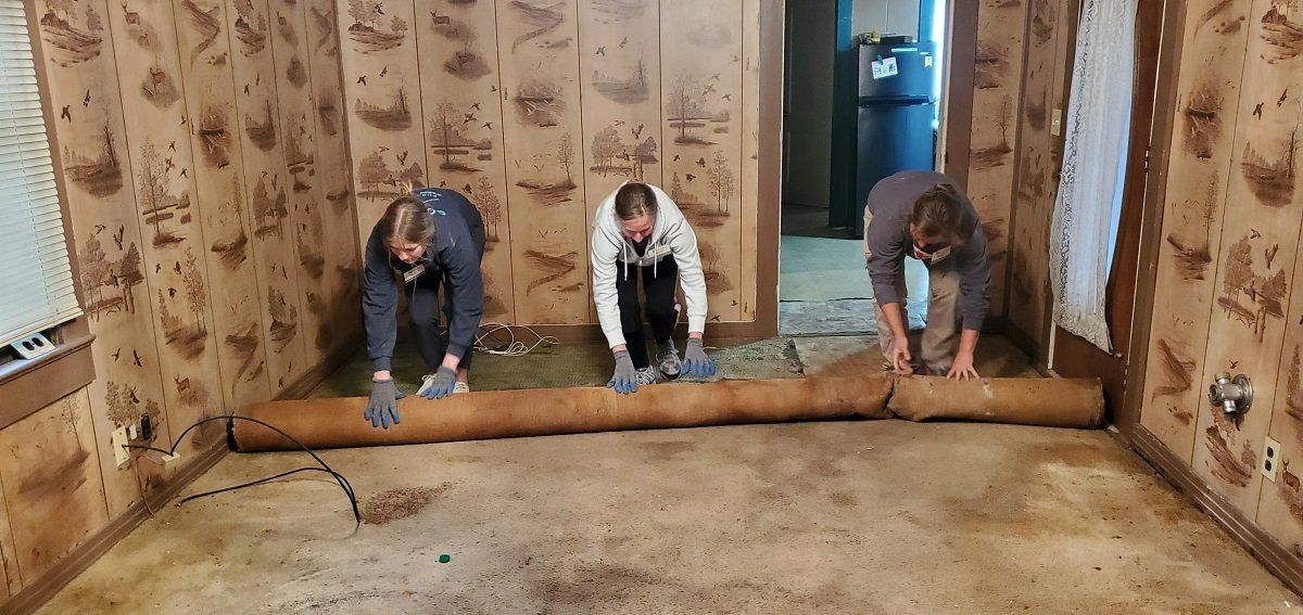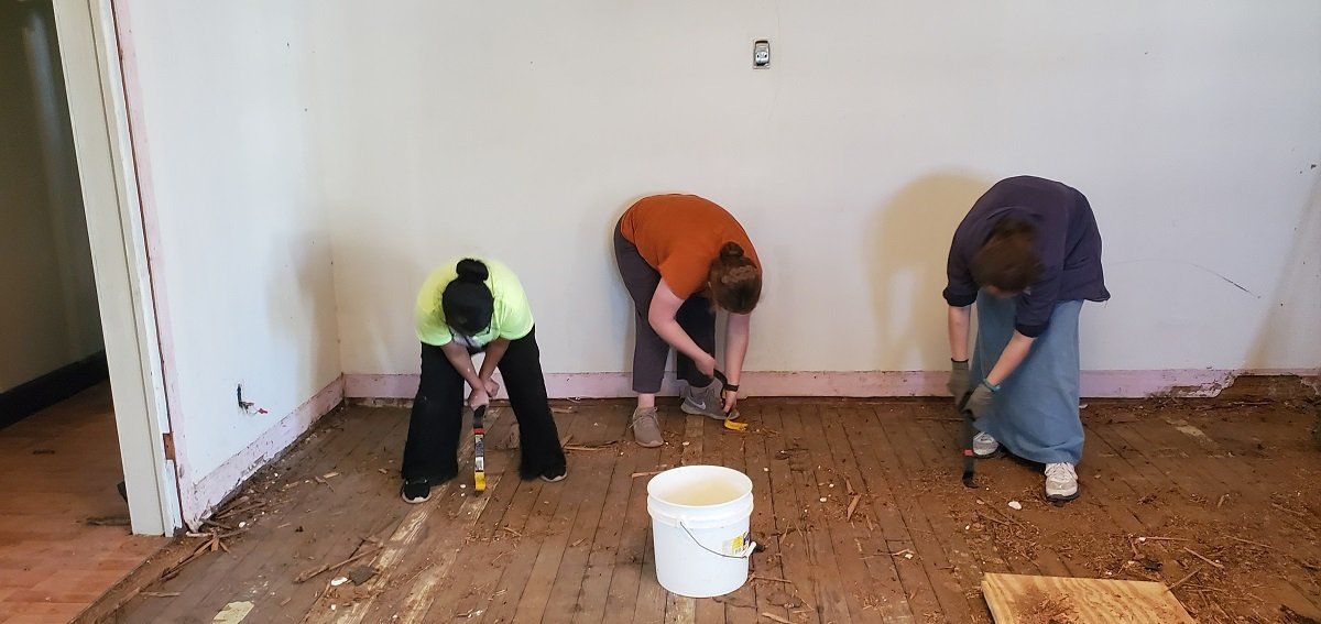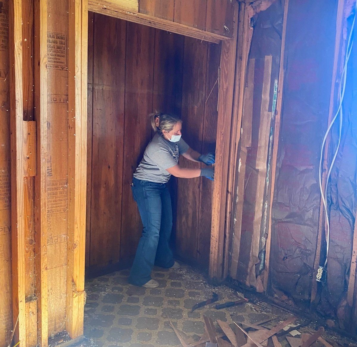 Removing deteriorated flooring at Nadine’s house