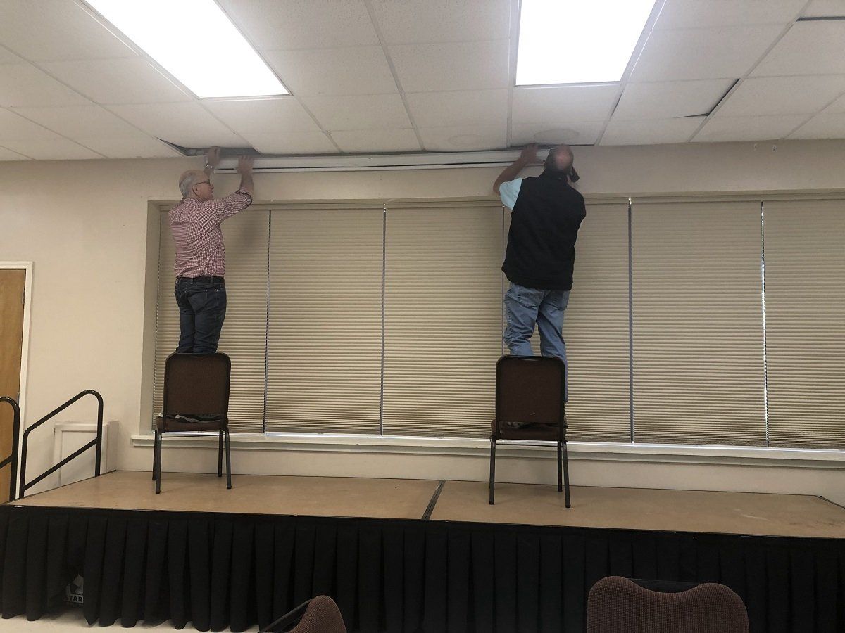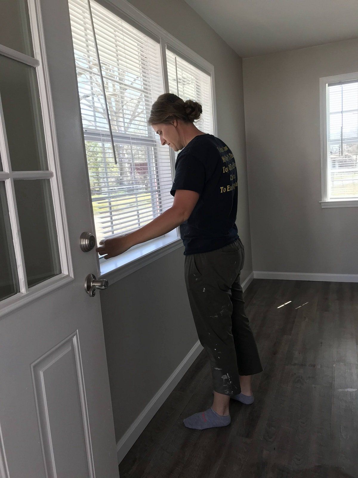 Mini blinds being installed at Betty’s house