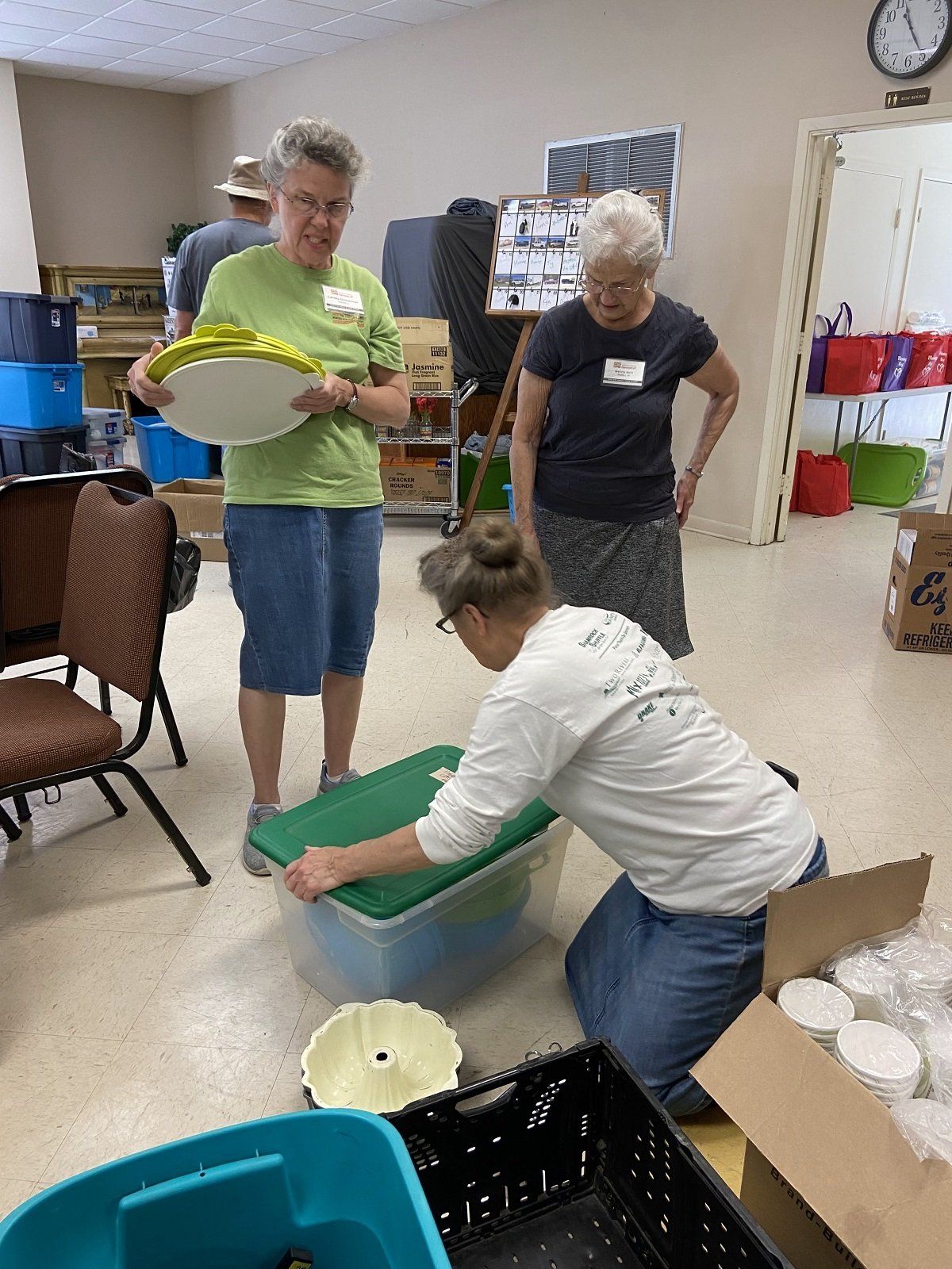 Boxing kitchen items before loading into the kitchen trailer