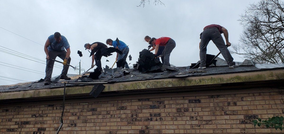 Beginning the reroofing job at Dora’s house