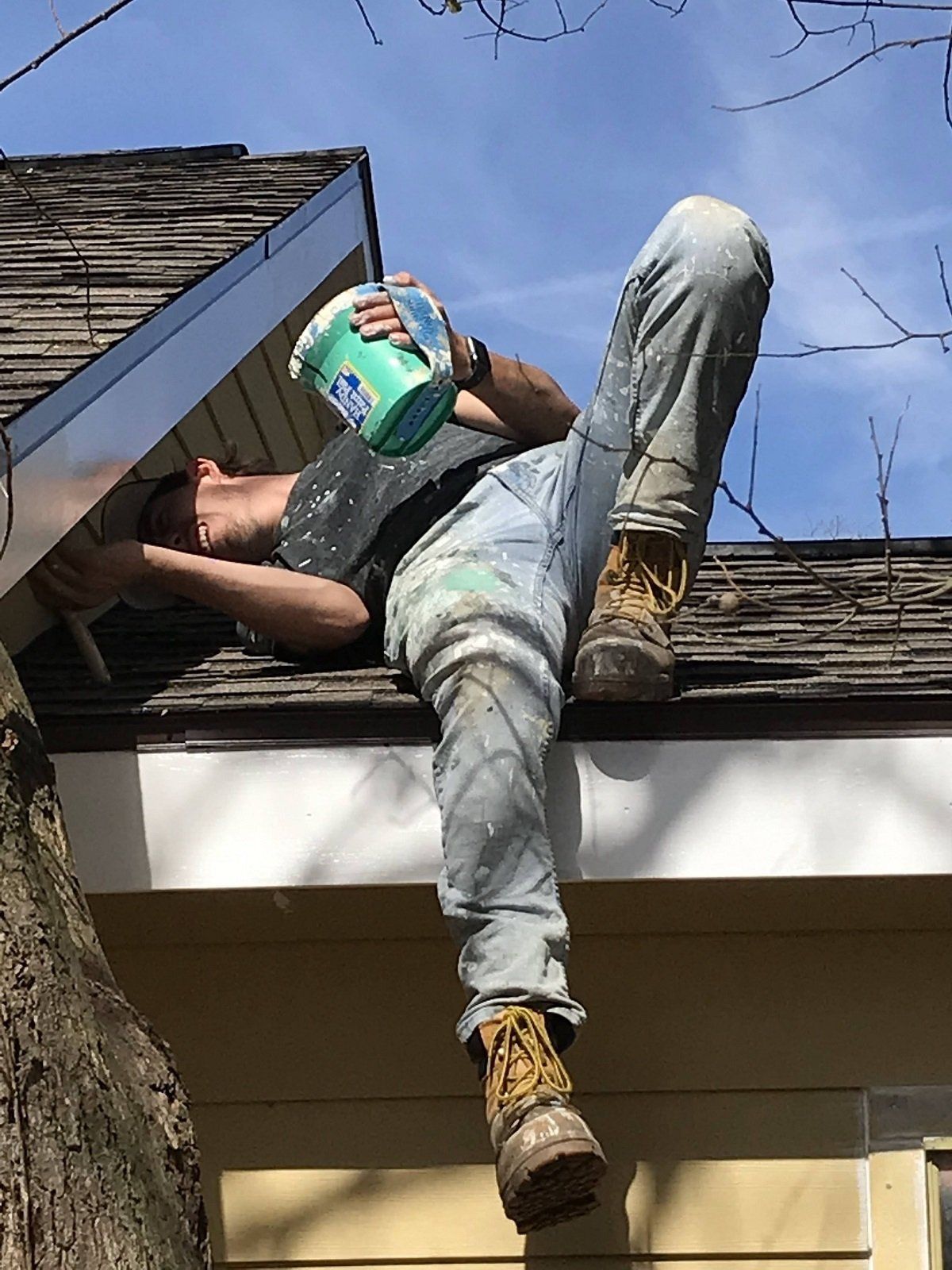 Painting the facia after putting on a new roof at Jennifer’s house