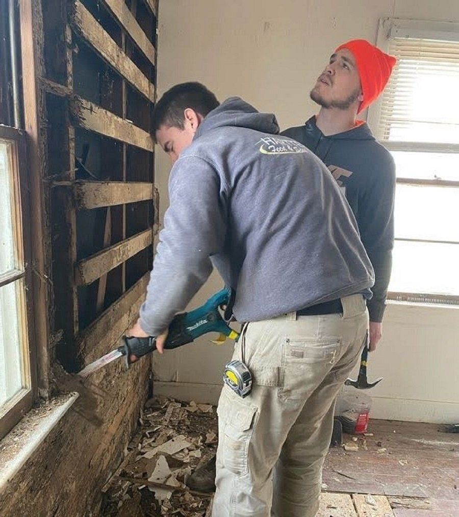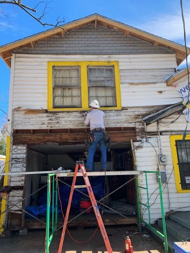 Tearing down a damaged structure to make way for a new one at Latitia’s house