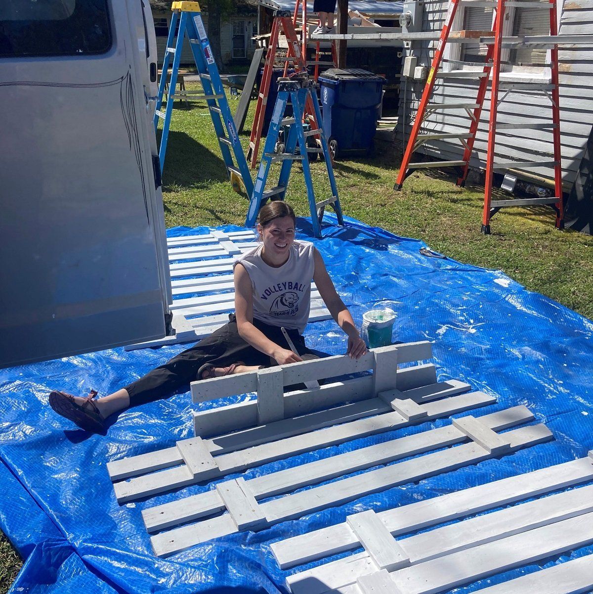 Final coat of paint on the exterior of Betty’s house