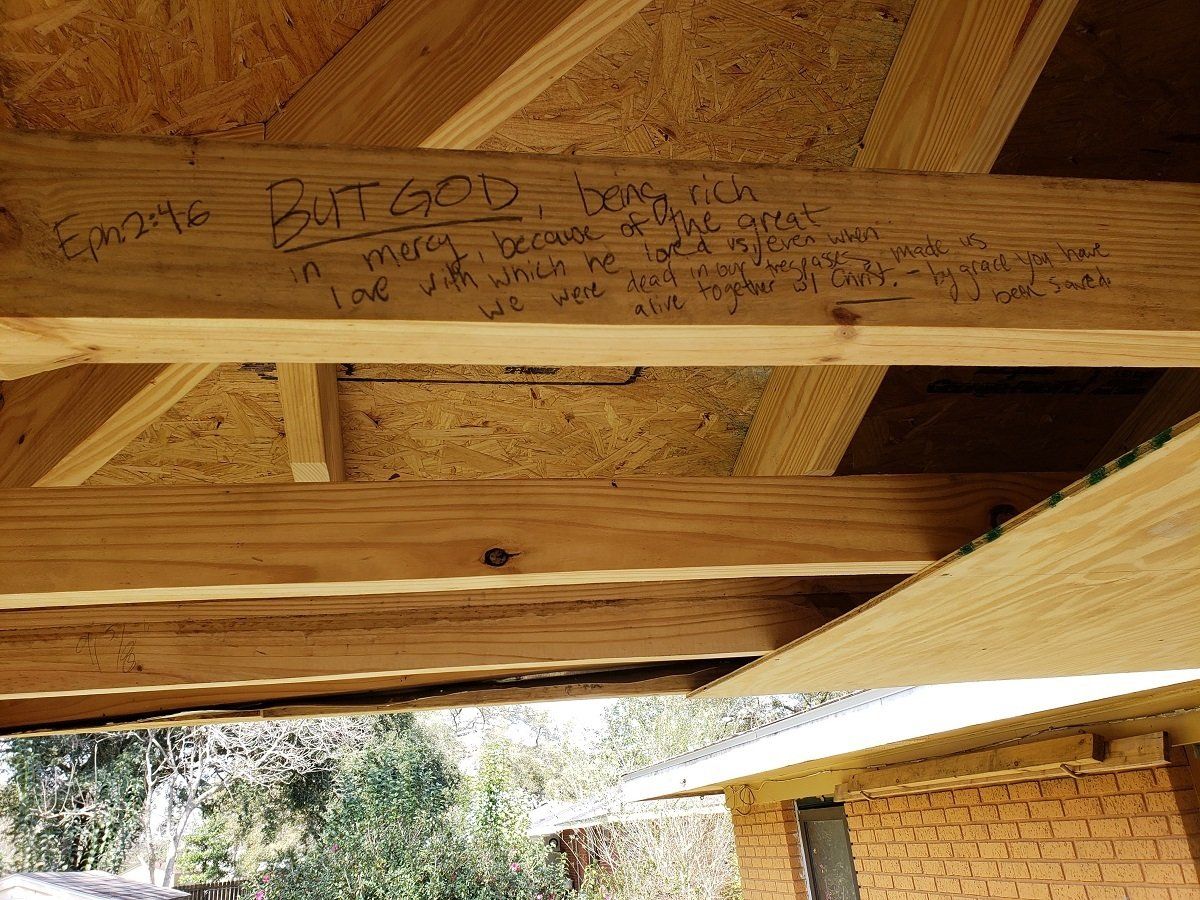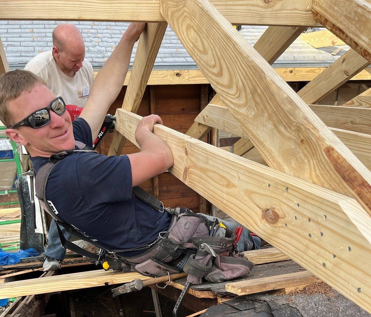 Major roof reconstruction at Scott and Keila’s house