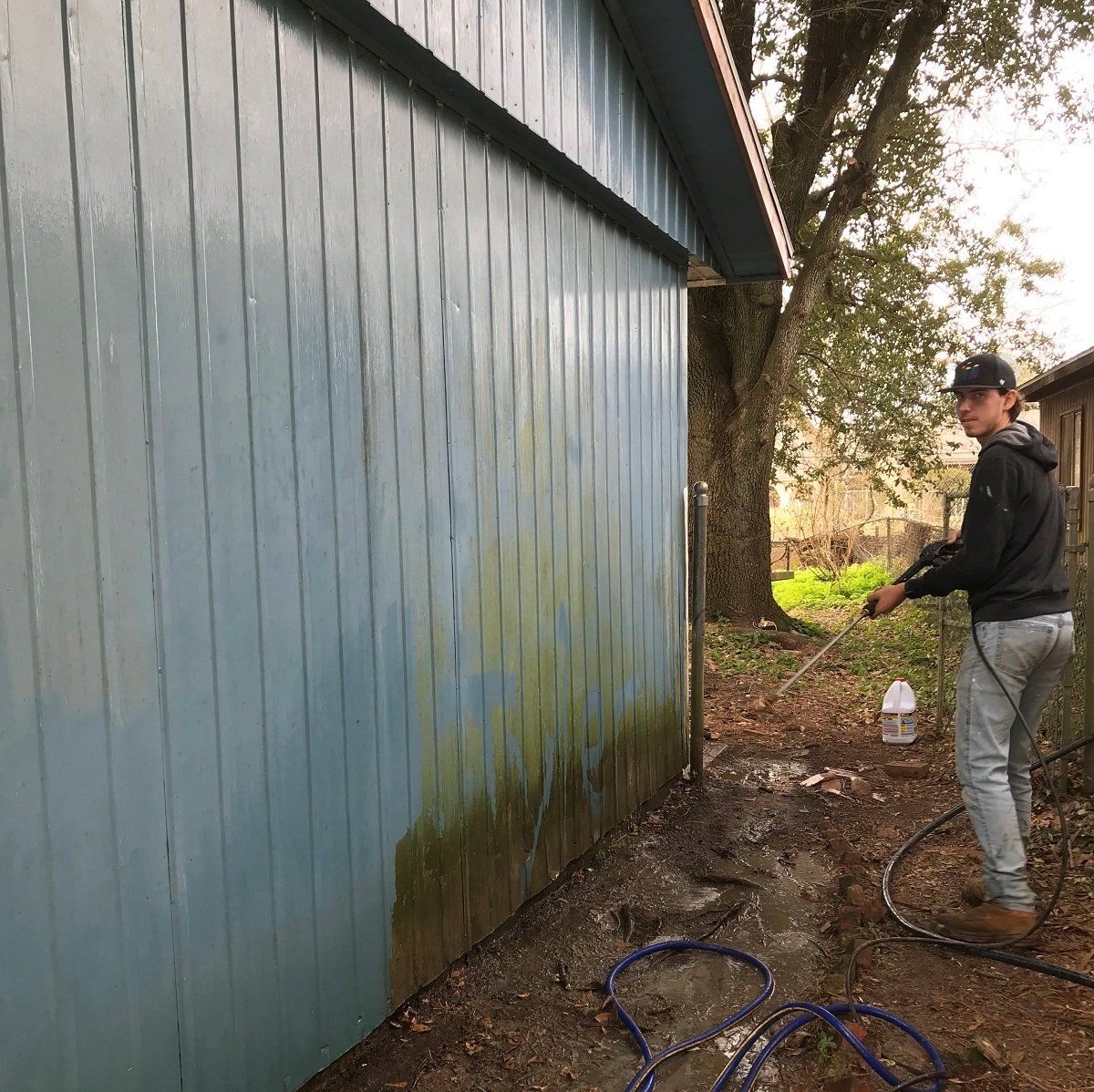Pressure washing Gwen’s house before painting the exterior