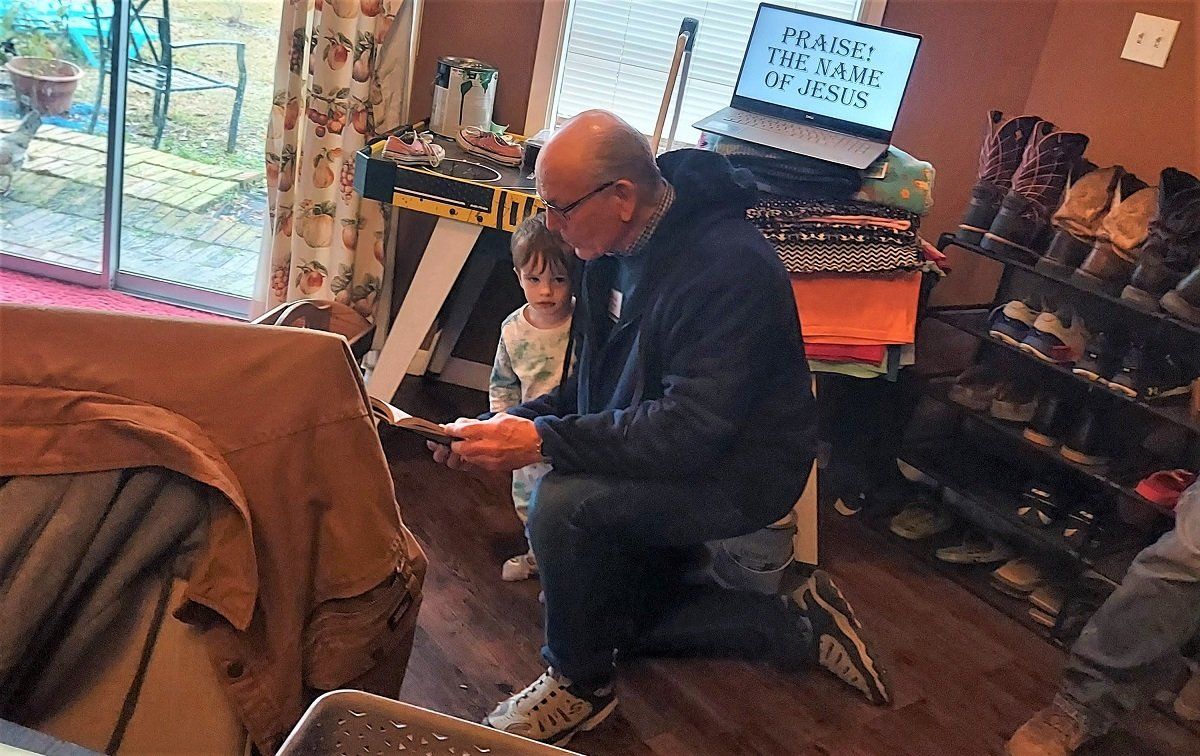 Reading a Bible story to Brexter at Brett and Markisha’s house